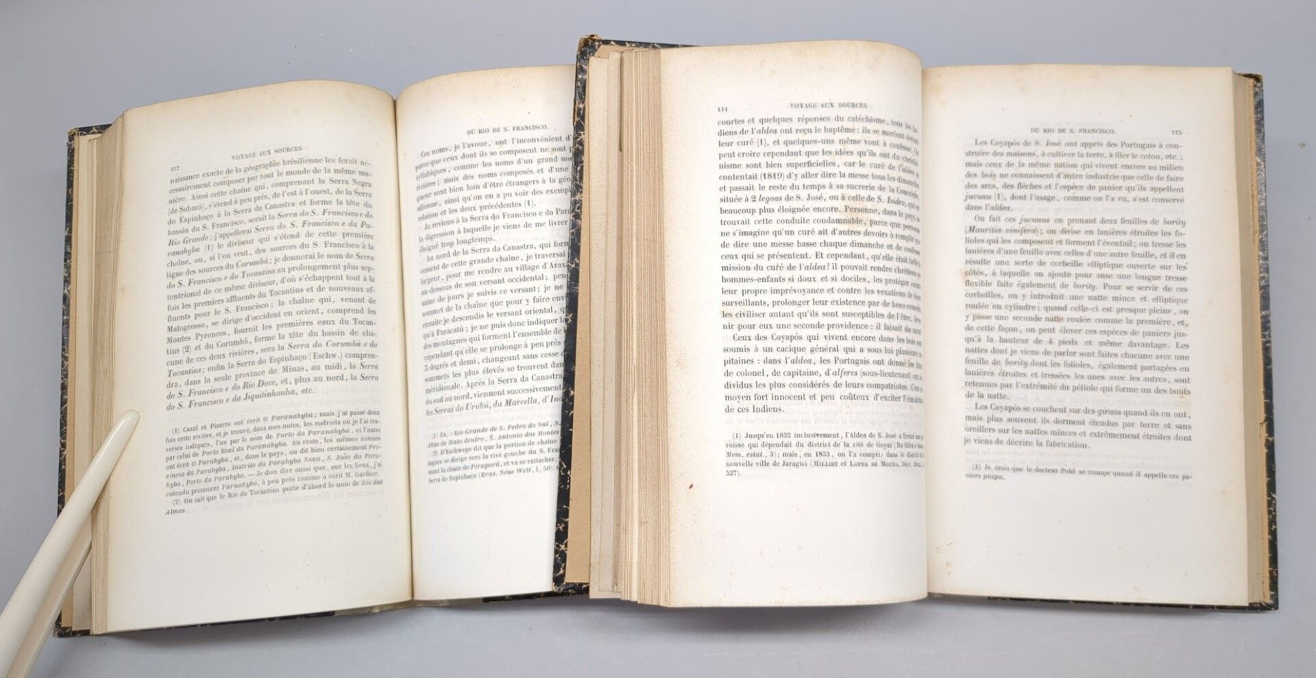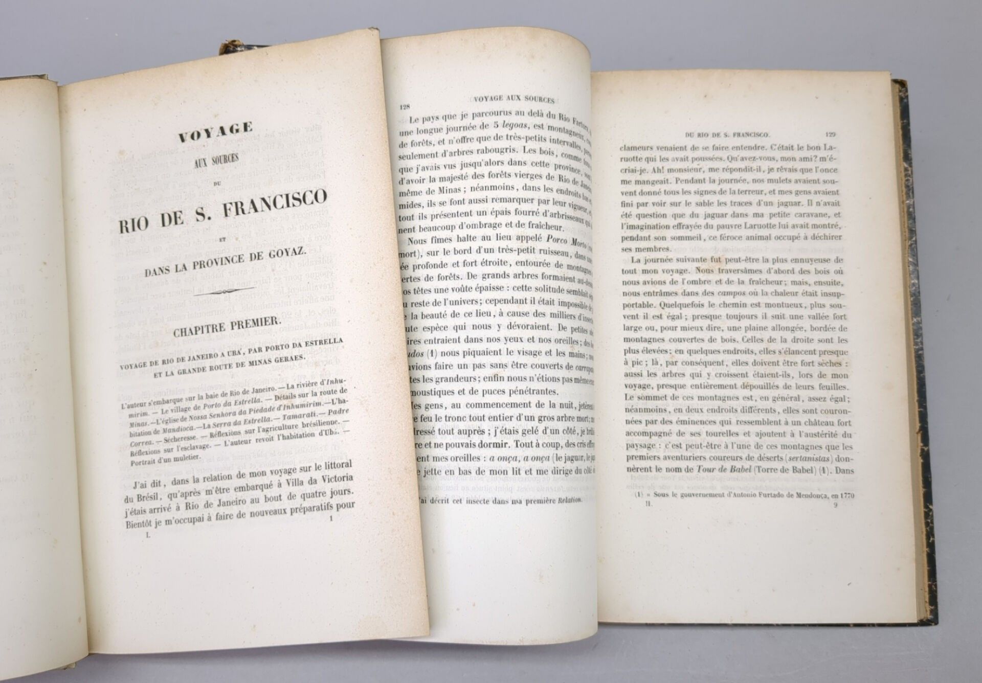 [Brazil] SAINT-HILAIRE (Auguste de). Voyage aux sources du Rio San Francisco et dans la province de Goyaz. Paris, Arthus Bertrand, 1847-1848. 2 volumes in-8, half vellum, leather title-piece. XV, 380 pp. and (2) ff, 349 pp, (1) f. Paper slightly browned, scattered foxing.