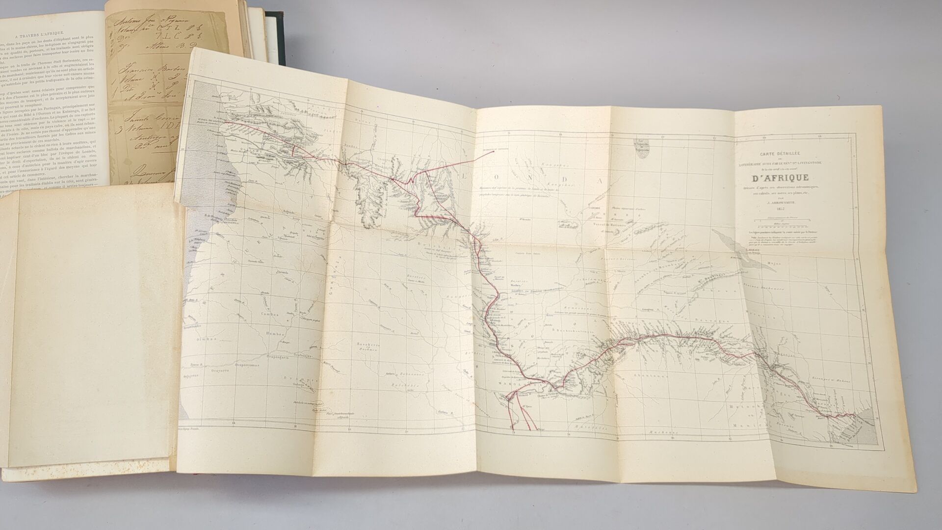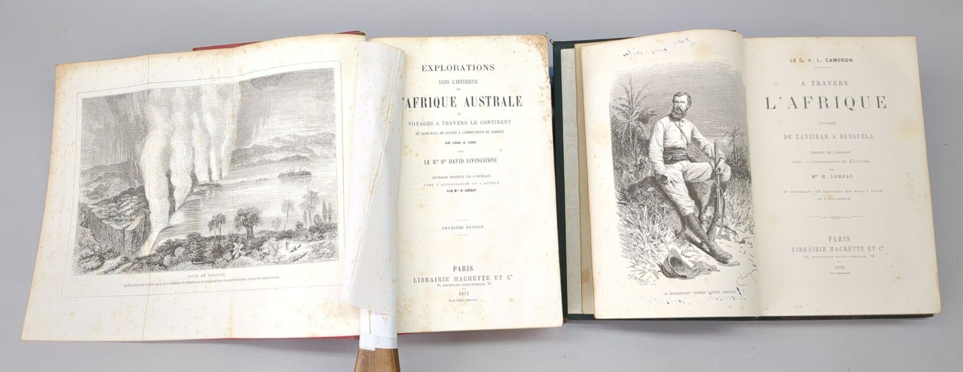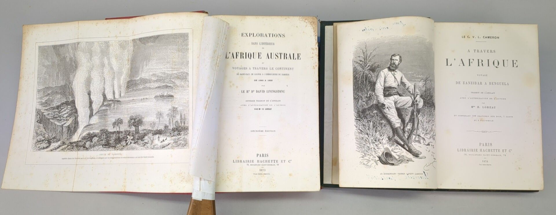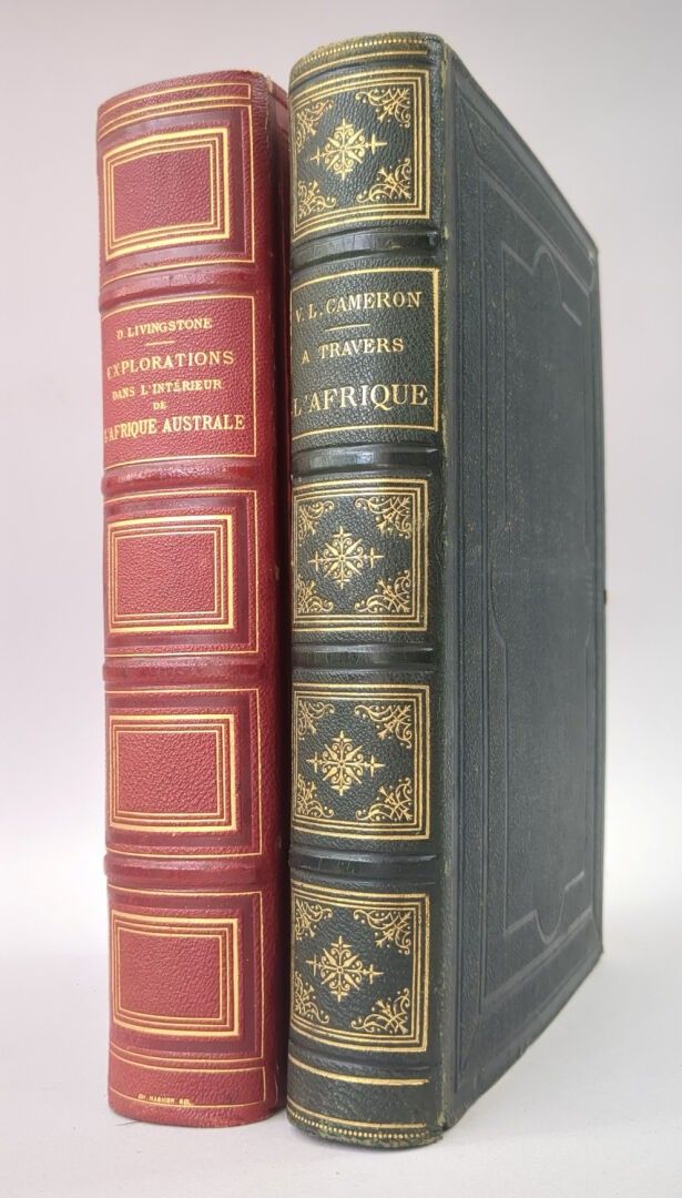 1/ LIVINGSTONE (David). Explorations dans l'intérieur de l'Afrique Australe et Voyages à travers le Continent de Saint-Paul de Loanda à l'Embouchure du Zambèse de 1840 à 1856. Paris, Hachette, 1873, (3) ff, 687 pp. Angular nibbling of title and first f., scattered foxing. a few pages slightly detached.