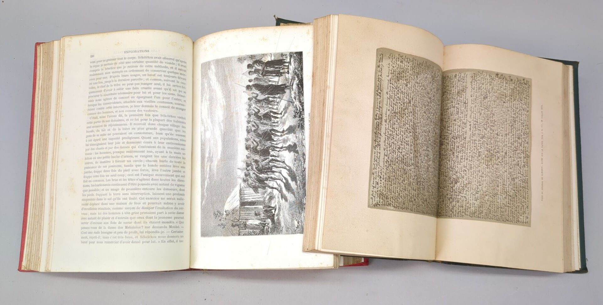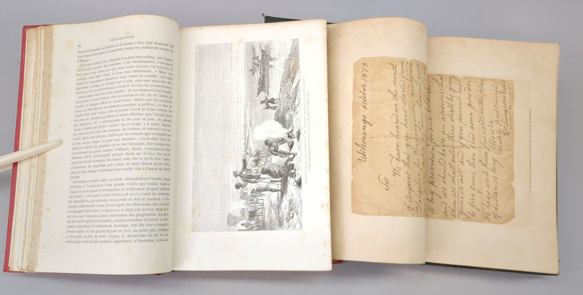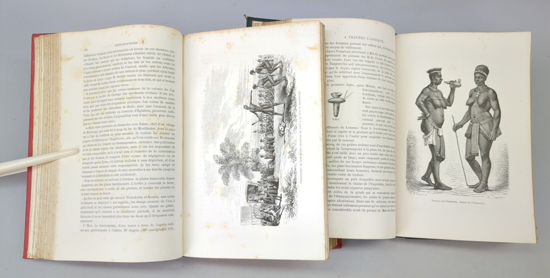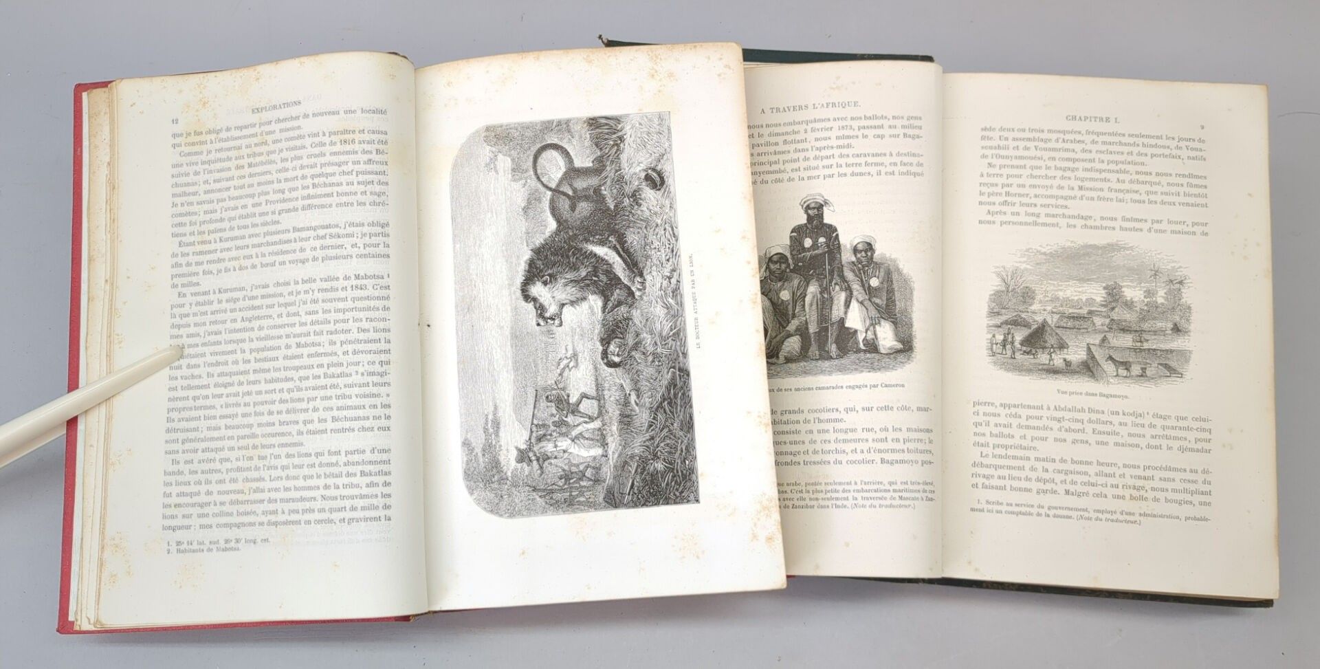 1/ LIVINGSTONE (David). Explorations dans l'intérieur de l'Afrique Australe et Voyages à travers le Continent de Saint-Paul de Loanda à l'Embouchure du Zambèse de 1840 à 1856. Paris, Hachette, 1873, (3) ff, 687 pp. Angular nibbling of title and first f., scattered foxing. a few pages slightly detached.