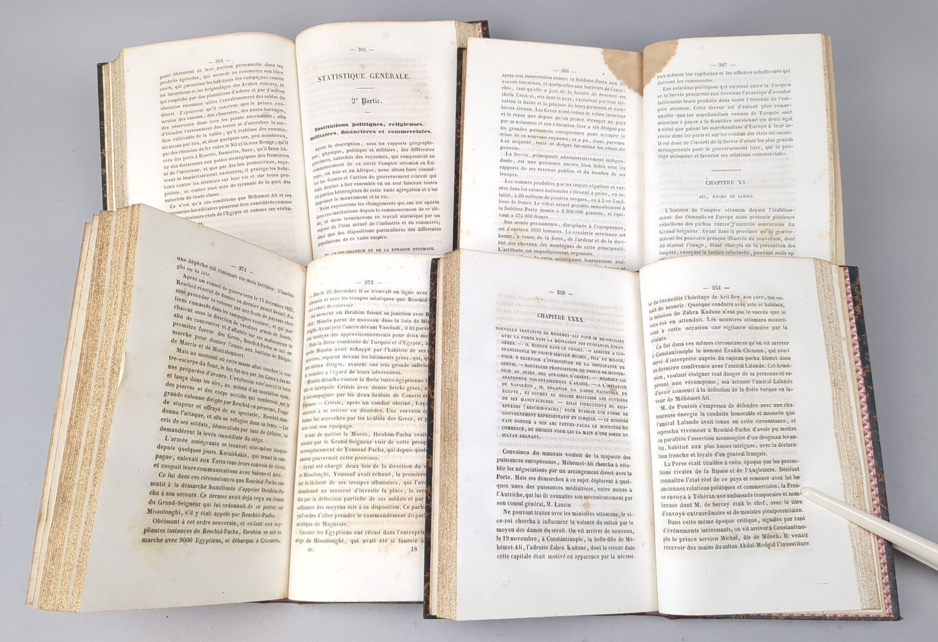 [Turkey] JUCHEREAU DE SAINT-DENYS (Baron Antoine de). Histoire de l'Empire ottoman, depuis 1792 jusqu'en 1844. Paris, Guiraudet & Jouaust, au Comptoir des imprimeurs-unis, 1844. 4 volumes in-8, contemporary half-basane. XXIII, 439 pp; (2) ff, 404 pp; (2) ff, 415 pp; (2) ff, 344 pp. Freckles, brown stain in the upper margin of the last 100 pages of volume II.