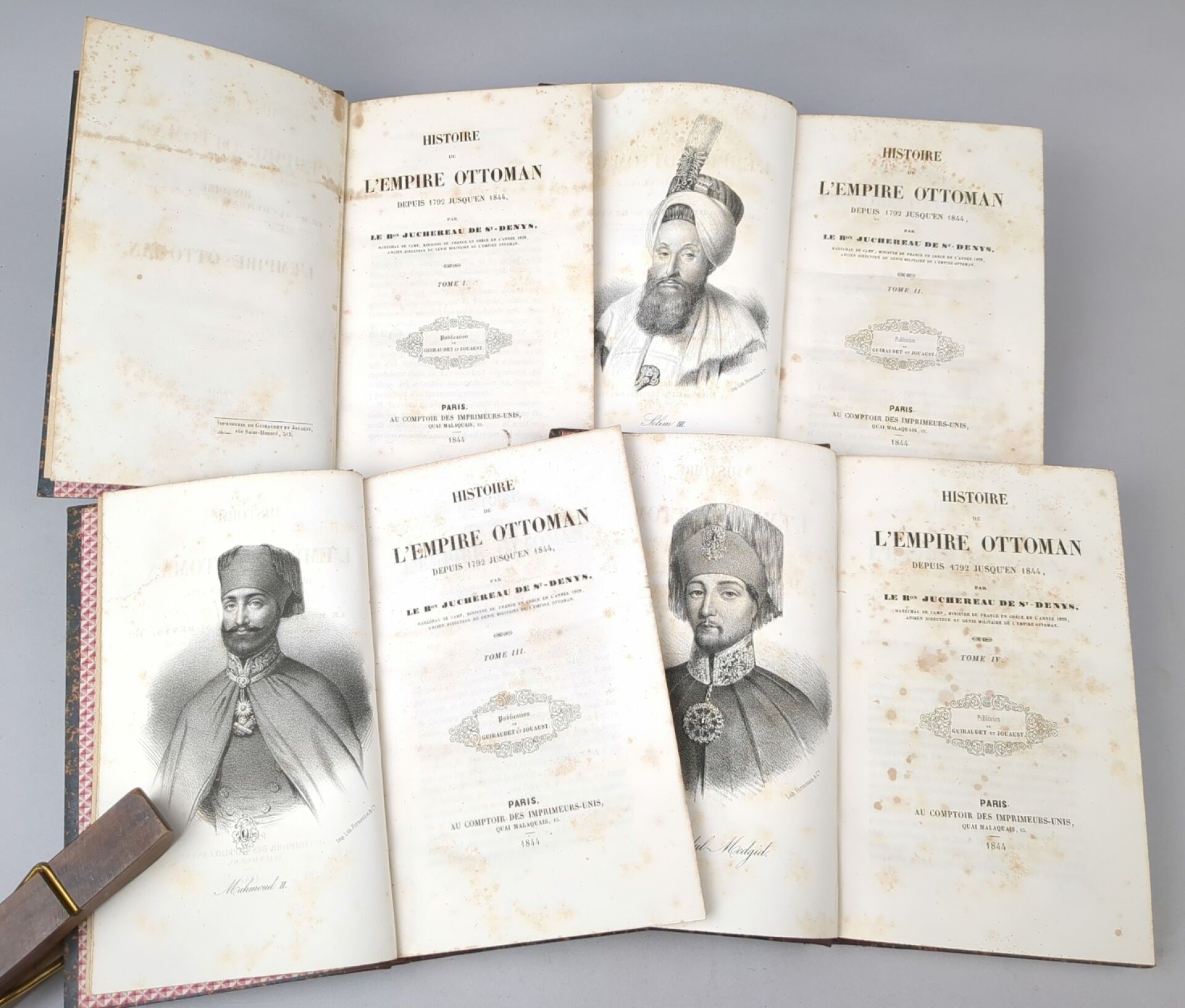 First edition with 3 lithographed frontispieces by Fromentin (portraits of Sultans Selim III, Mahmud II and Abdul-Medjid). Juchereau de Saint-Denis (1776-1850) was a former director of military engineering under Selim III.