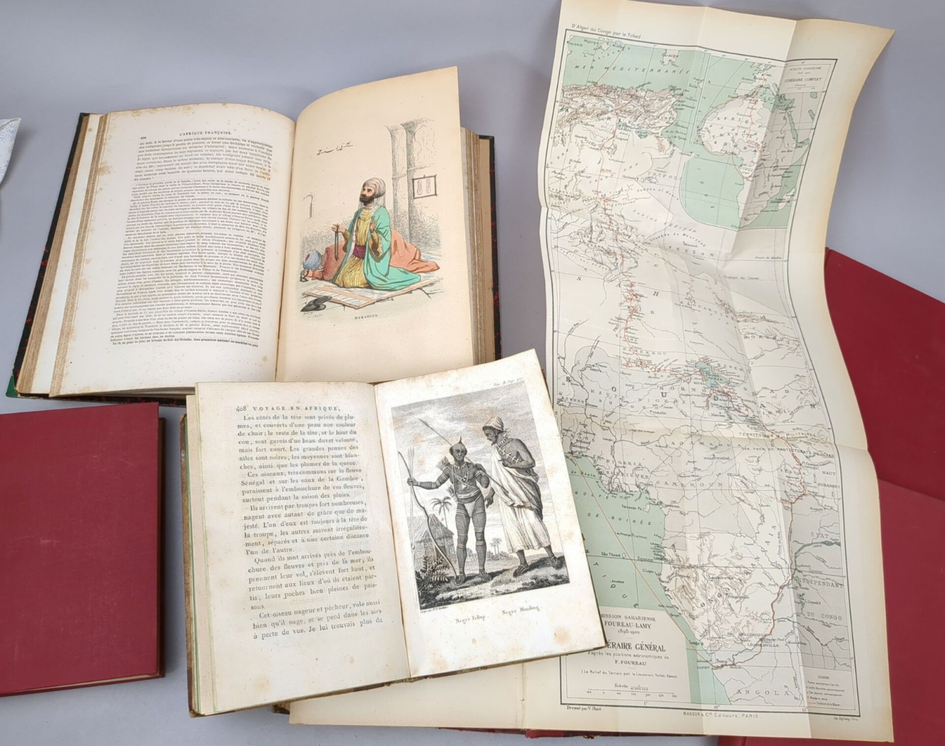 5/ FOUREAU (Fernand). D'Alger au Congo par le Tchad. Paris, Masson et Cie, 1902. One volume in-8, contemporary half-basane. 829 pp, (1) f. Accds.