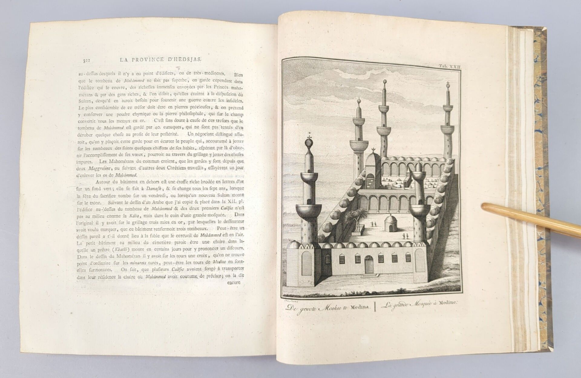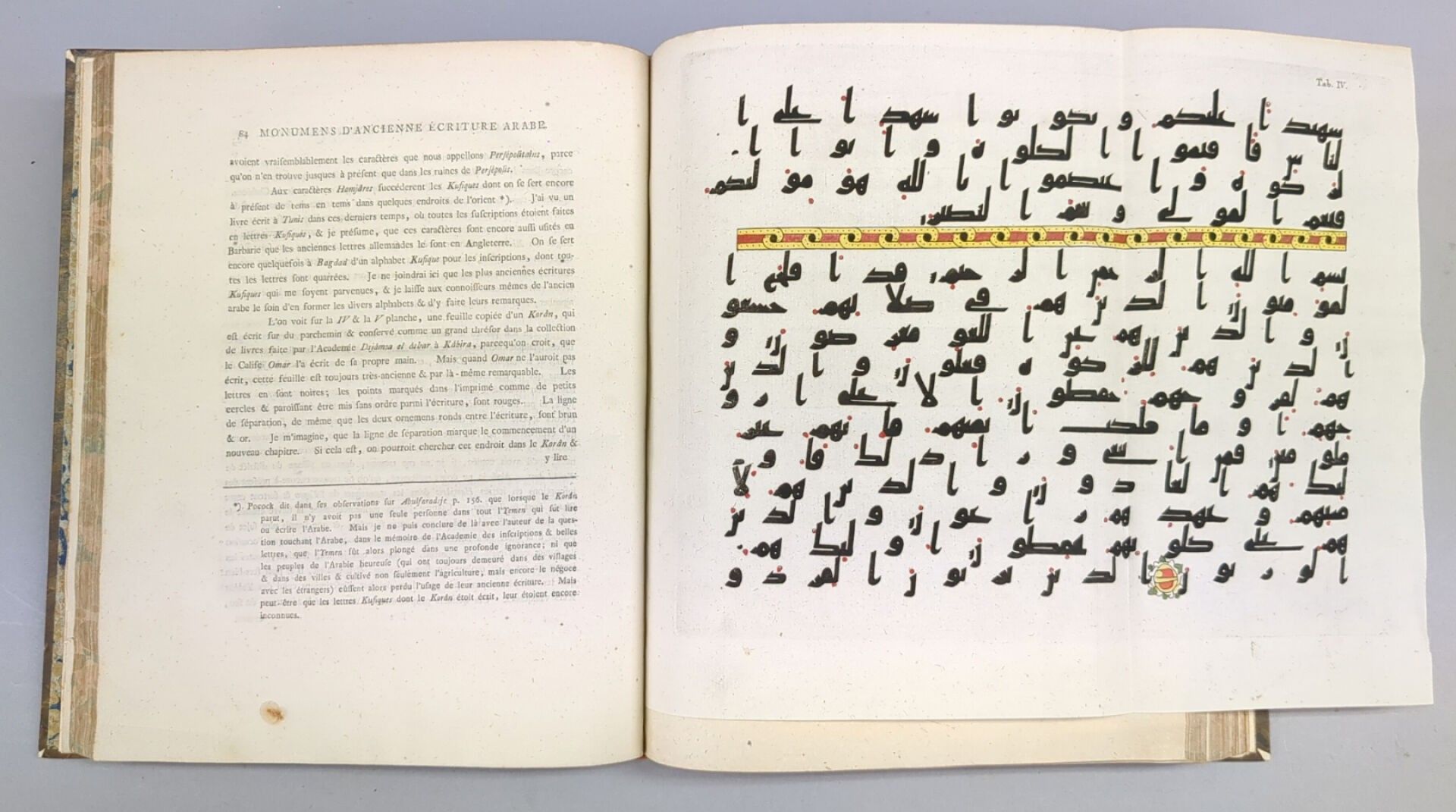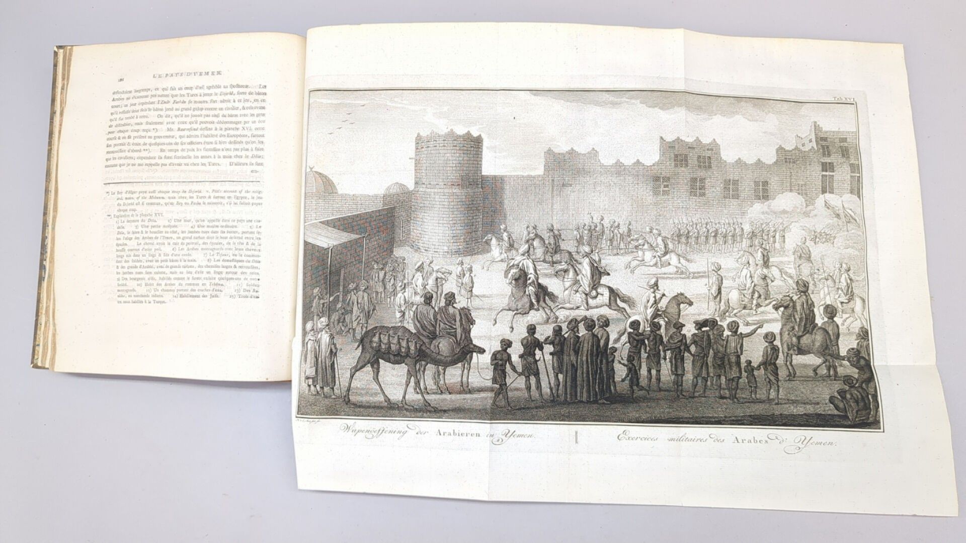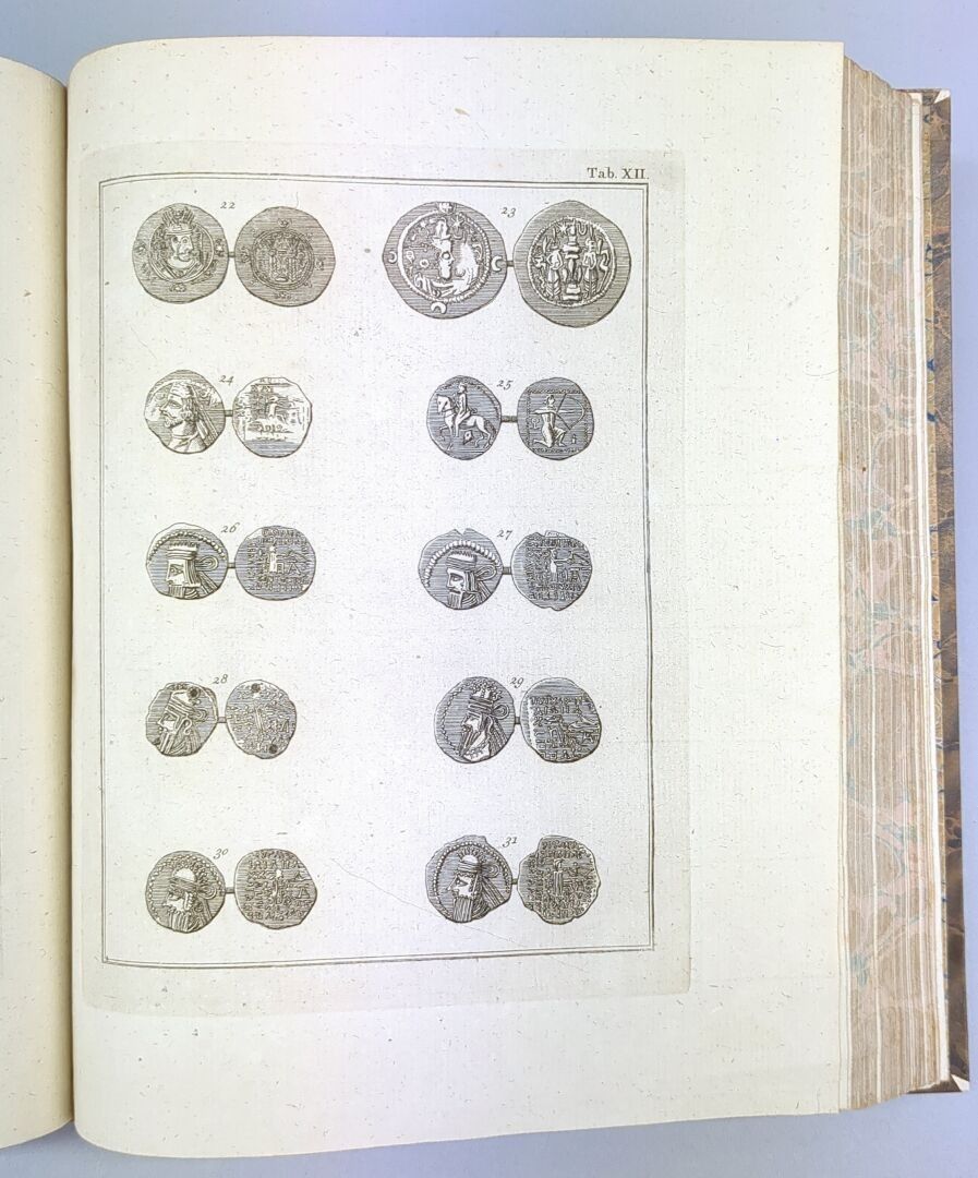 Second edition of the French translation, given by Ferdinand-Louis Mourier, illustrated with a title vignette, and 24 plates (out of 25) representing costumes, inscriptions, extracts from the Koran (fold-outs), coins, tools, maps (fold-outs), mosques, views and costumes and 1 genealogical table.