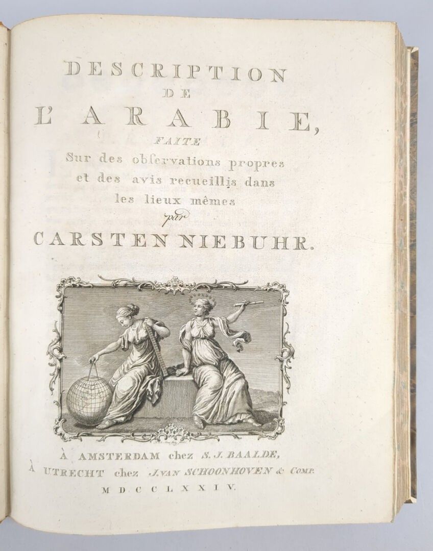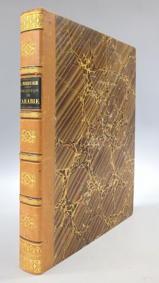 NIEBUHR (Carsten), Description de l'Arabie faite sur des observations propres et des avis recueillis dans les lieux mêmes, Amsterdam, S.J. Baalde, & Utrecht, J. van Schoonhoven, 1774. One volume in-4, fawn half calf from the first half of the 19th century, spine ribbed and decorated. XLII, 372 pp, (7) ff (table and errata). Boards slightly rubbed else a fine copy.