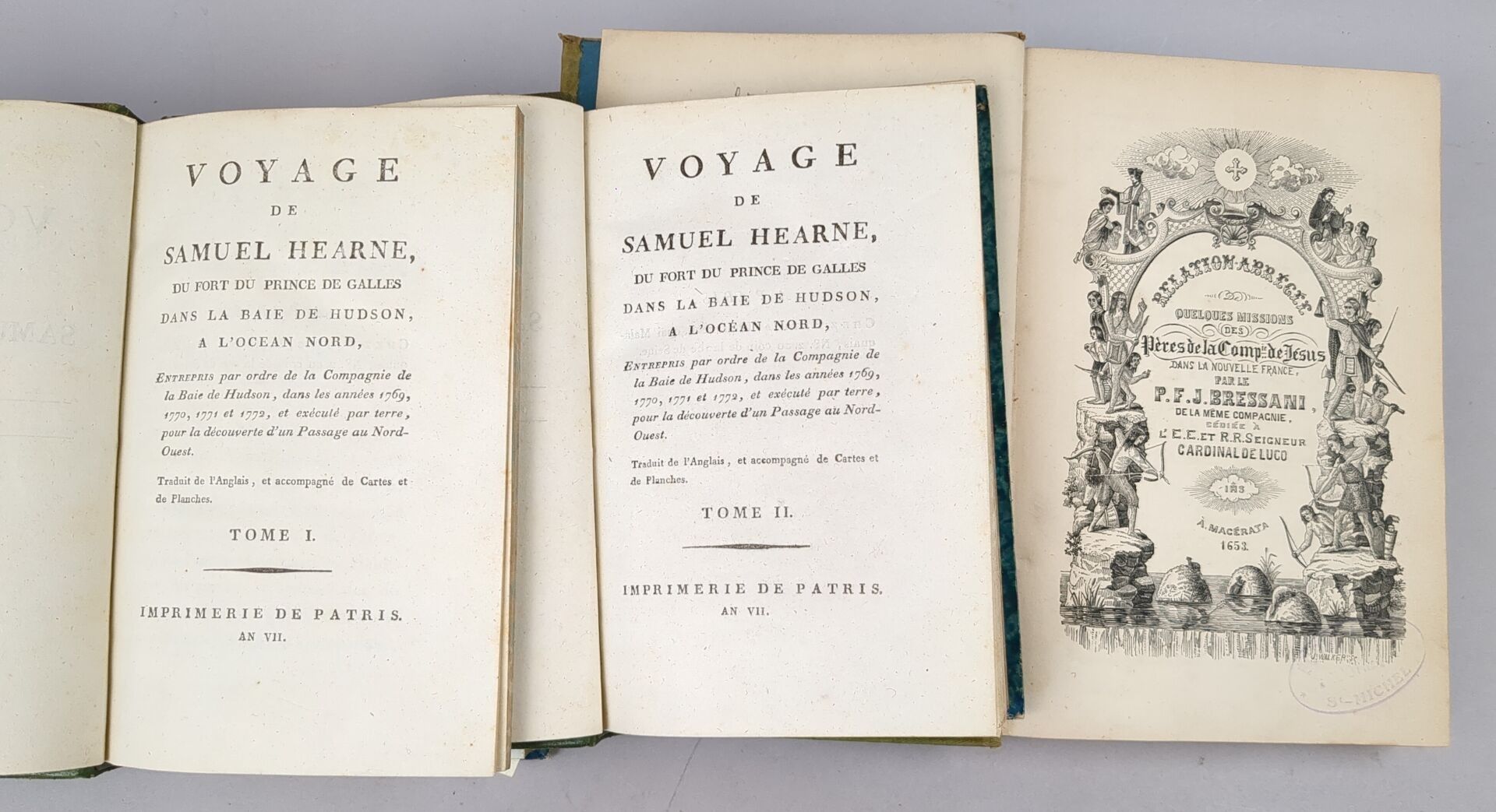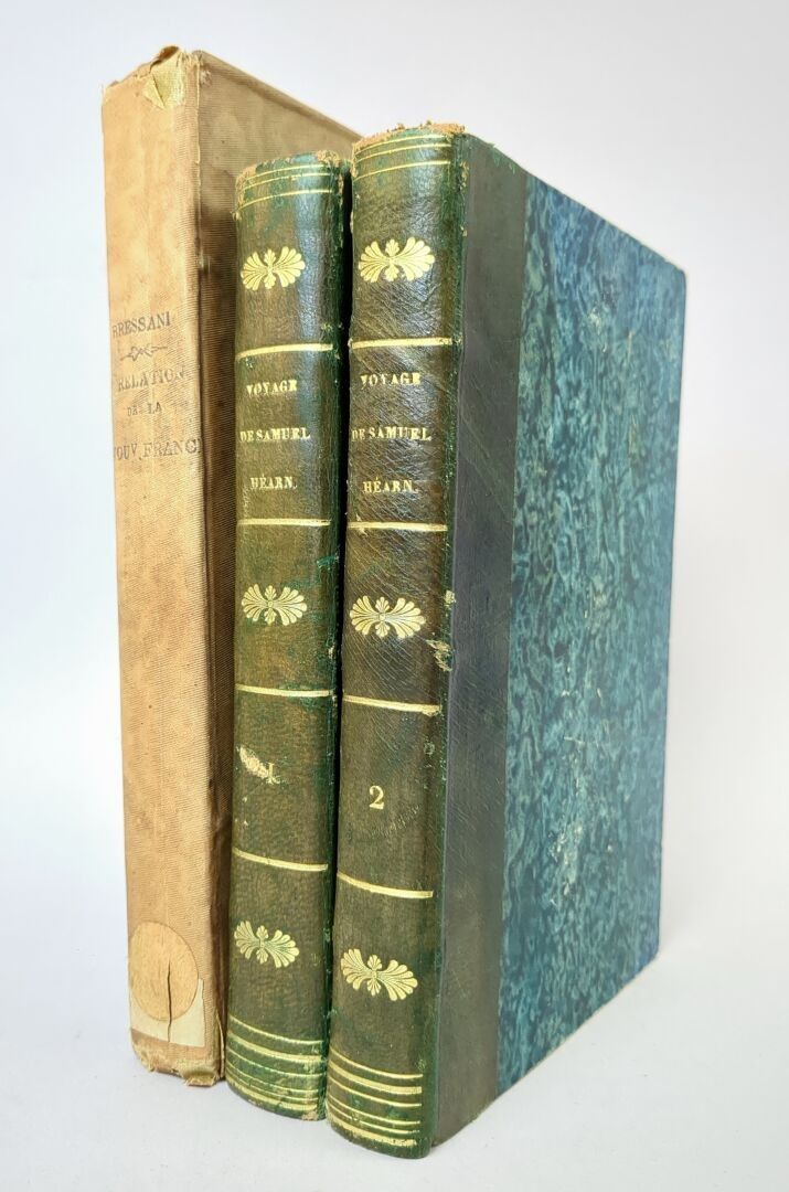 [America] HEARNE (Samuel). Voyage du fort du prince de Galles dans la Baie de Hudson à l'Océan Nord, entrepris par ordre de la Compagnie de la Baie de Hudson dans les années 1769-1772 et exécuté par terre, pour la découverte d'un passage au Nord-Ouest. Paris, Patris, an VII [1799]. 2 volumes in-8, half green basane, smooth spine decorated. (2) ff., LVIII, 373 pp.; (2) ff. 332 pp. XXIX, (1) f.