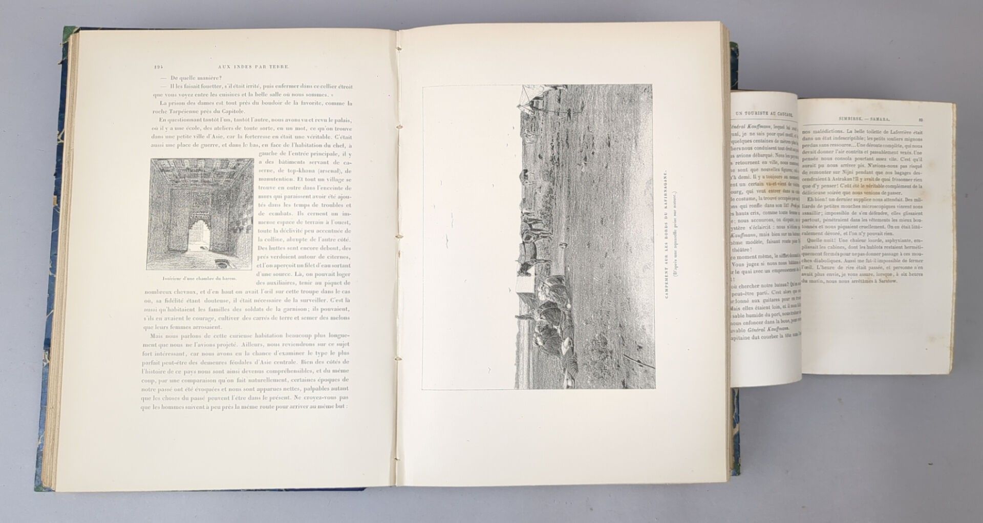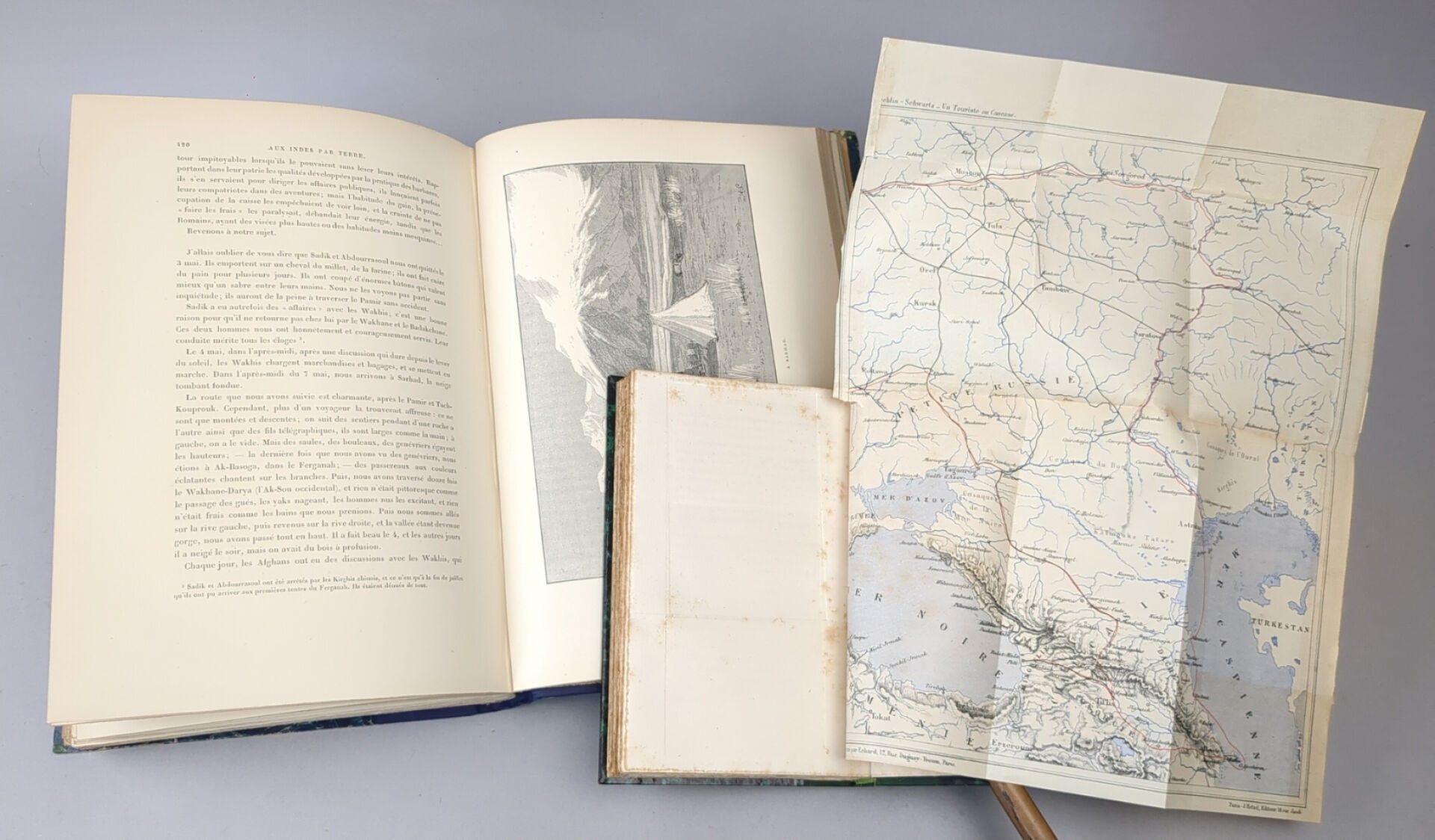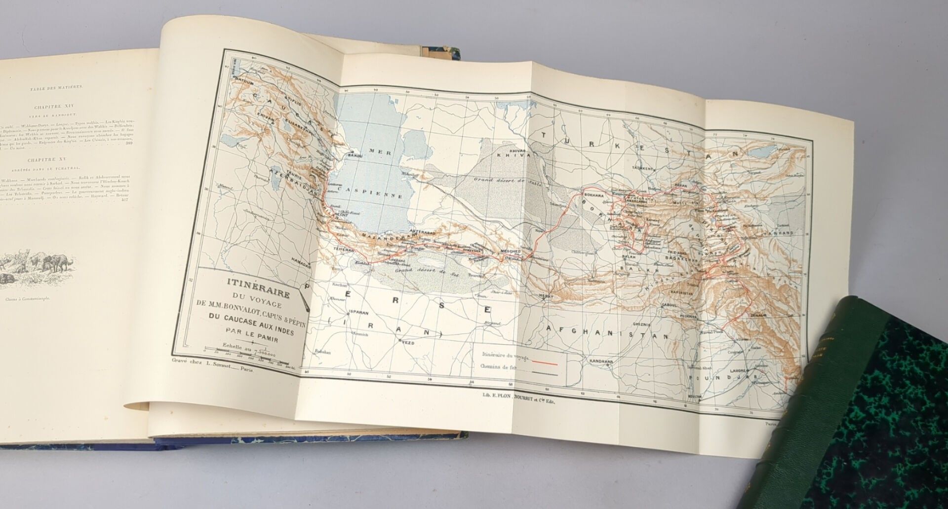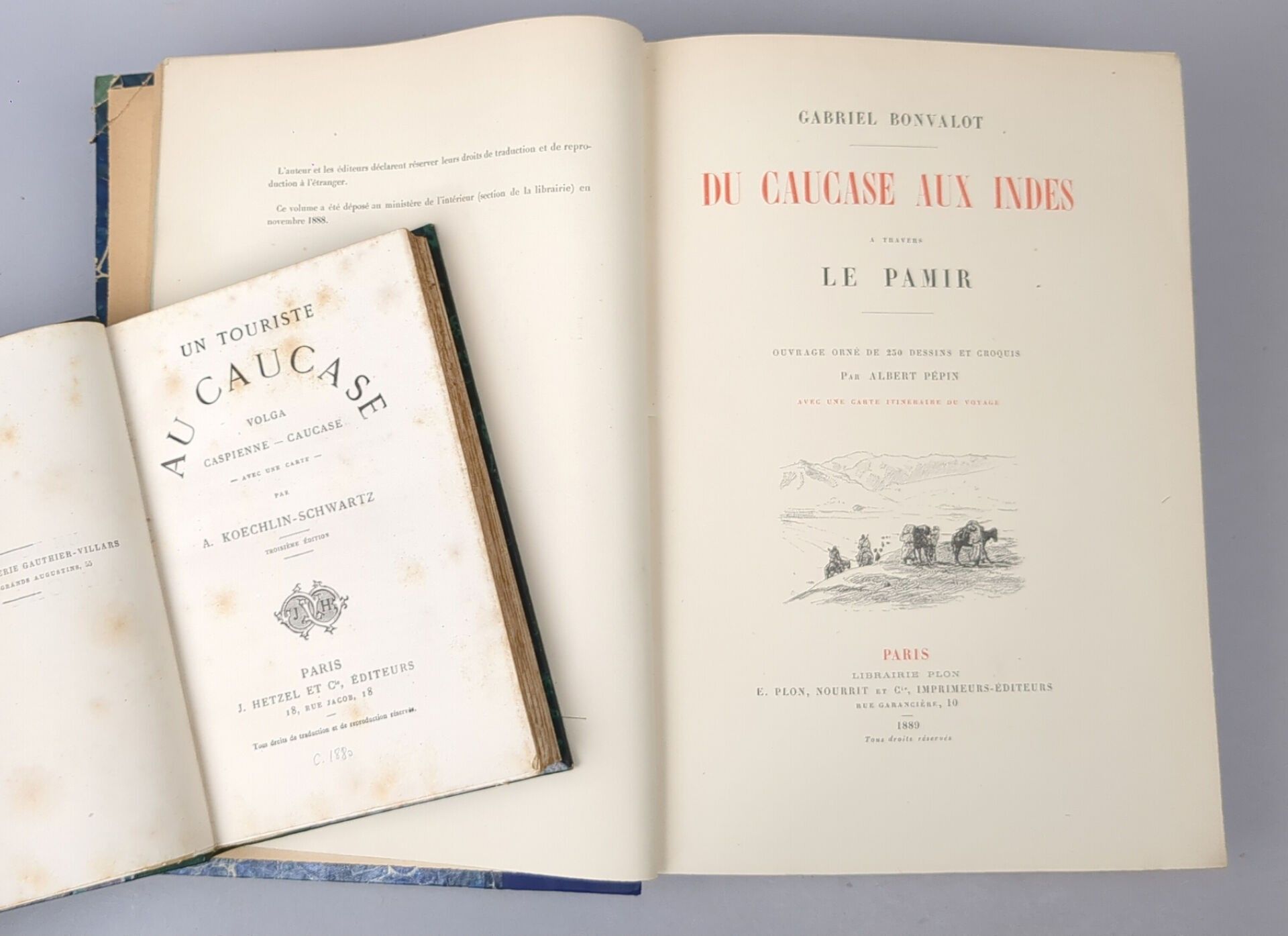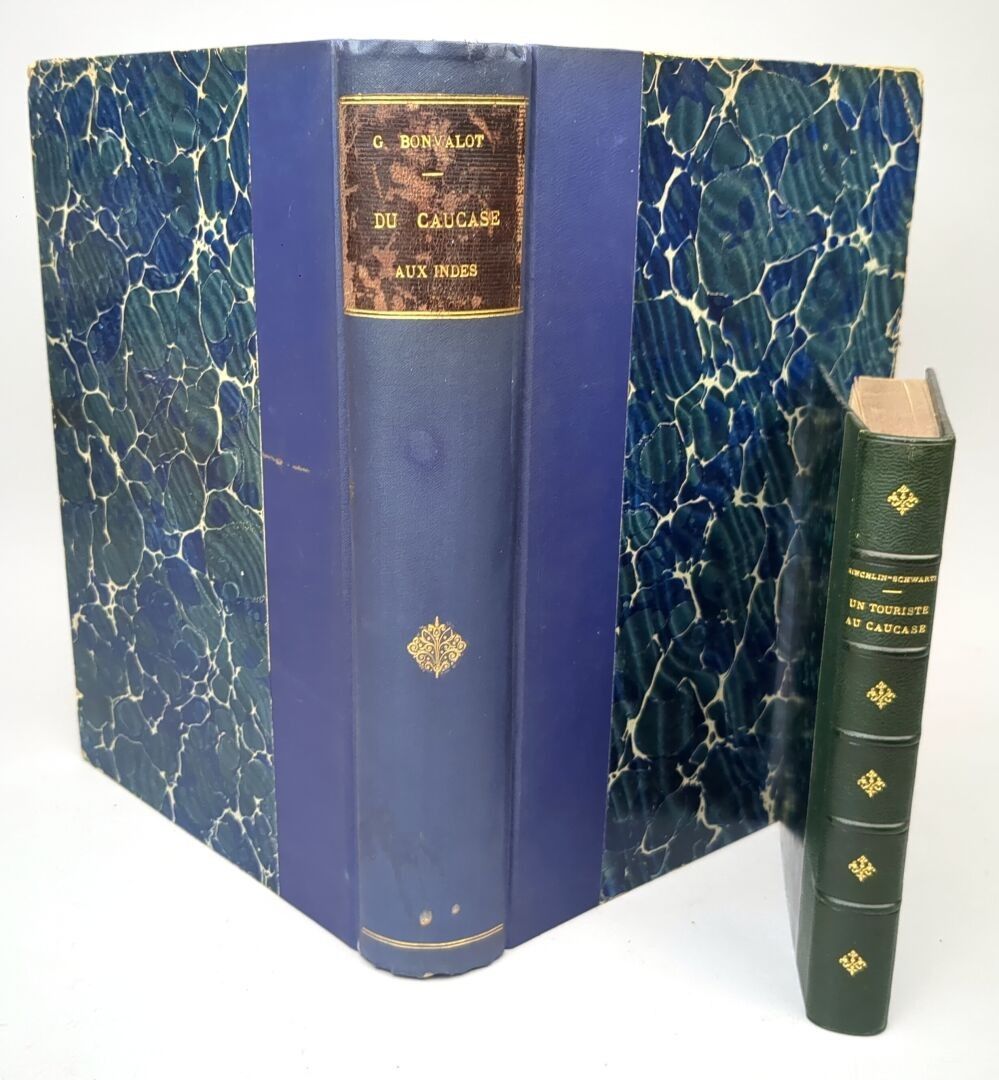 1/ BONVALOT (Gabriel). Du Caucase aux Indes à travers le Pamir - Paris, Librairie Plon, E. Plon, Nourrit et cie, 1889. One large volume in-8, blue half cloth, leather title-piece, covers cons. XII, 458 pp.