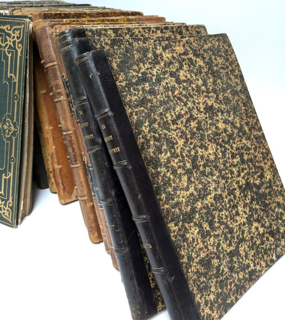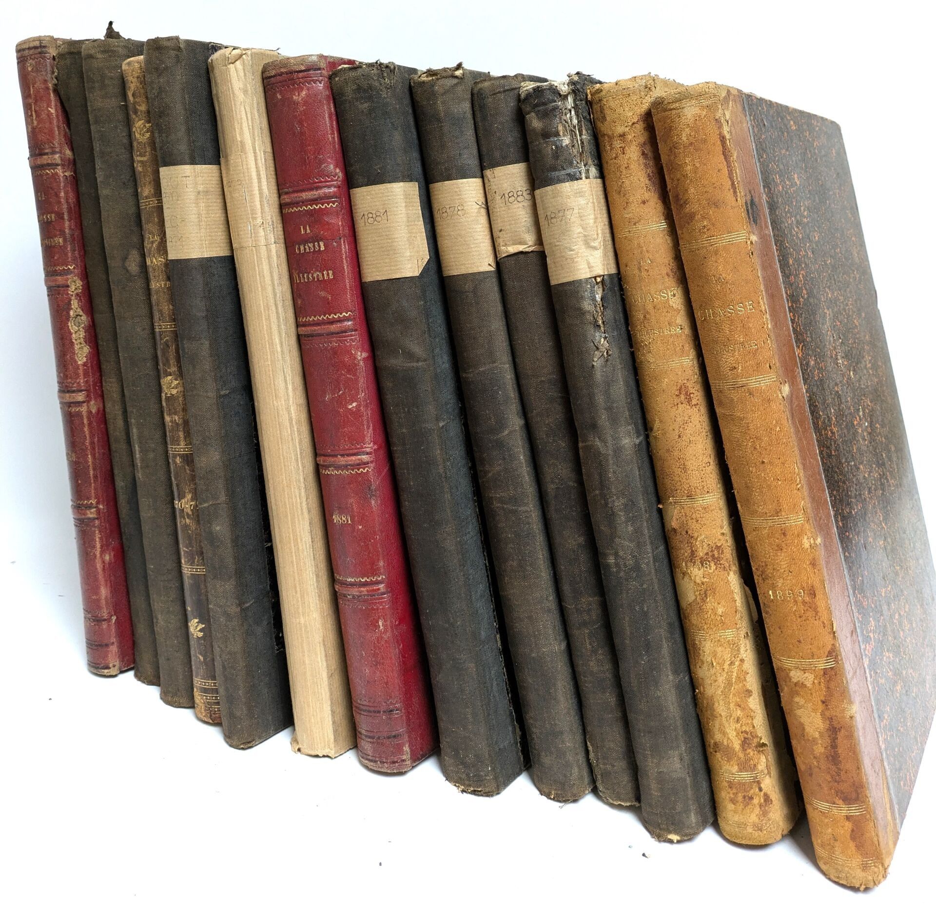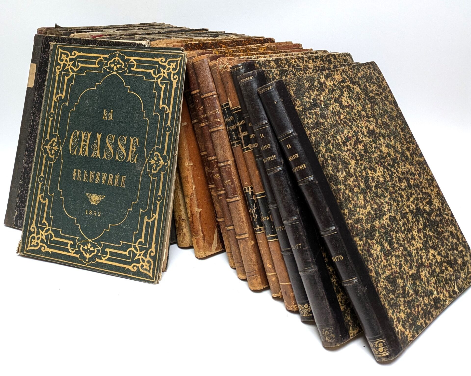 23 volumes of the magazine "La chasse illustrée" in folio, various bindings; half bindings and antique cloth.