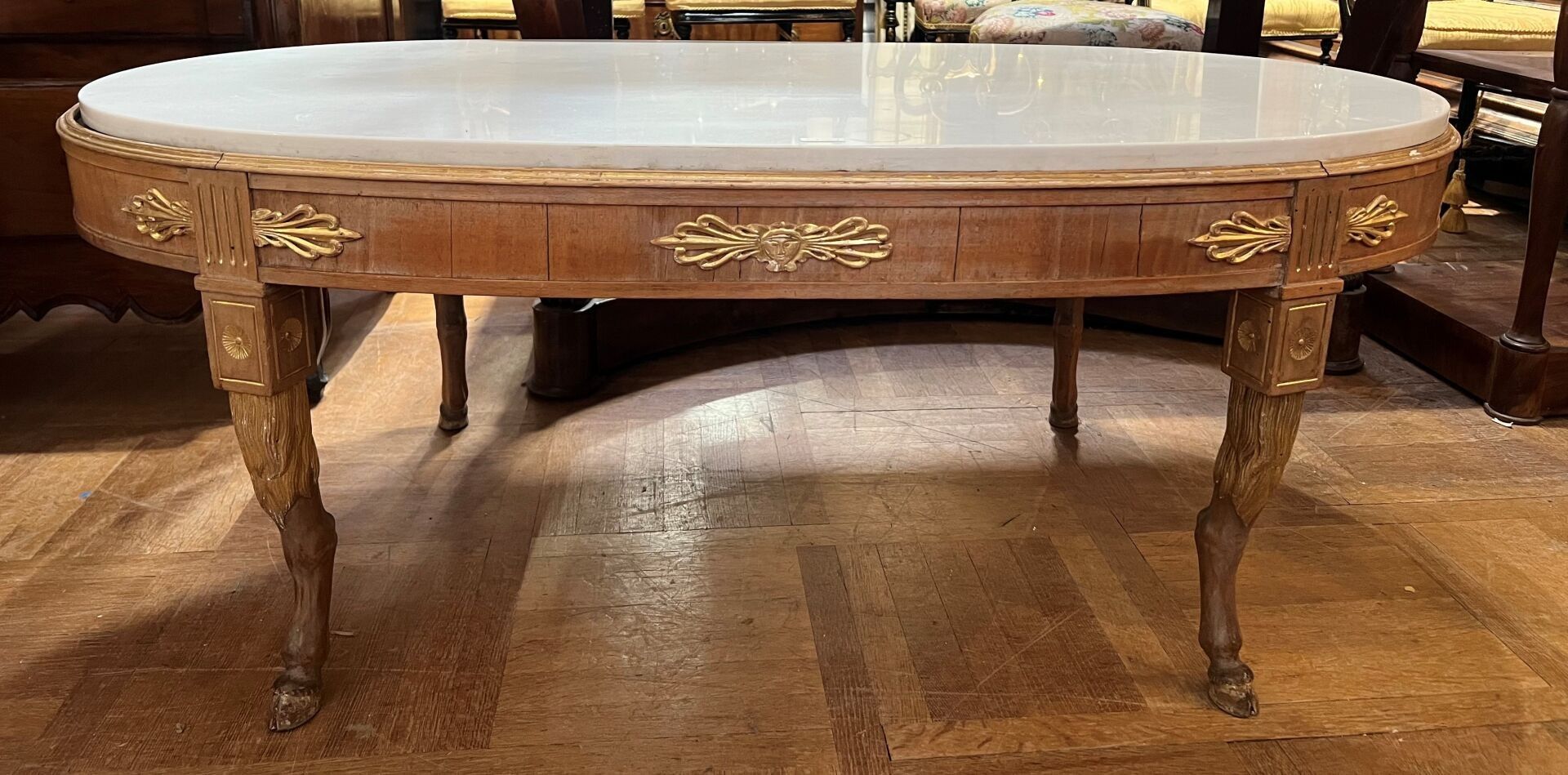 Oval giltwood coffee table with marble top - Italy, 19th cen…