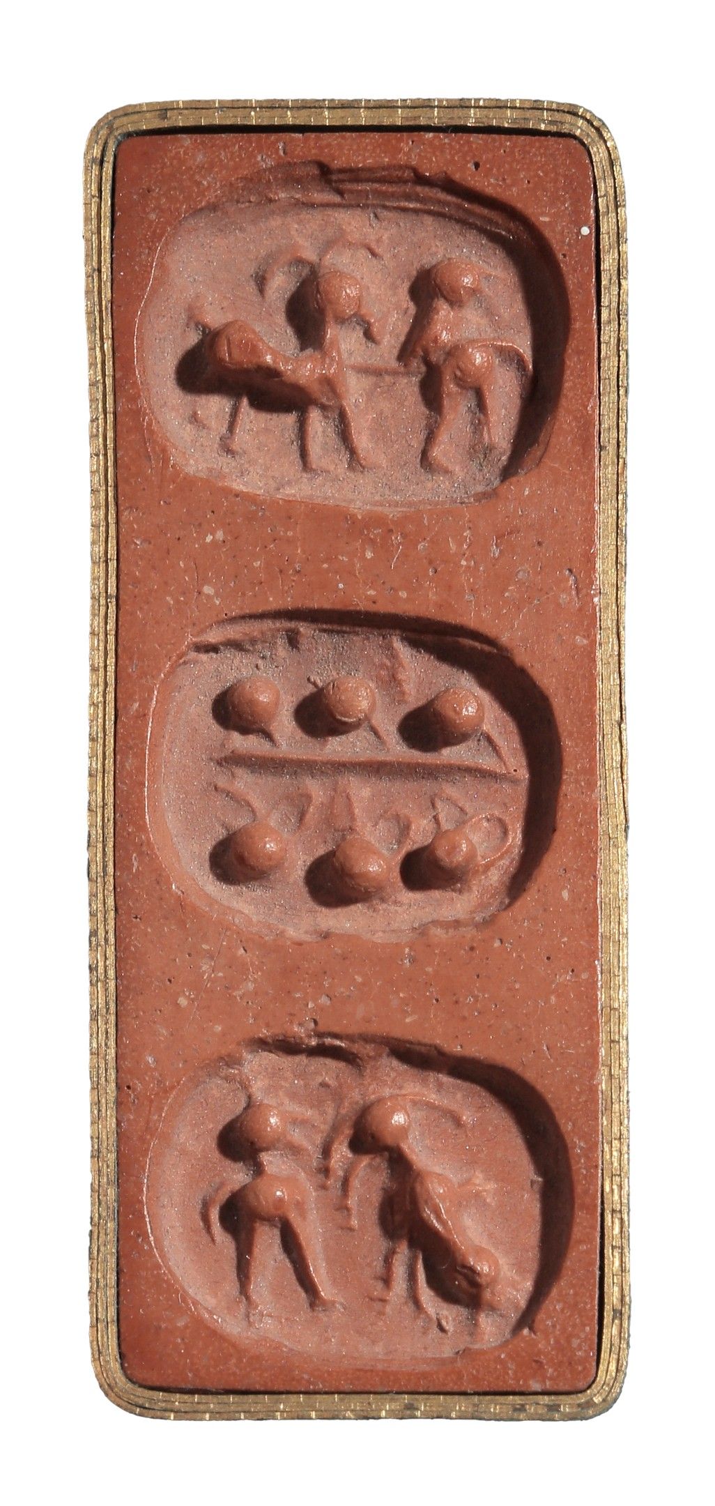 Presented on its wood and crimson velvet mounting dating from the early 20th century with its prints.