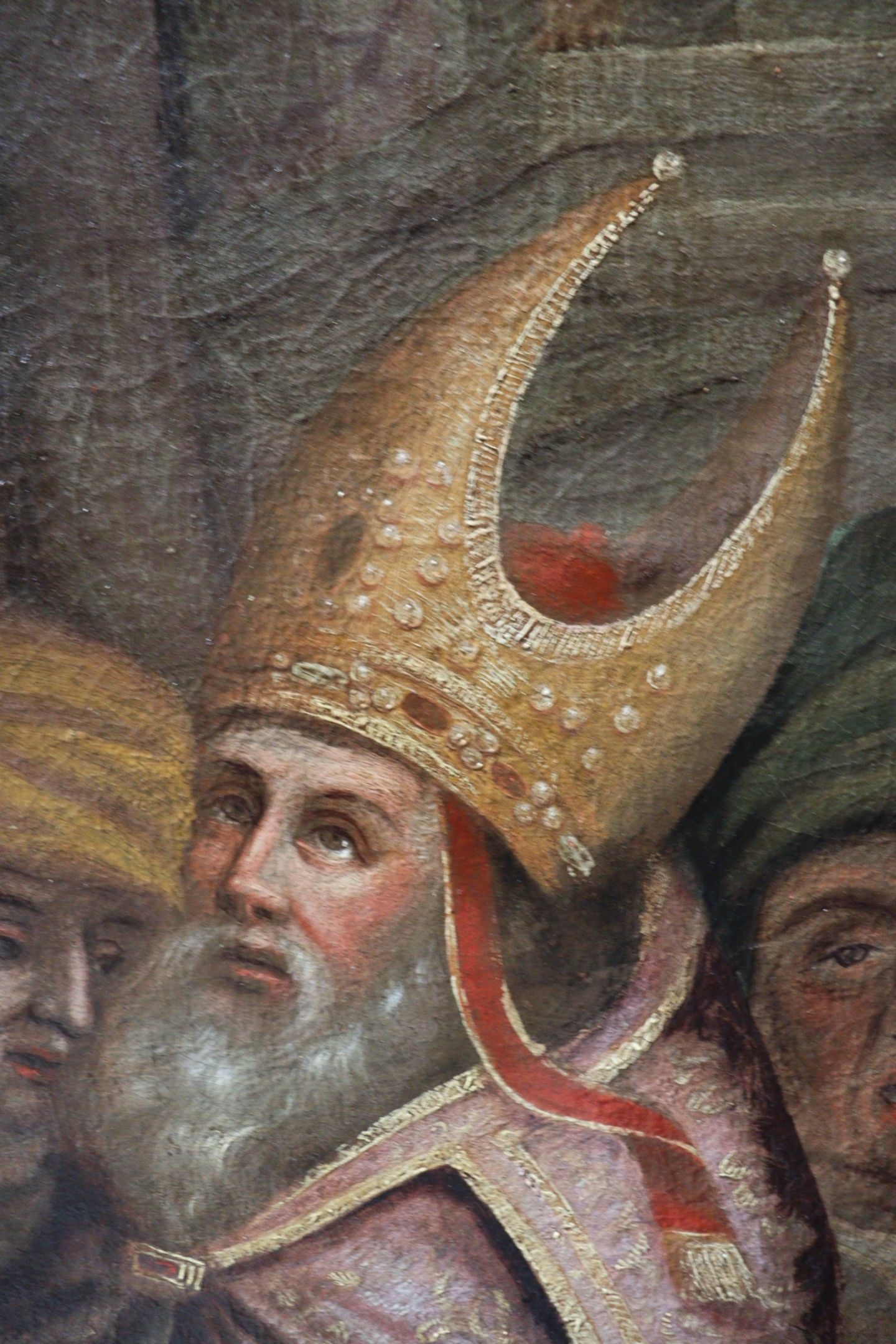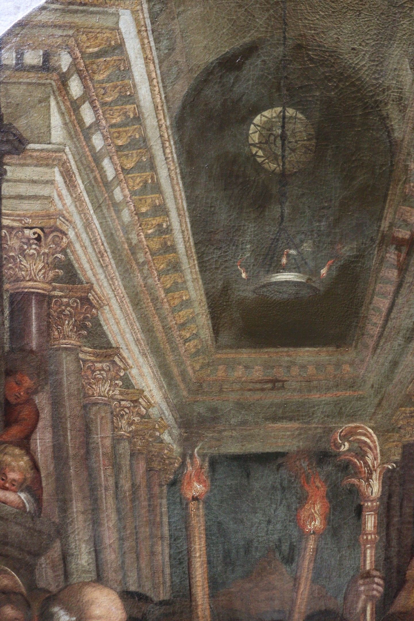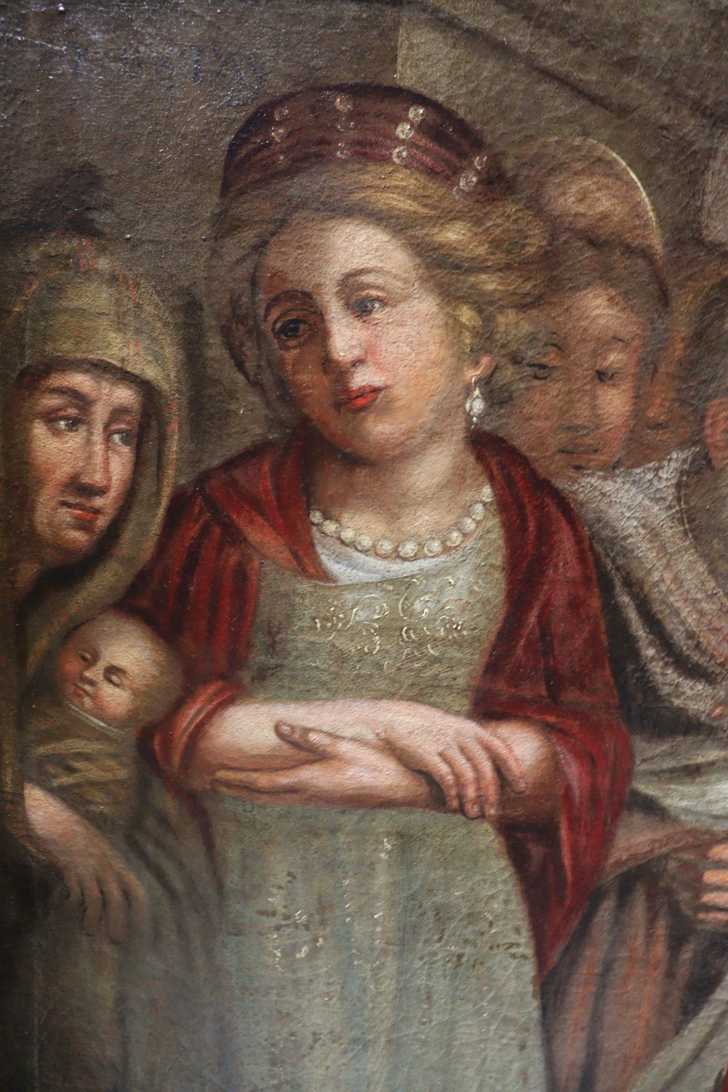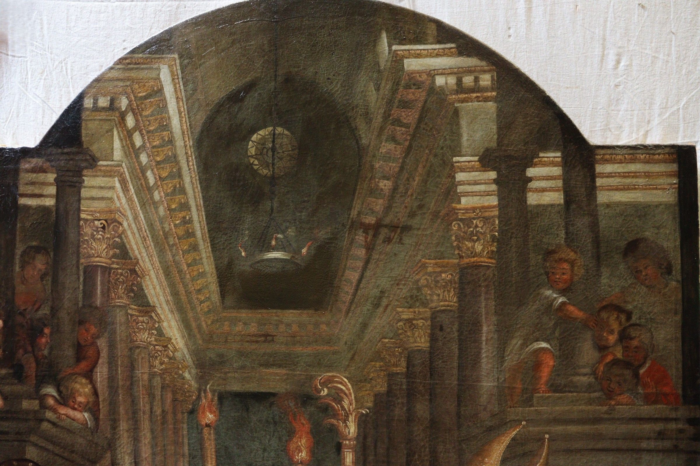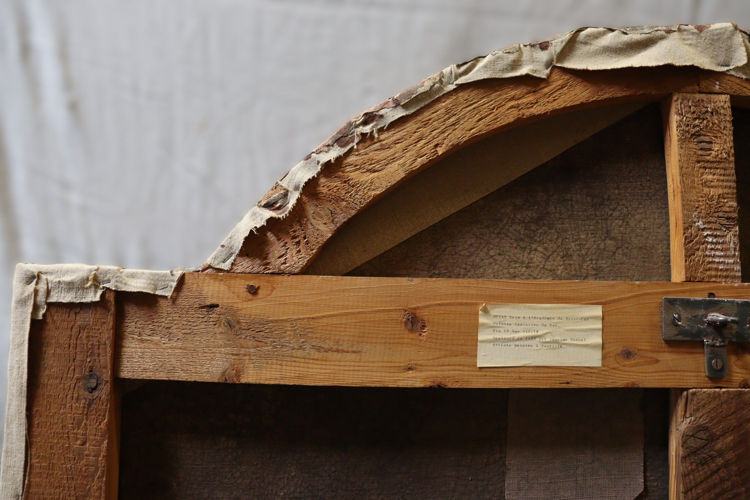 BUTAY (Late 17th century). Presentation at the temple. Oil on canvas, the upper part curved. Inscribed lower left "virgini purificata posuere". Restoration in 1978 by Anselme MARCEL. 188 x 132 cm