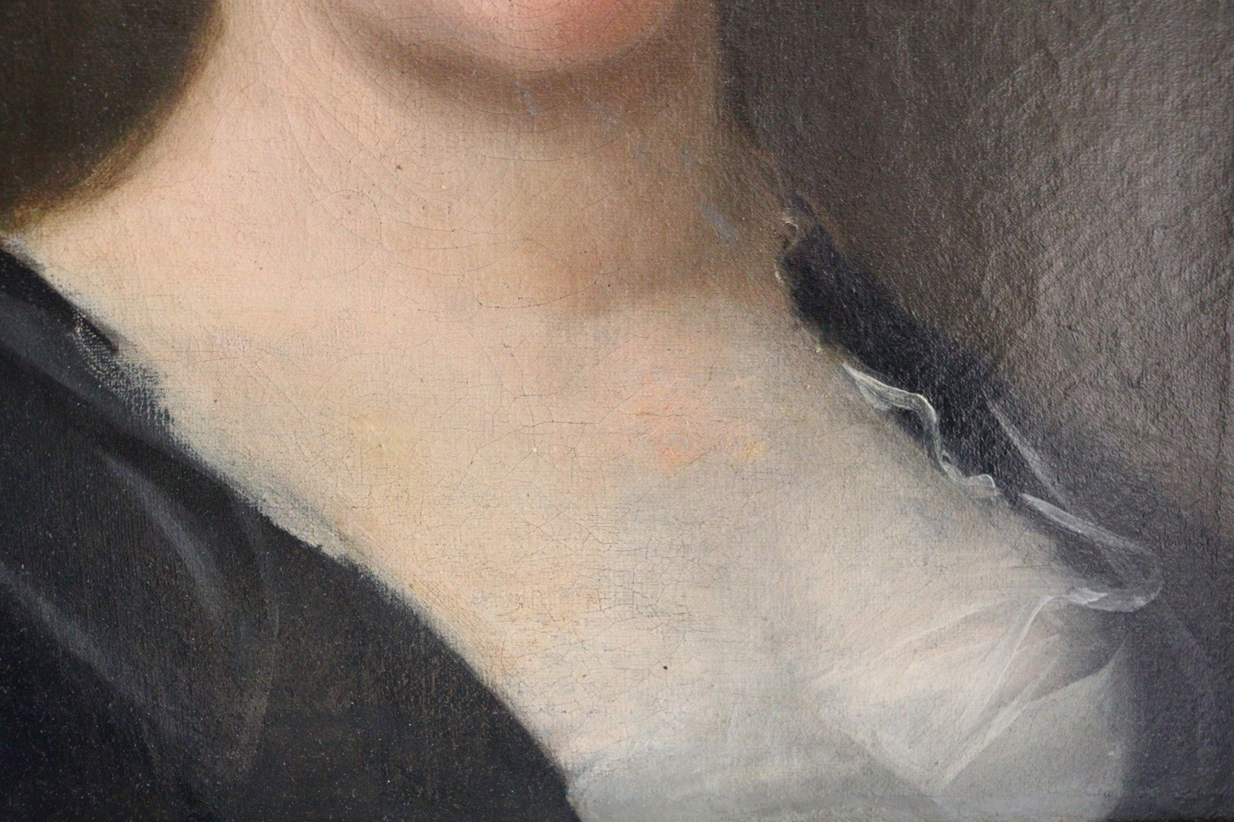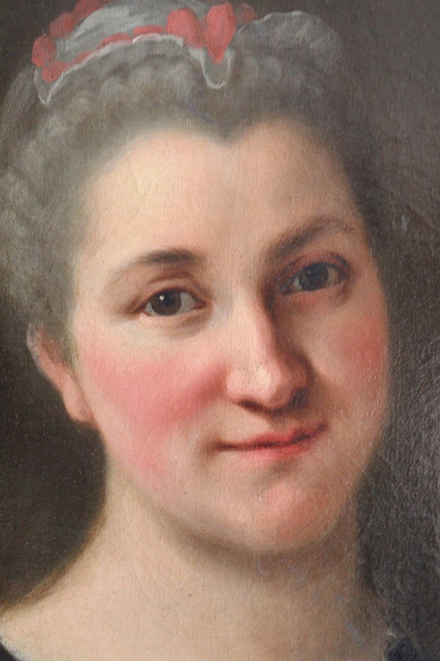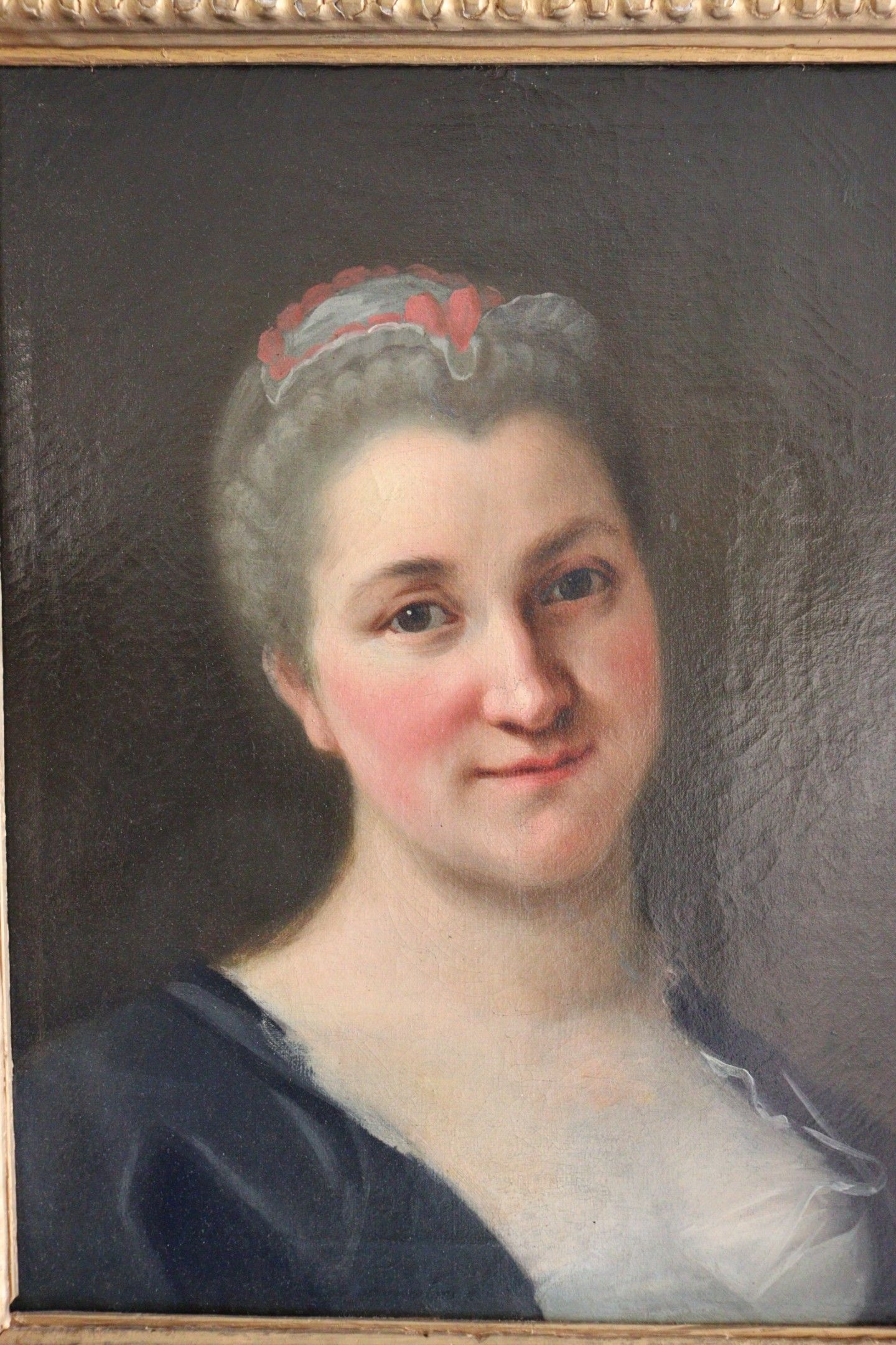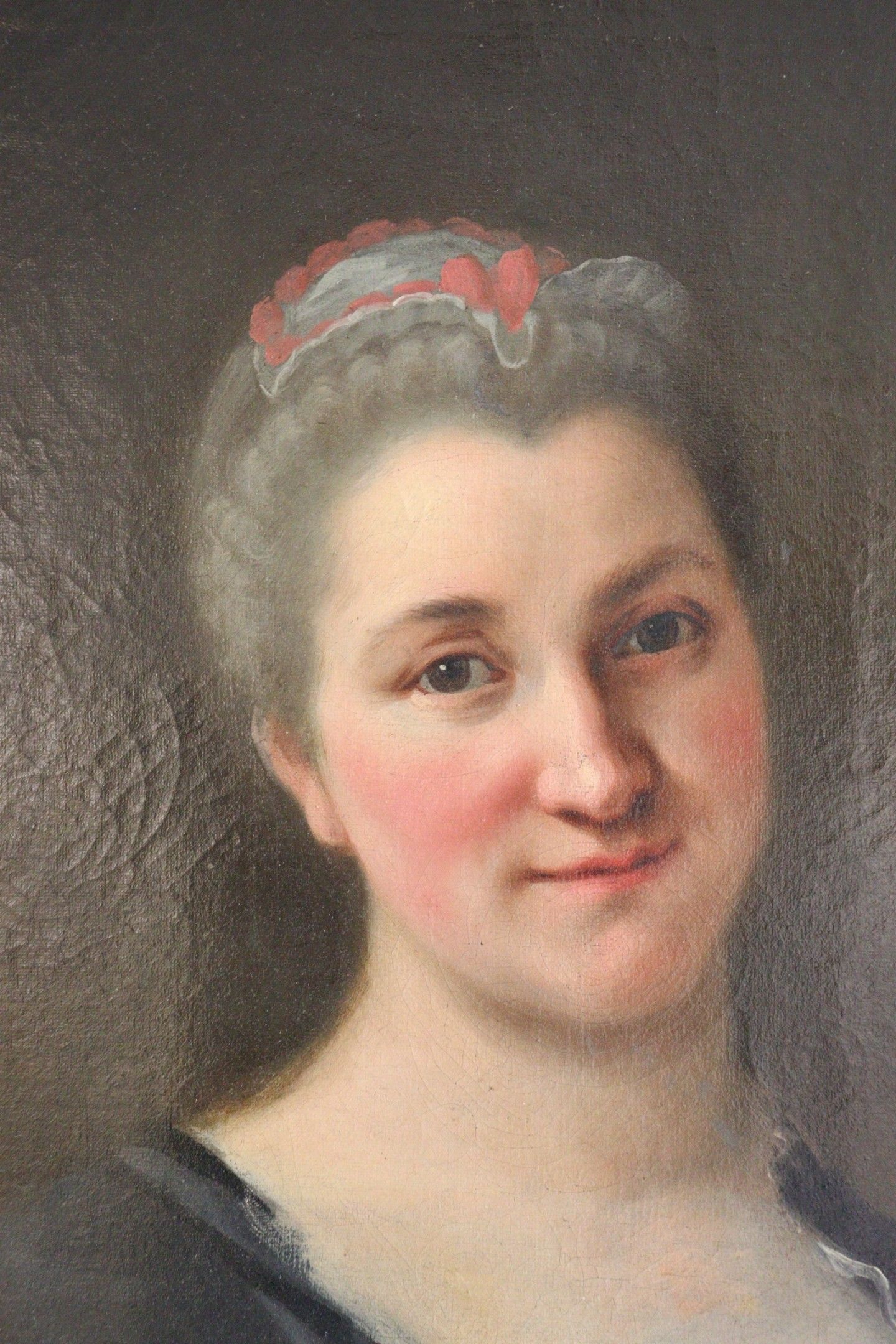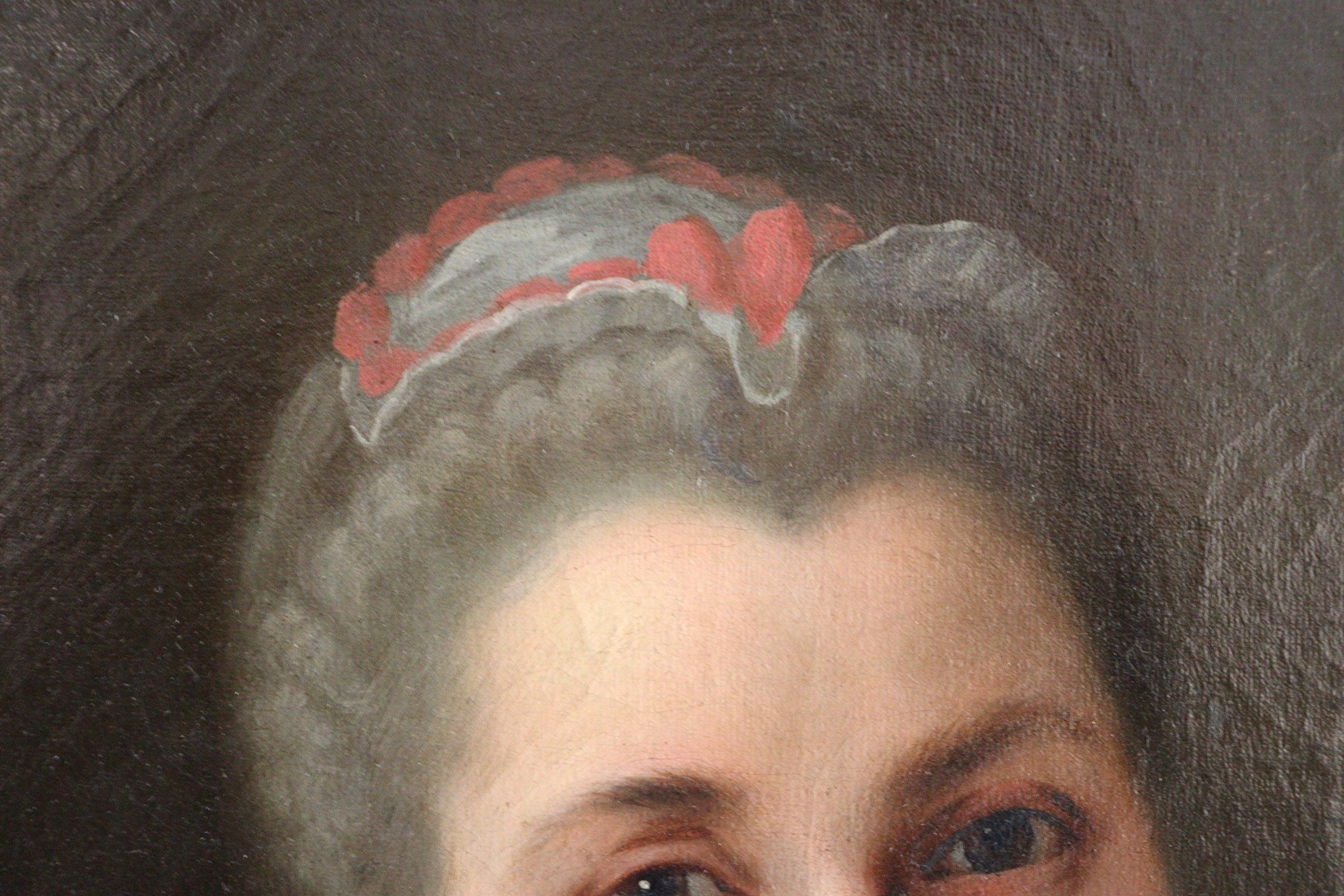 18th century school. Portrait of a woman wearing a headdress. Oil on canvas. 46,5 x 38 cm (Restorations)