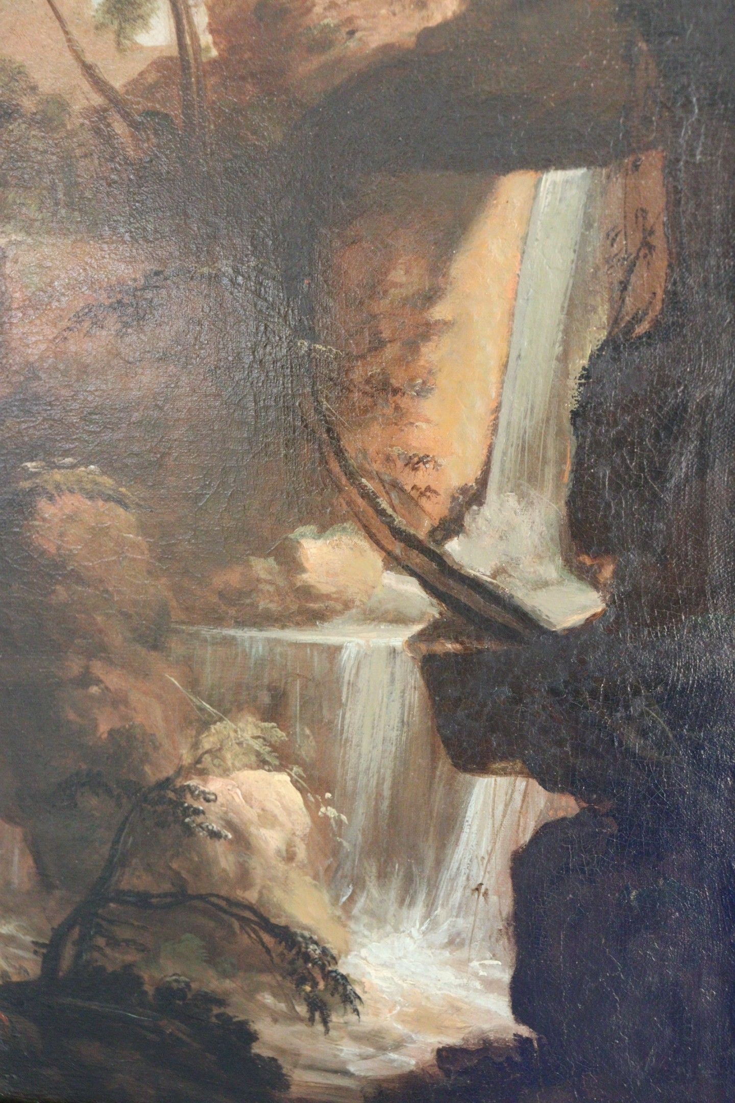 School of the XVIIIth century, entourage of PATEL. Landscape with waterfall. Oil on canvas. 52 x 61.5 cm