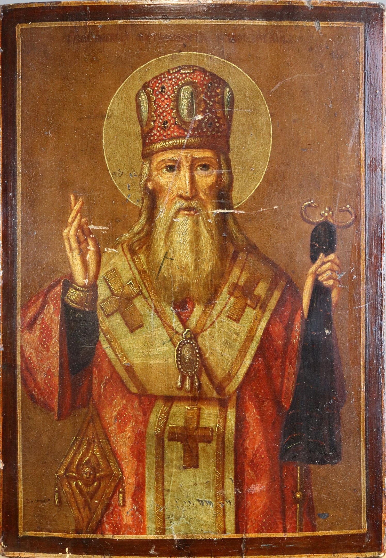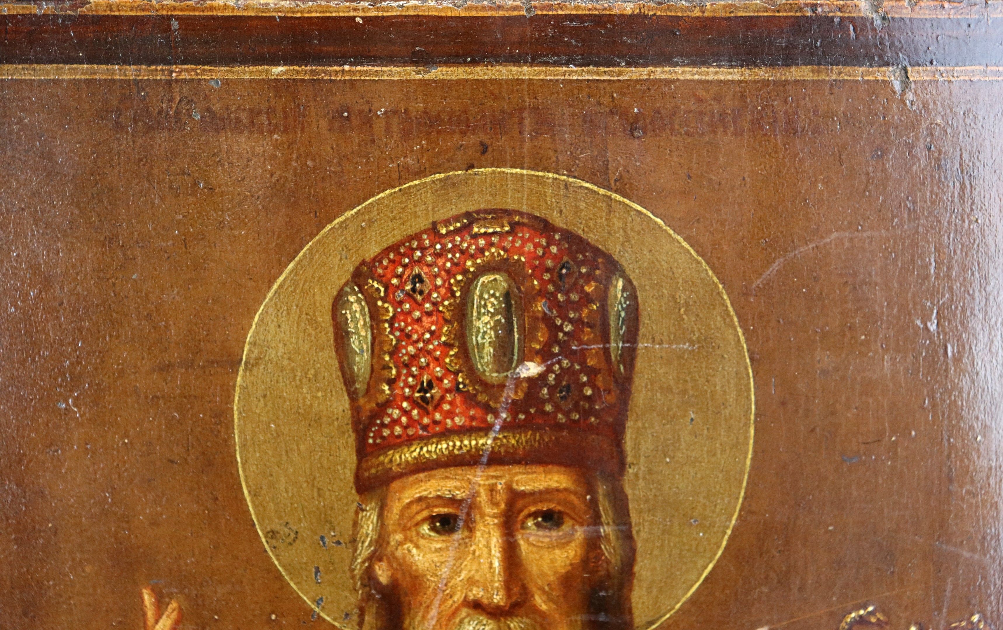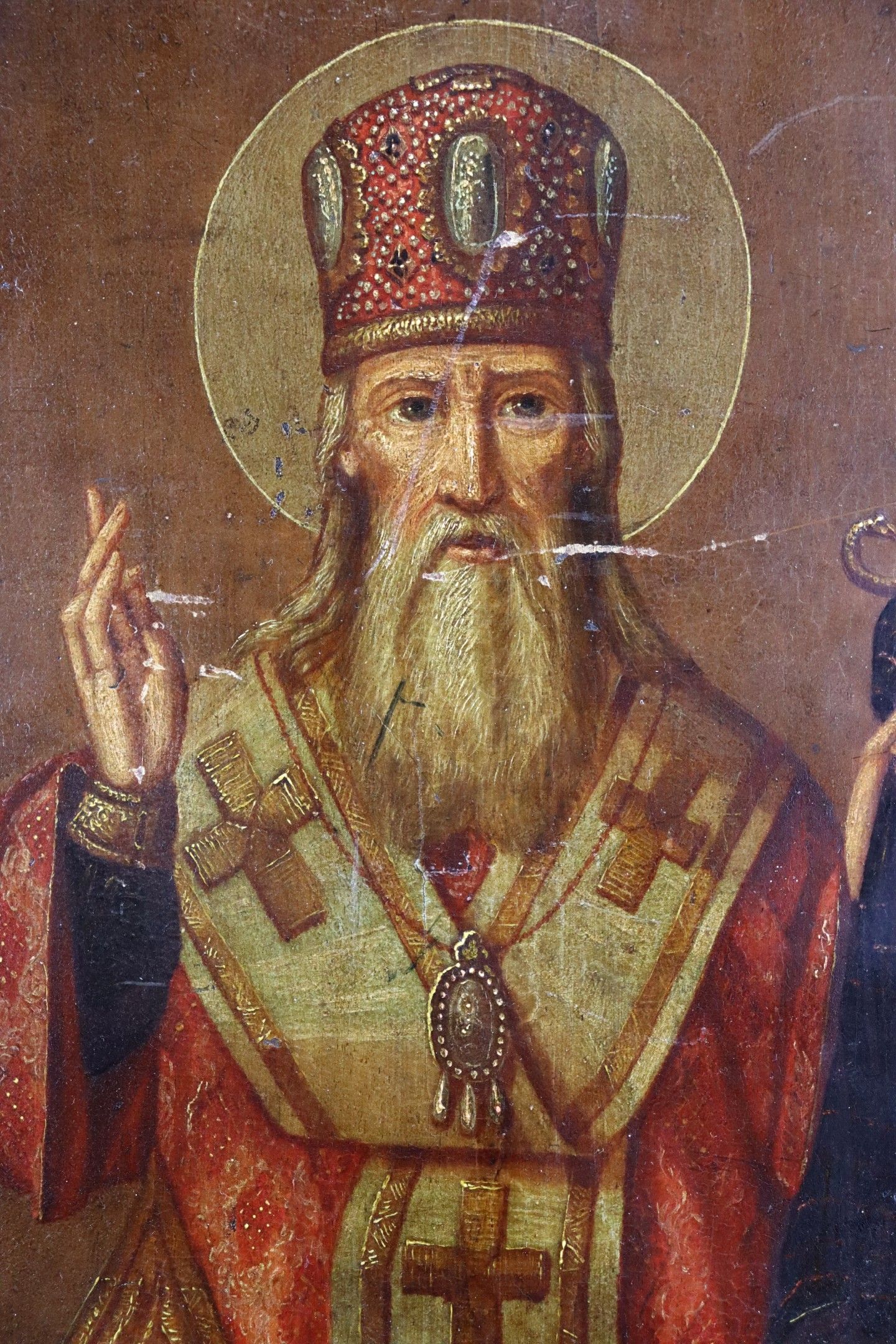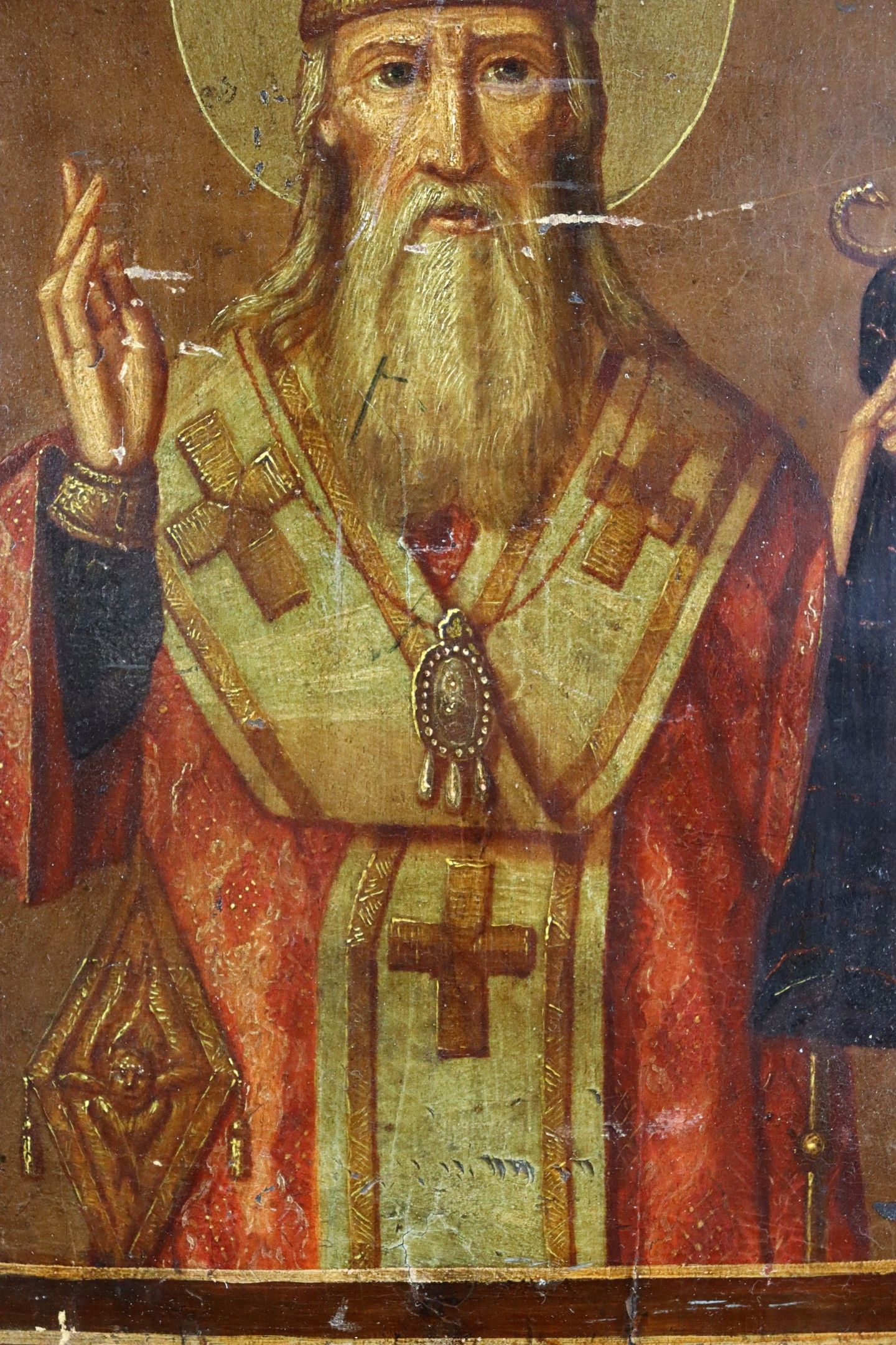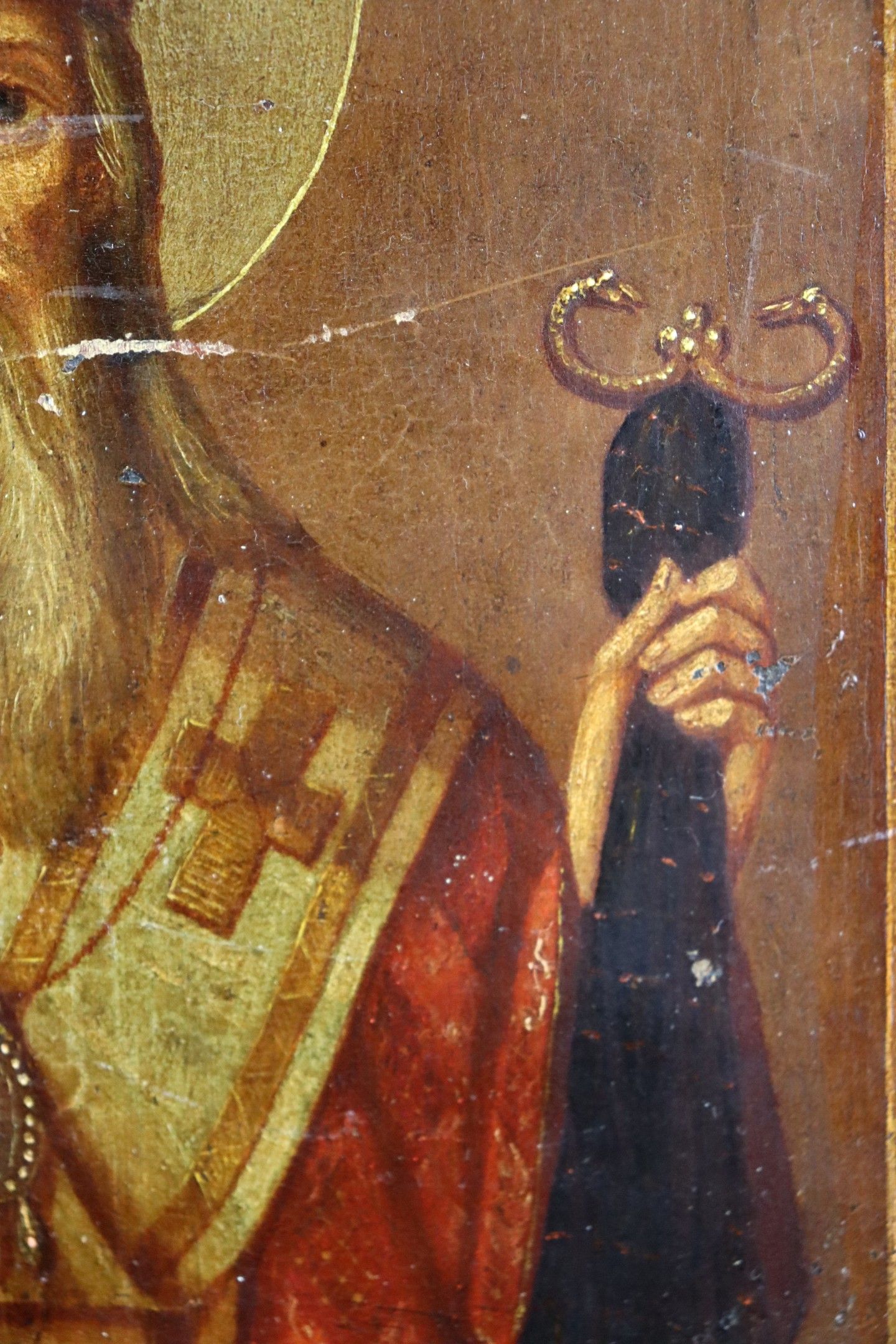 Icon of Saint Nicholas. Tempera on wood. Russian work from the 19th century. H.: 31 cm - W.: 21.5 cm (age-related wear and tear)