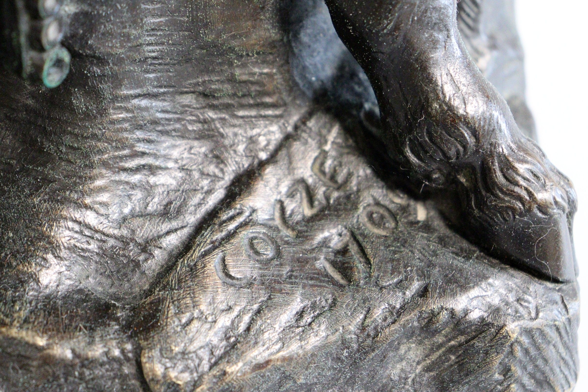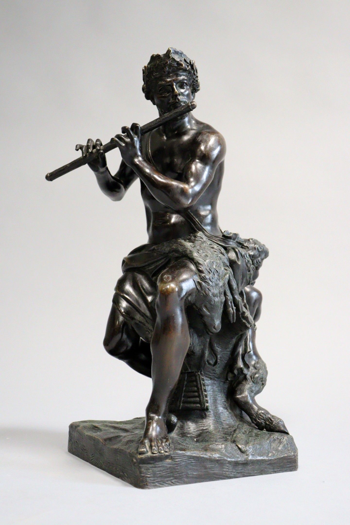 After Charles Antoine COYSEVOX (1640-1720). Pan and satyr. Proof in bronze with brown patina, signed and dated 1709 on the terrace. Height: 45 cm