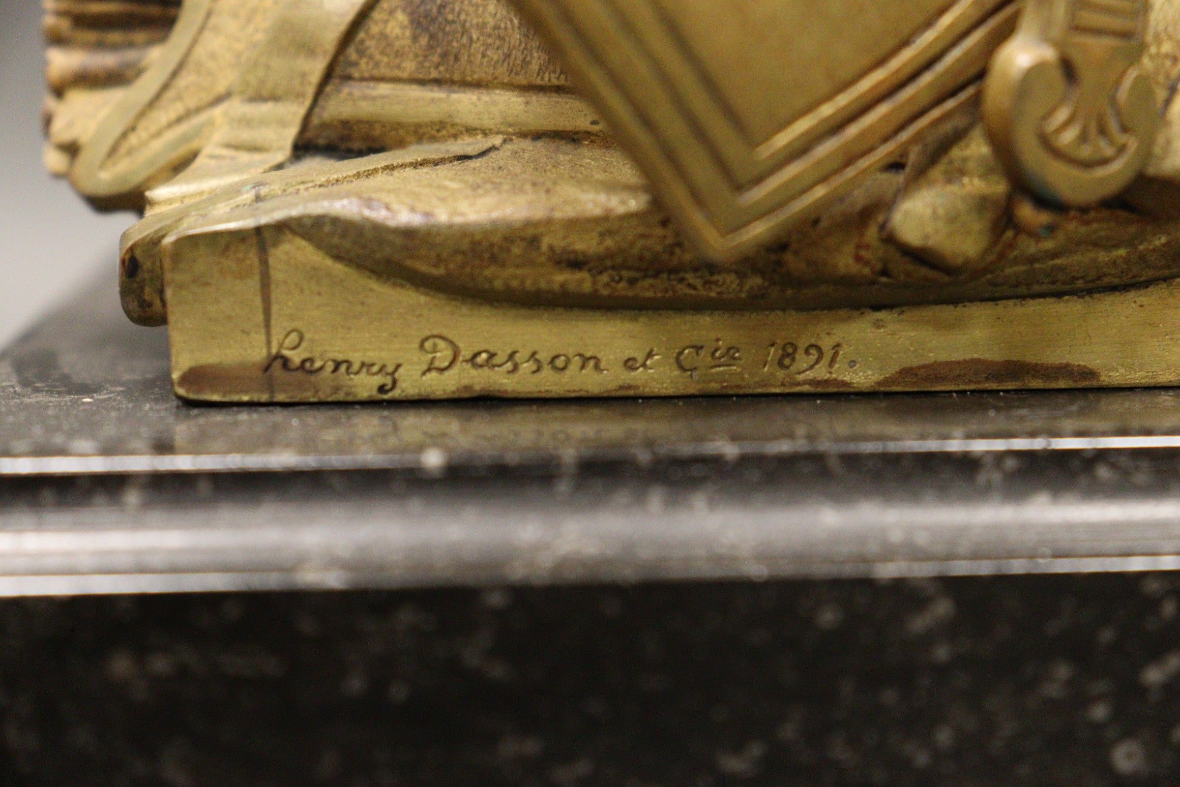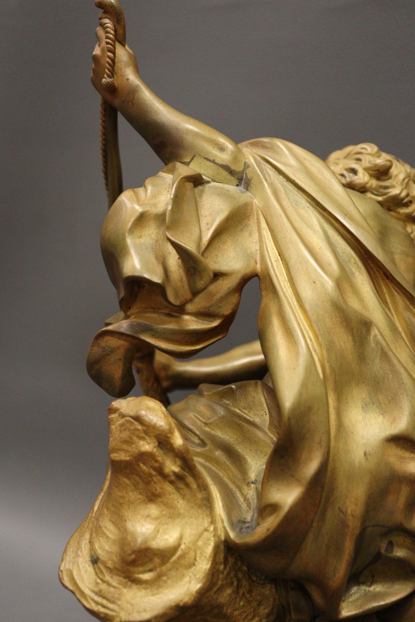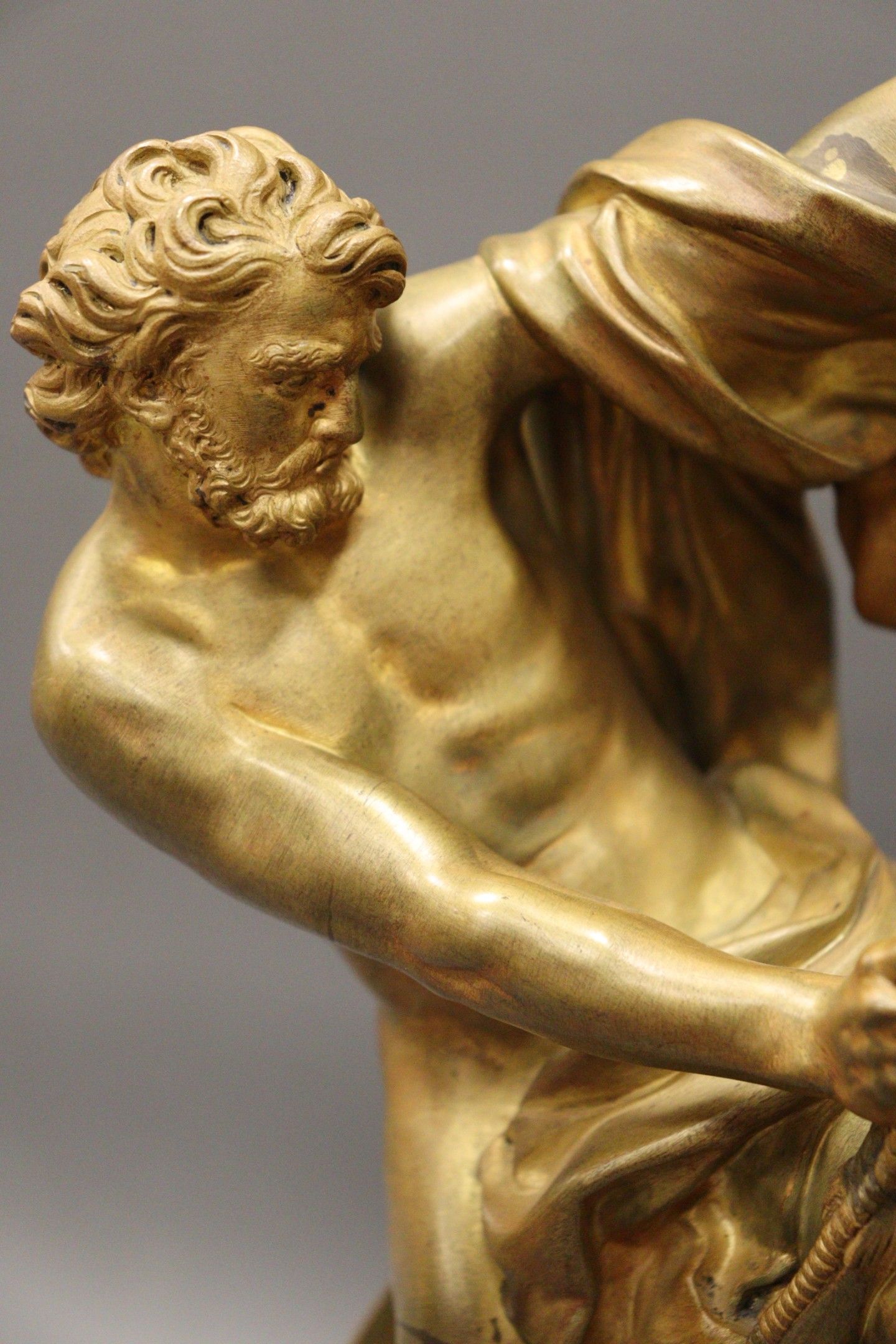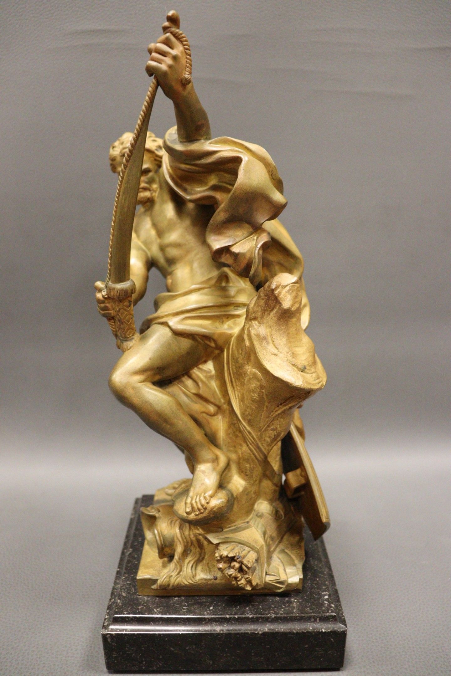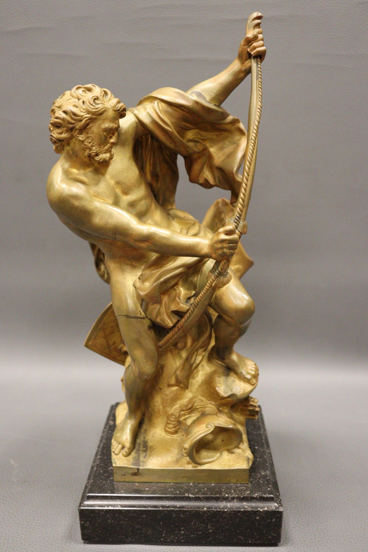 Jacques BOUSSEAU (after). Ulysses bending the bow for which Penelope is to be the prize Chased and gilt bronze proof (wear). Signed Henry DASSON et Cie 1891. Black marble counter base. H.: 38 cm Note: Our gilded bronze proof is a reduction of the reception piece for the Royal Academy of Painting and Sculpture, executed in marble in 1715 and now in the Louvre Museum, ref. MR1766.