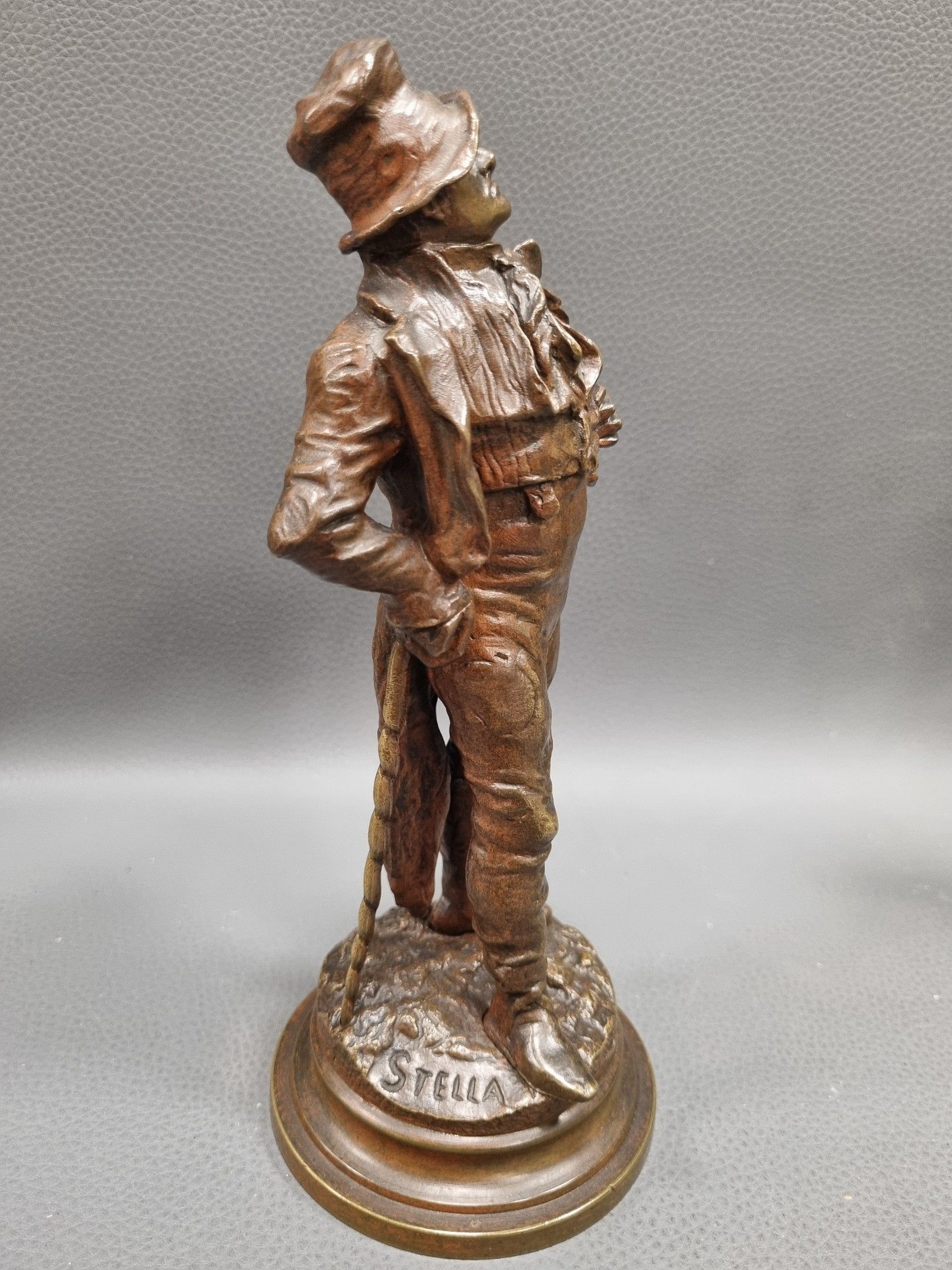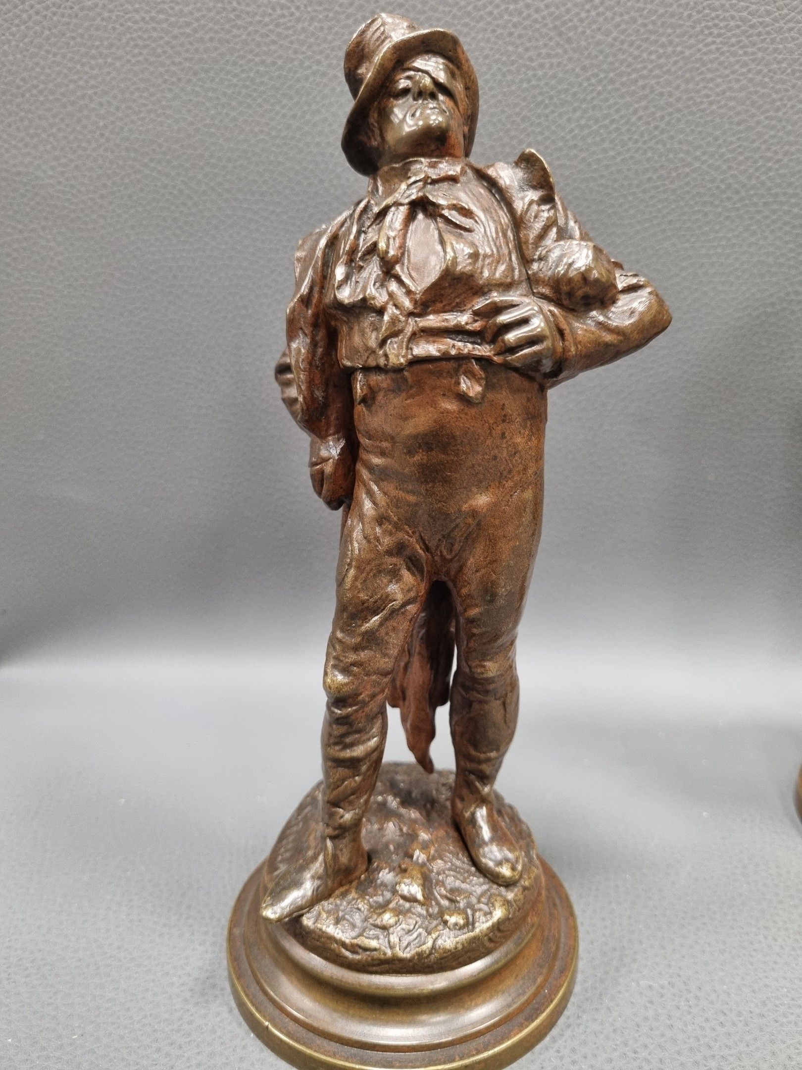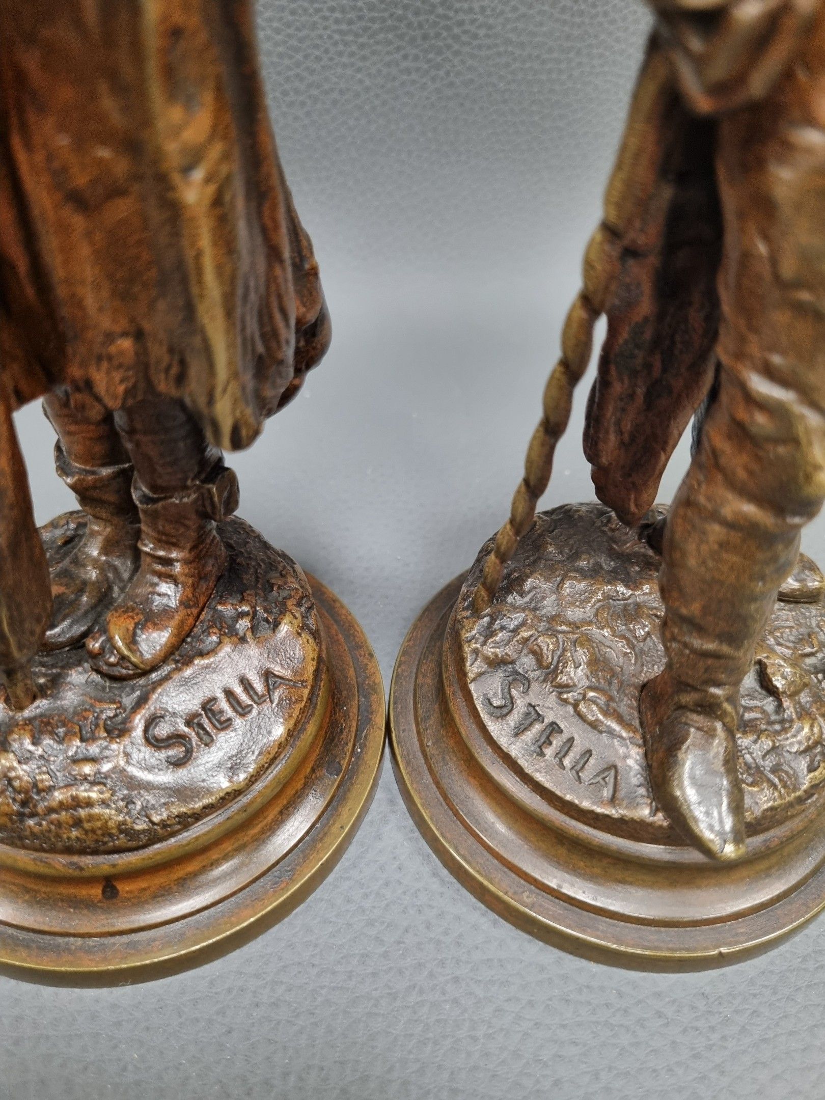 Etienne Alexandre STELLA (19th-20th century). Pair of subjects in bronze with brown patina. Circular counter base. Signed. Height : 22 cm