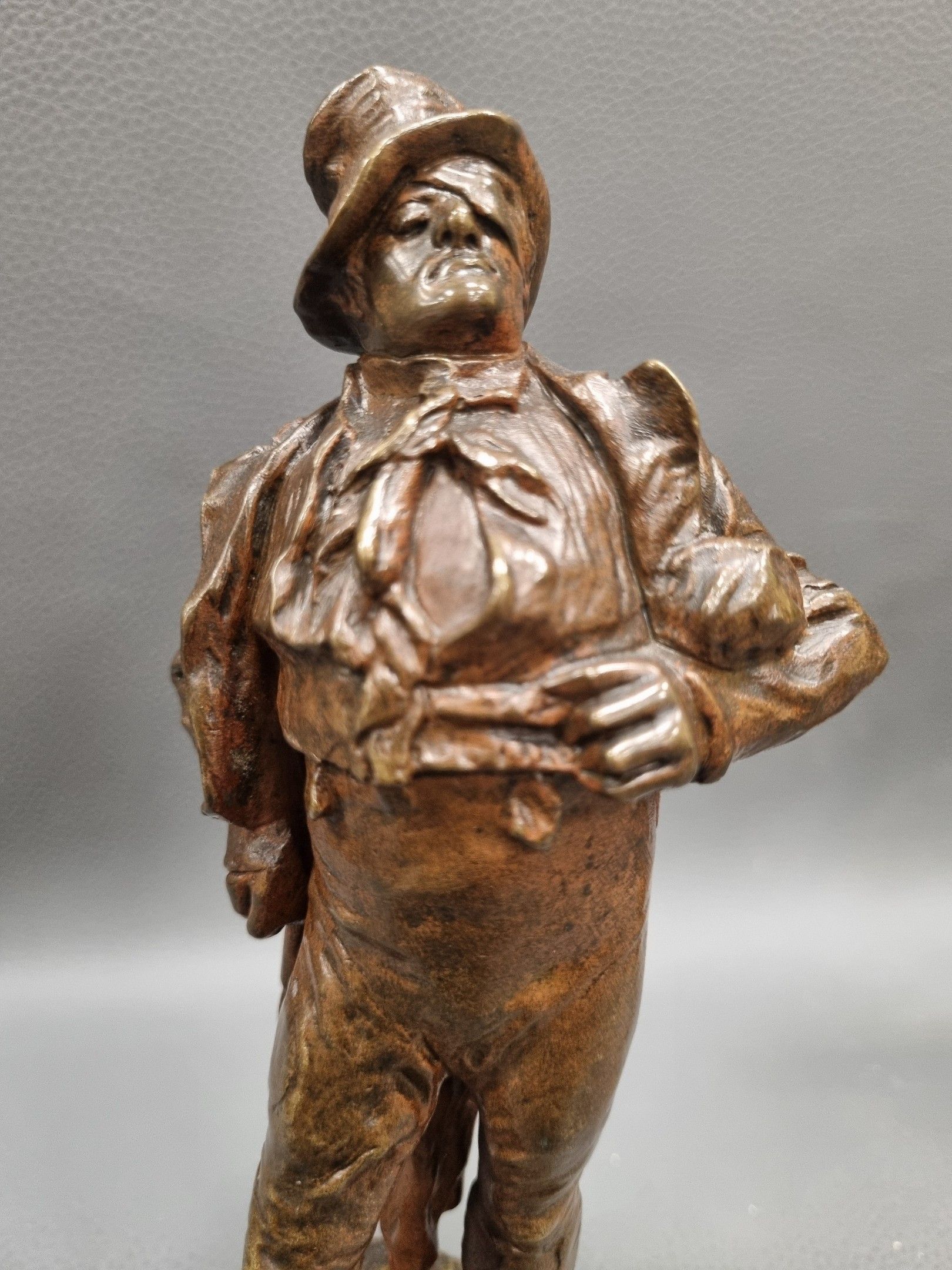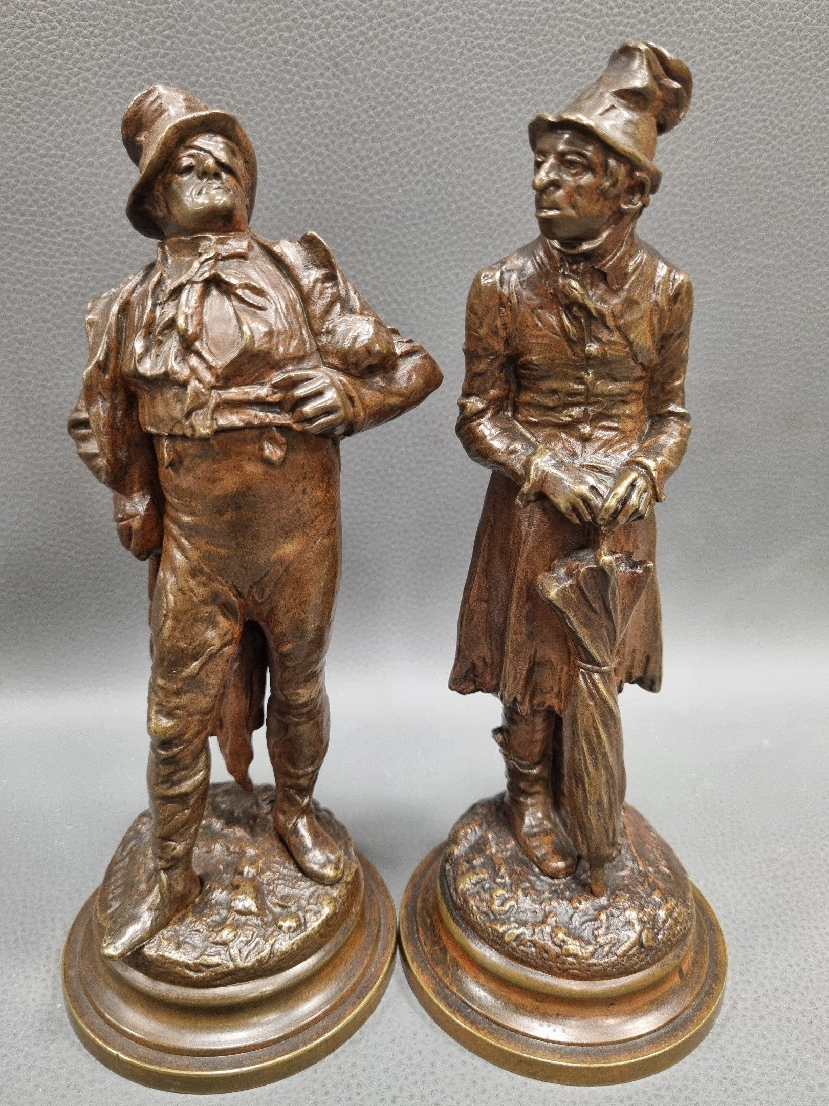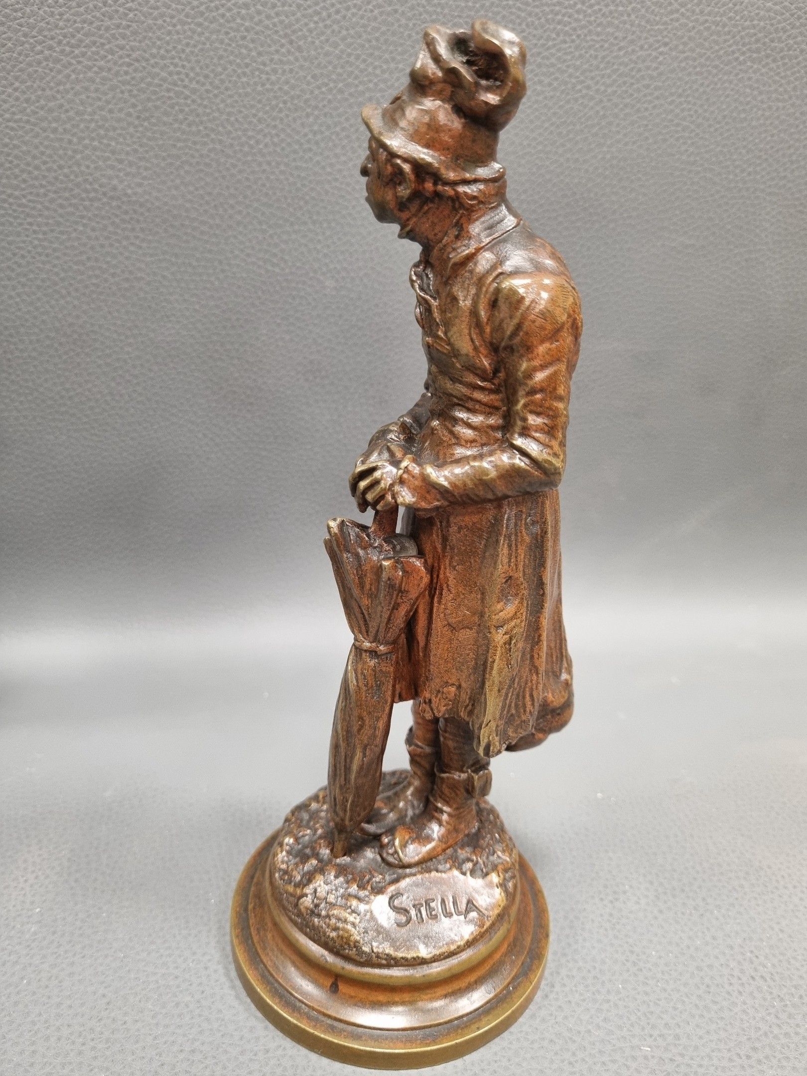 Etienne Alexandre STELLA (19th-20th century). Pair of subjects in bronze with brown patina. Circular counter base. Signed. Height : 22 cm