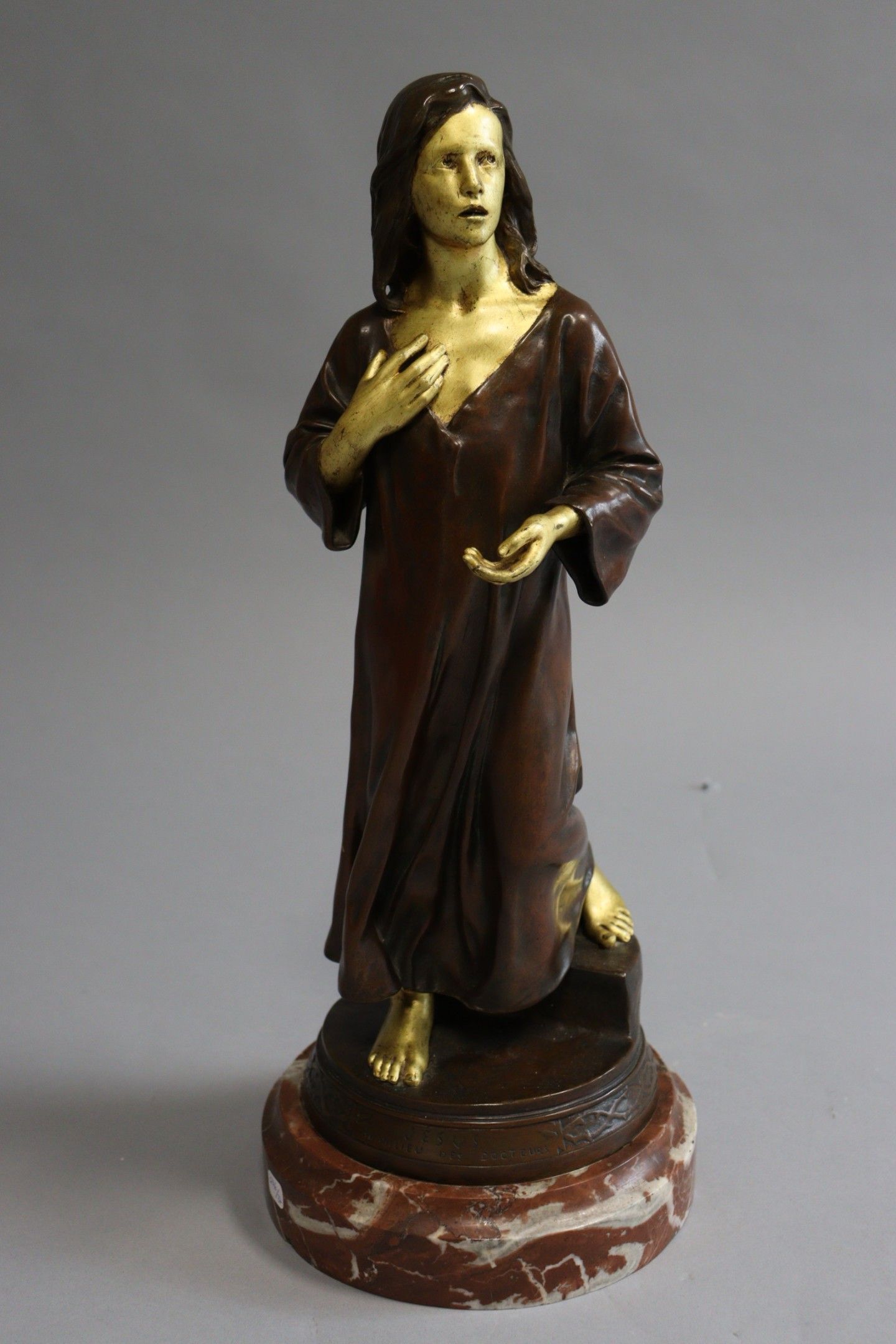 Raoul LARCHE (1860-1912). Jesus among the doctors. Bronze sculpture with a brown and gilded patina on a marble base. Signed and dated on the base, founder's stamp on the back. Height: 50 cm with base