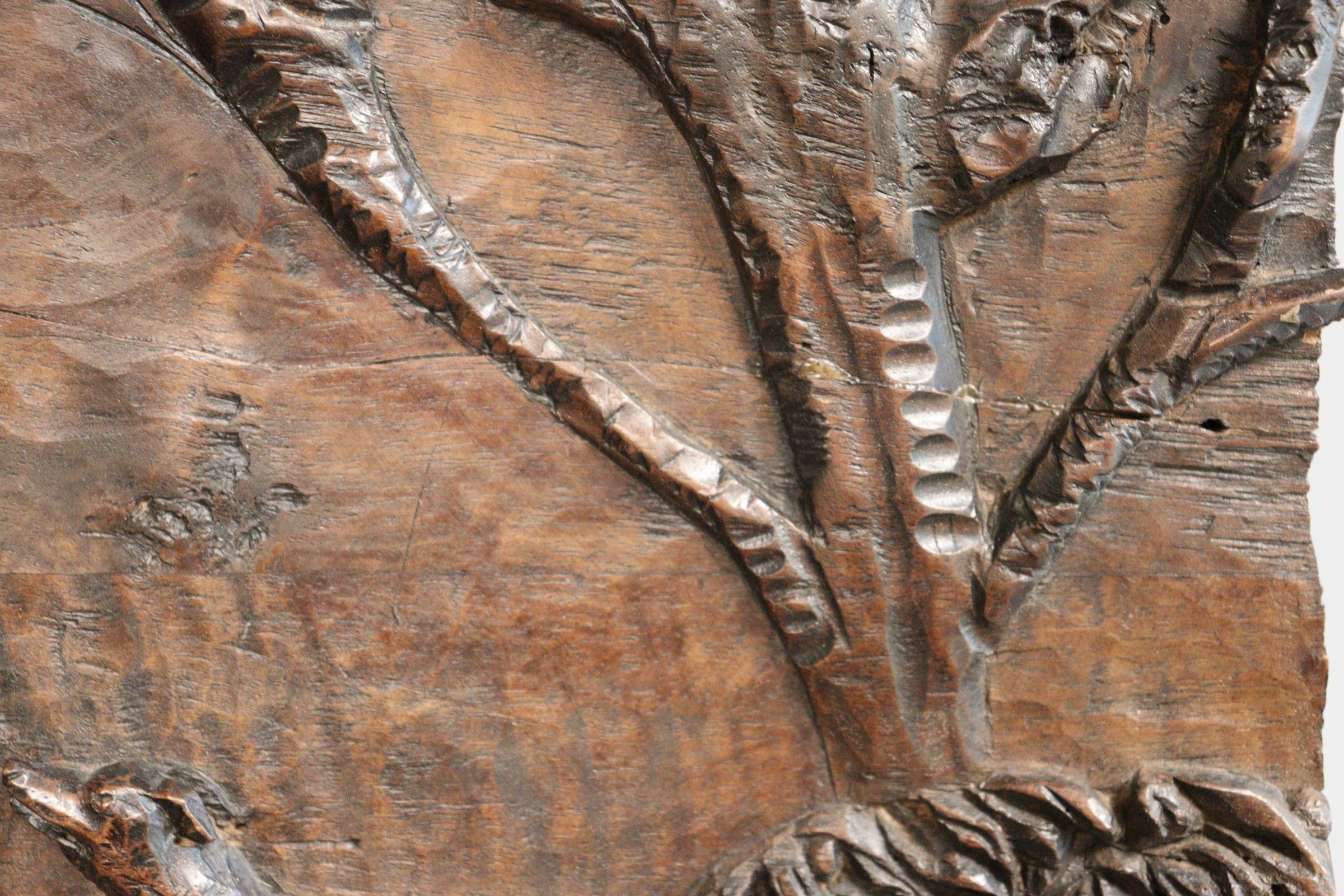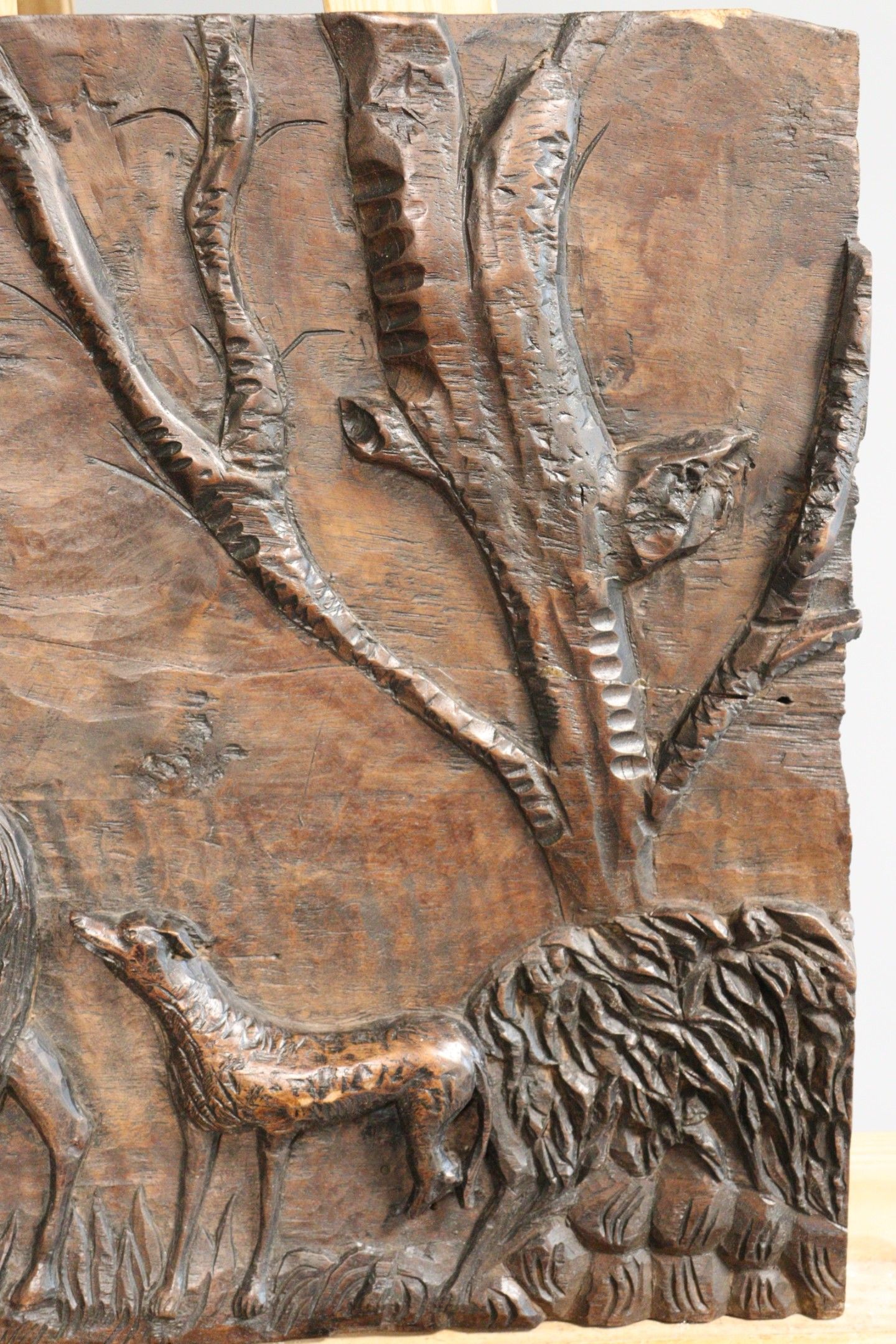 Napoleon on horseback. Panel of two carved wooden boards (restored cracks). Slightly missing. Regional work from the 19th century. 33 x 46 cm