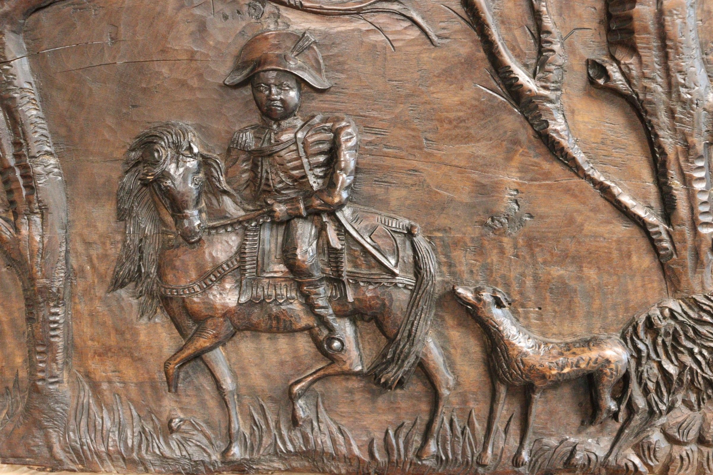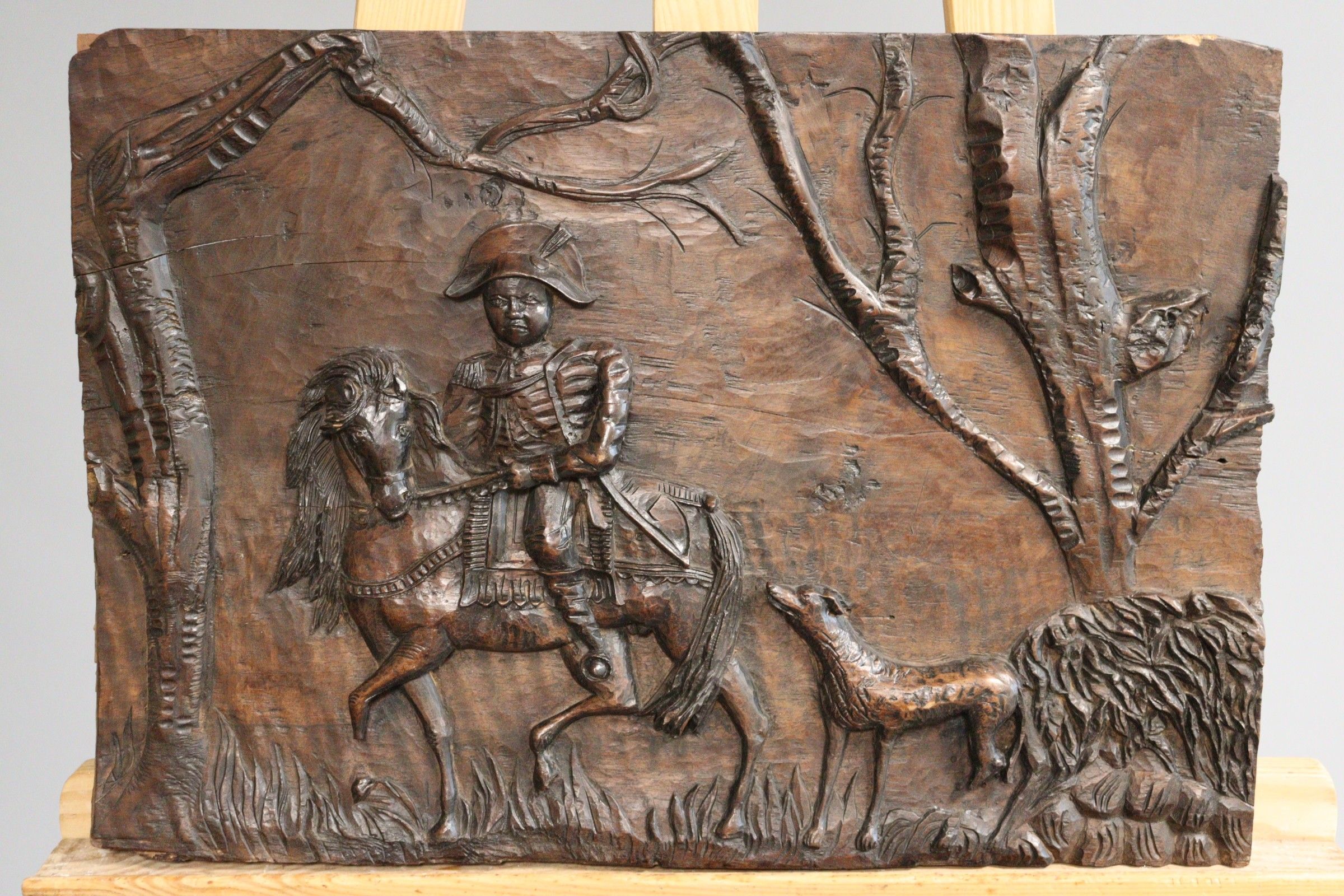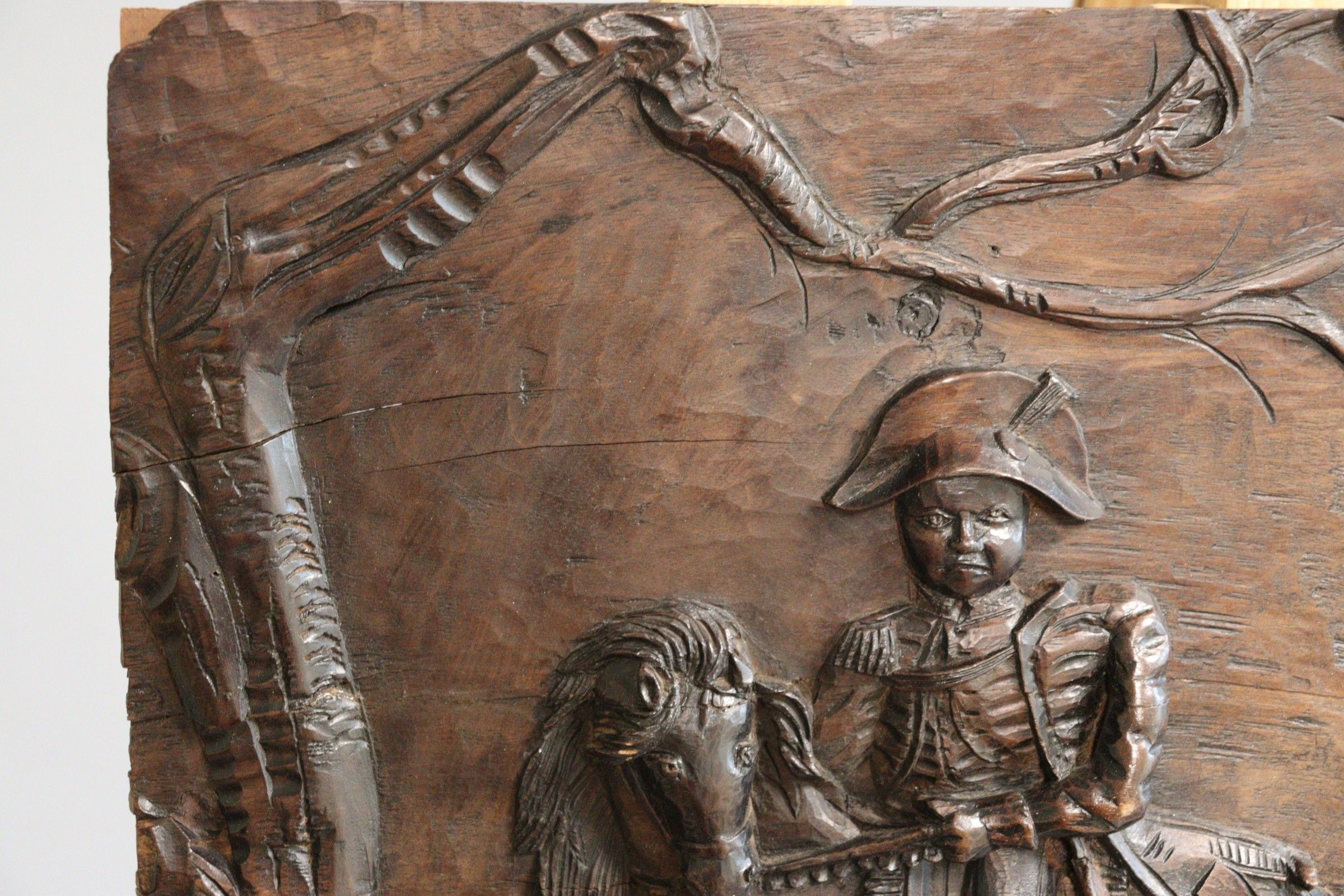 Napoleon on horseback. Panel of two carved wooden boards (re…