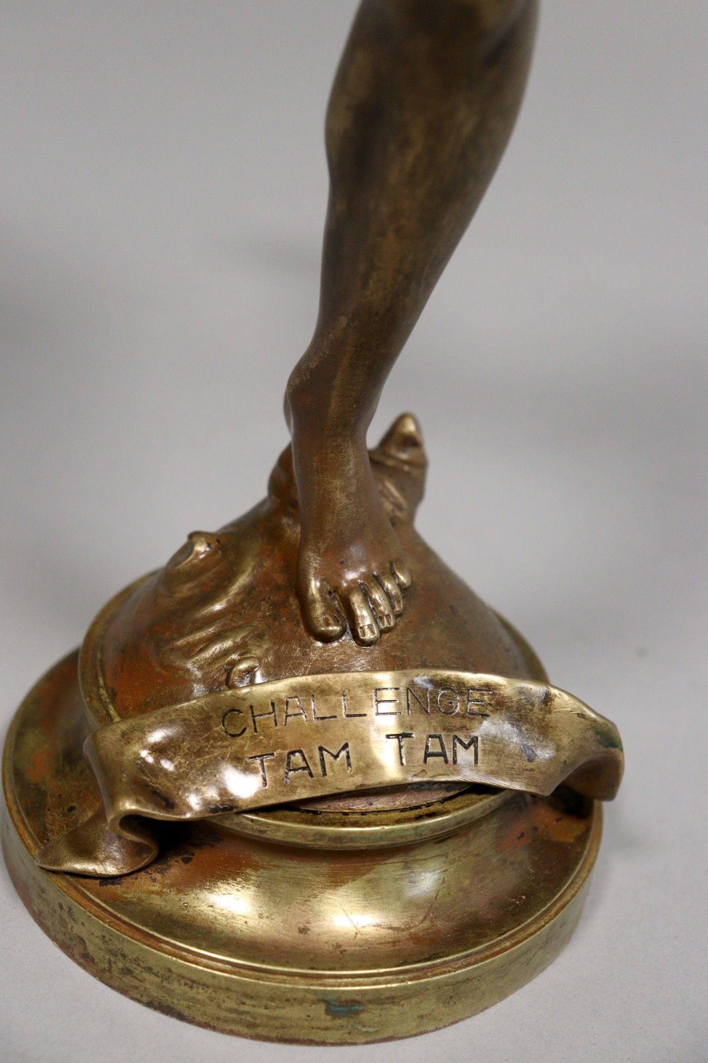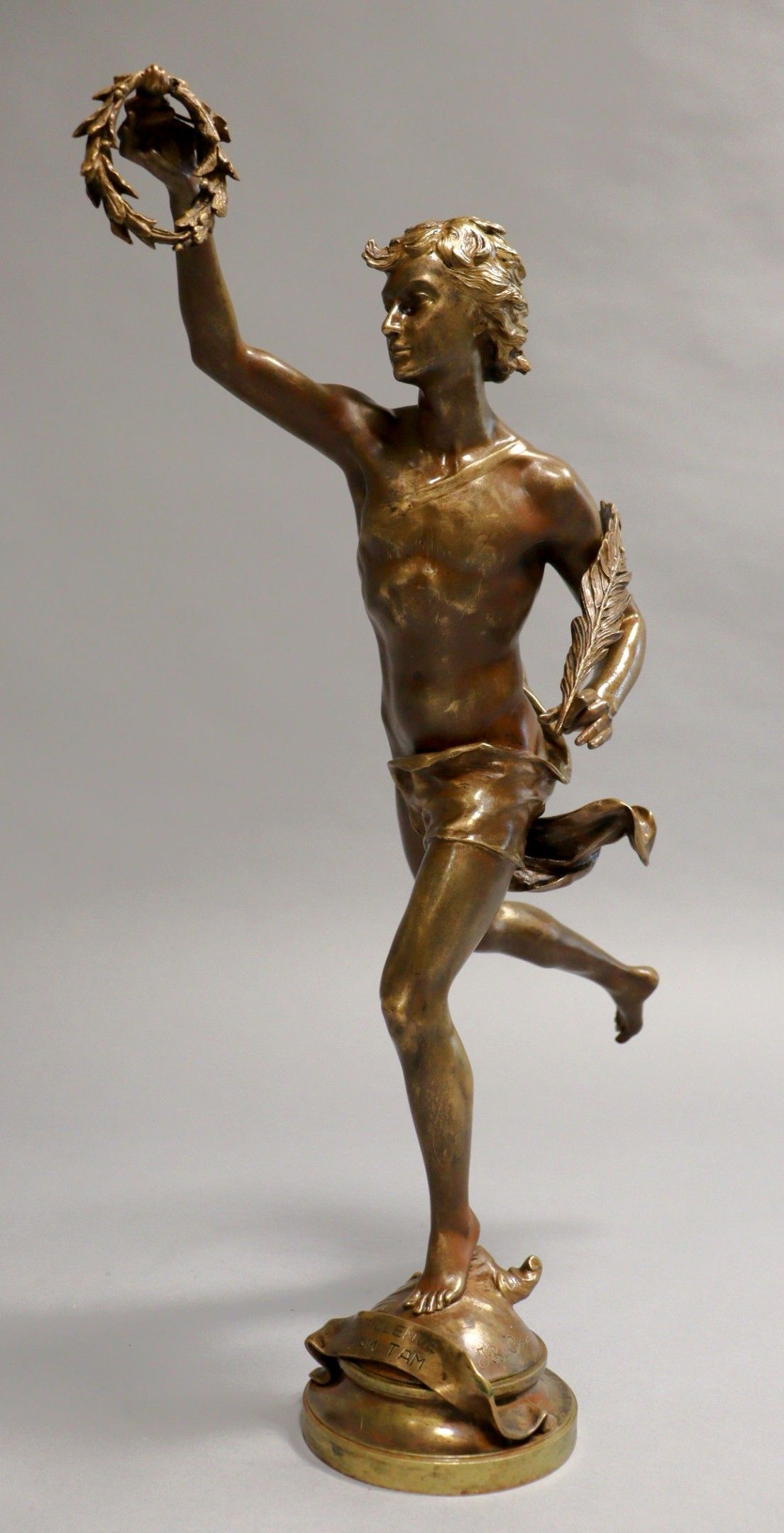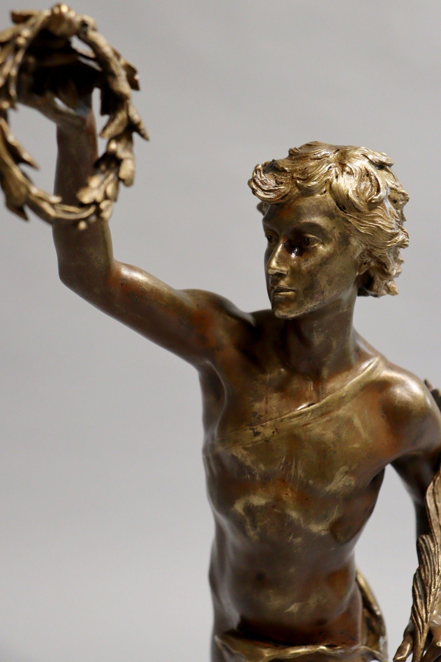 Jean Baptiste GERMAIN (1841-1910) (after). Runner with palm and laurel wreath. Gilt bronze proof, signed on the base. Inscribed "Challenge Tam Tam". Height: 51.5 cm