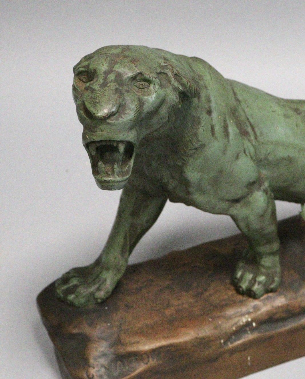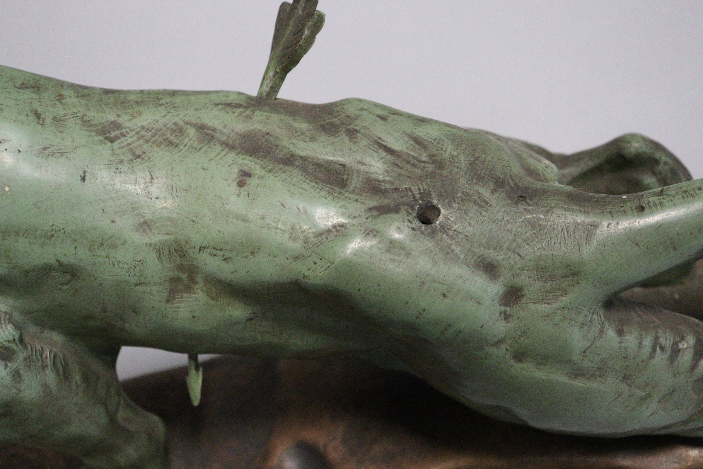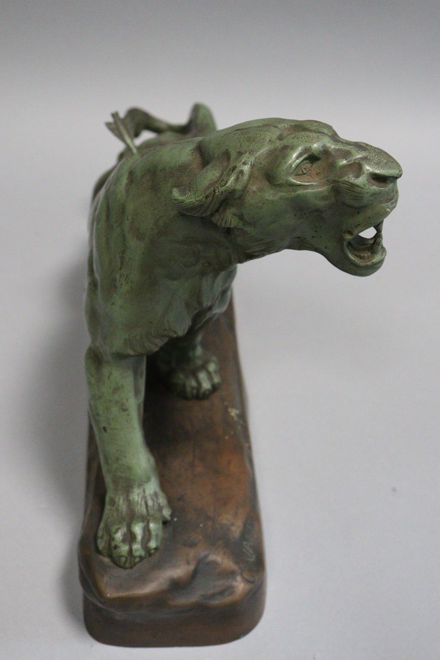 Charles VALTON (1851-1918). Wounded panther. Green patina br…