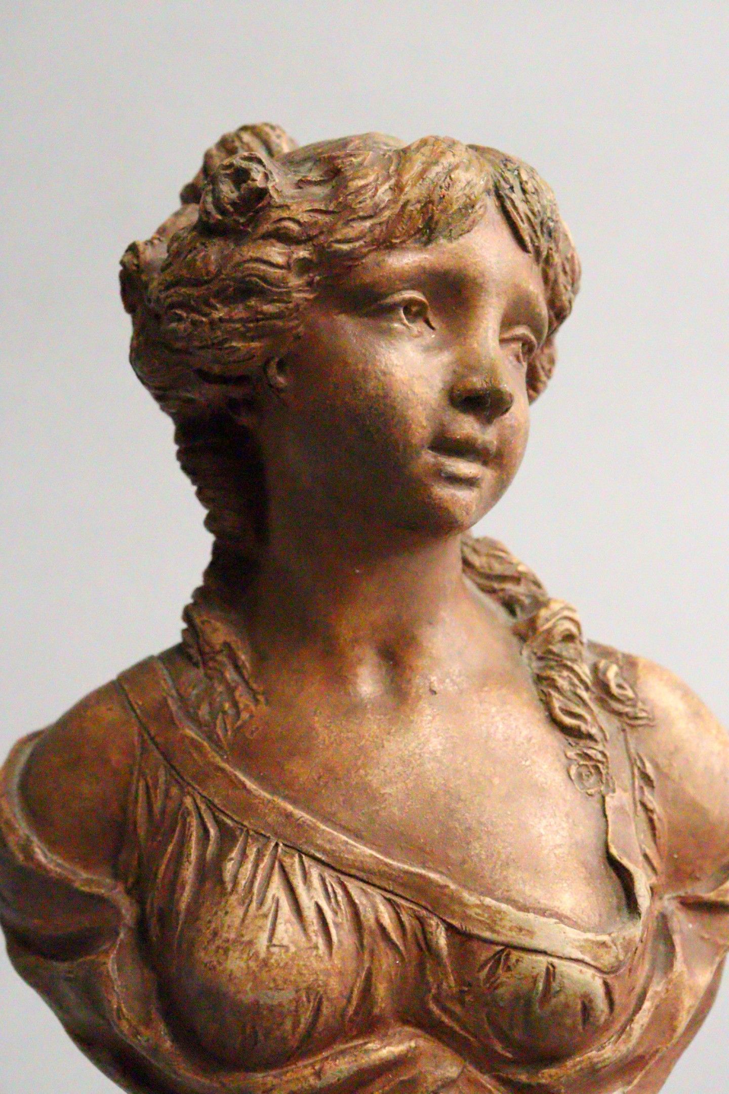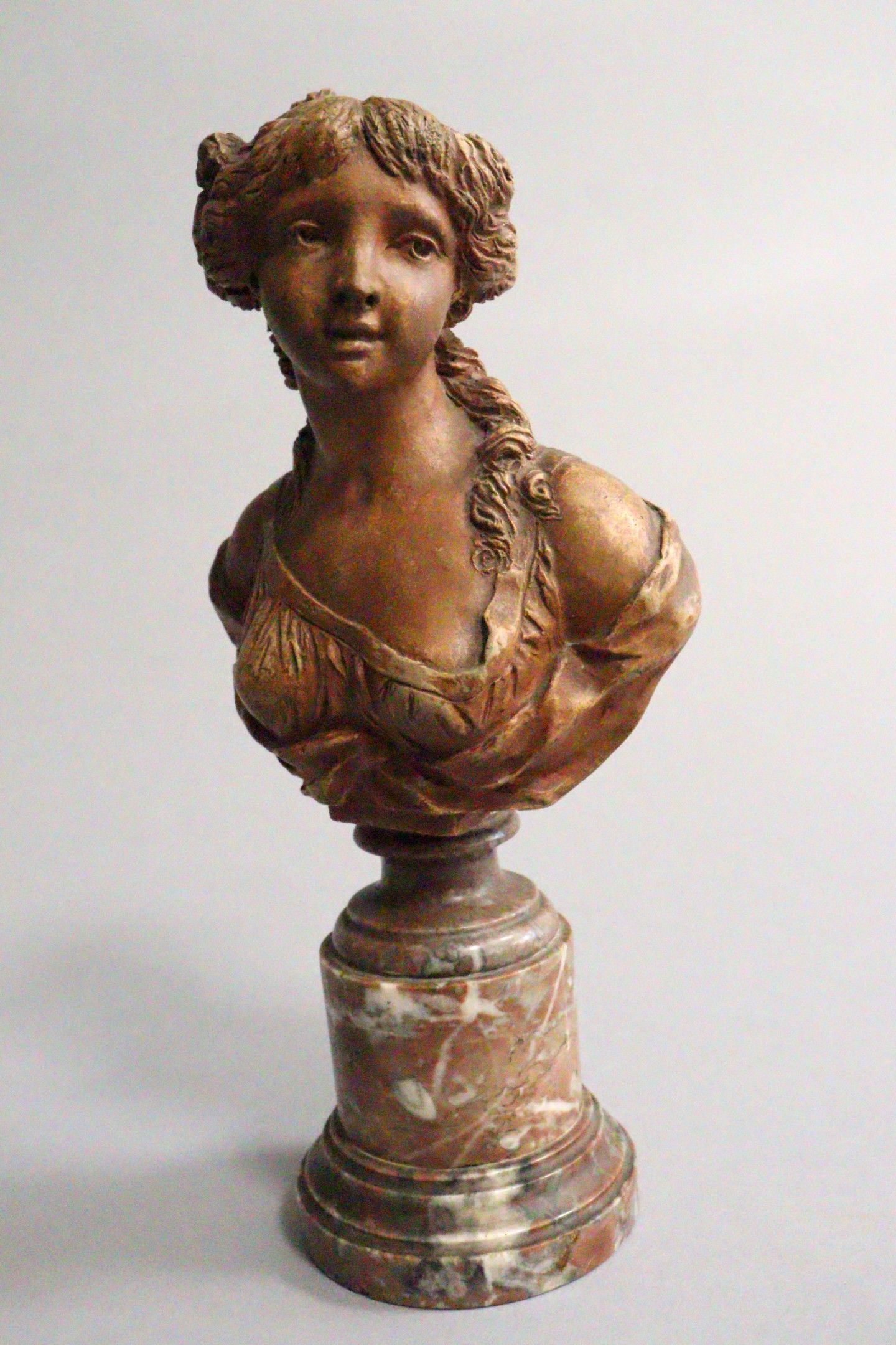 After CLODION (1738-1814). Bust of a draped young girl. Terr…