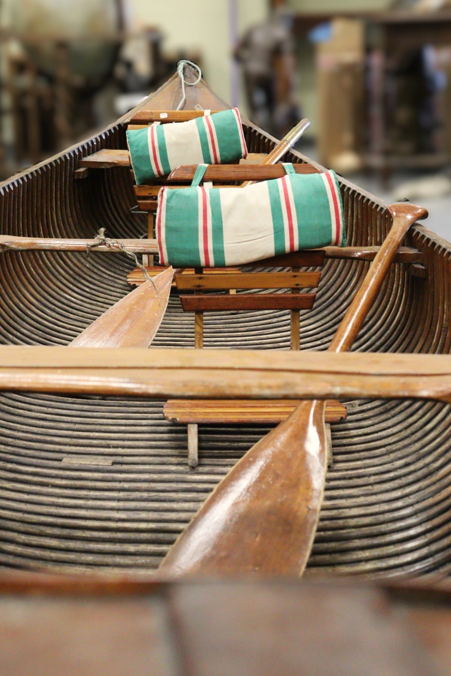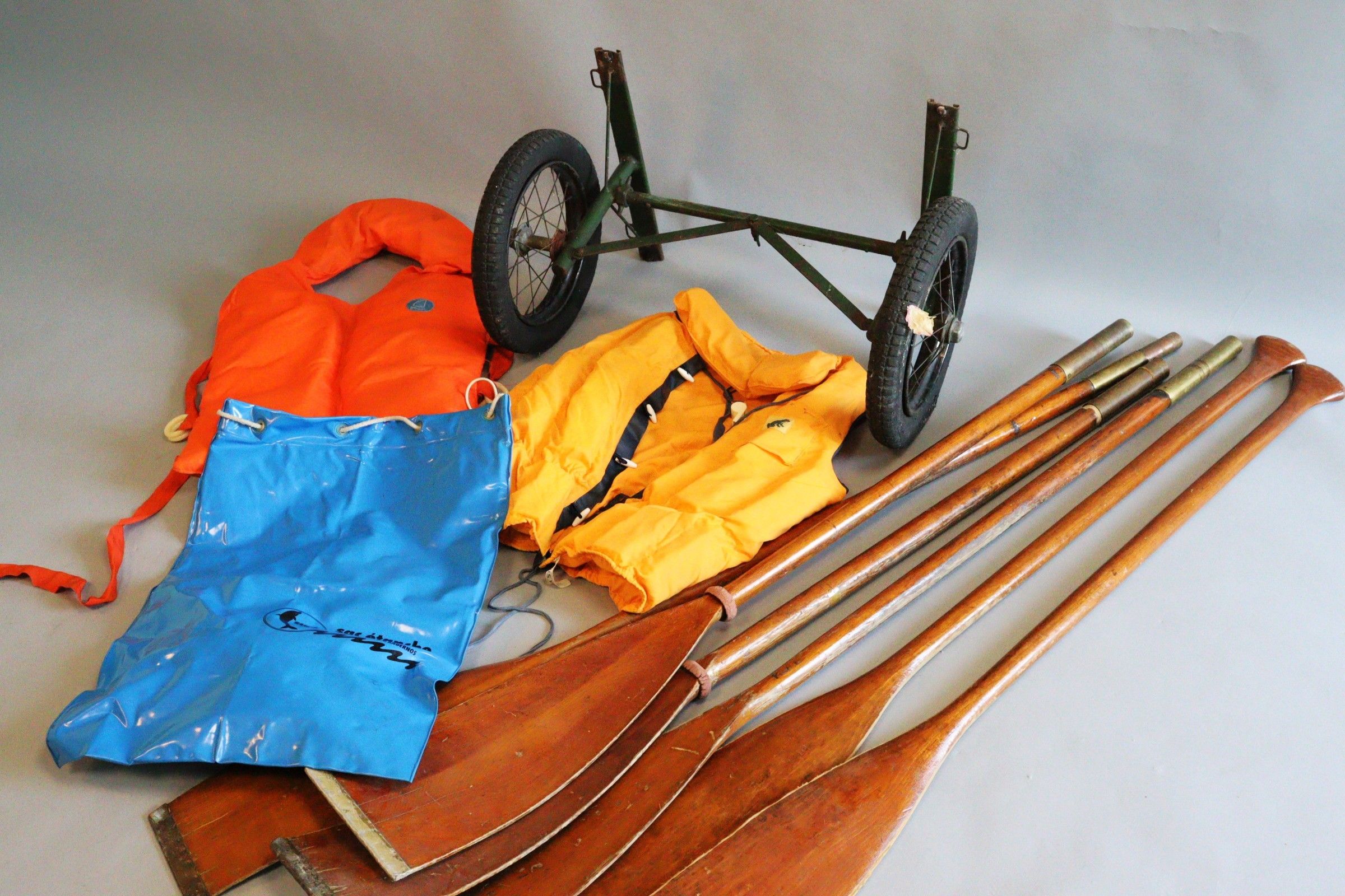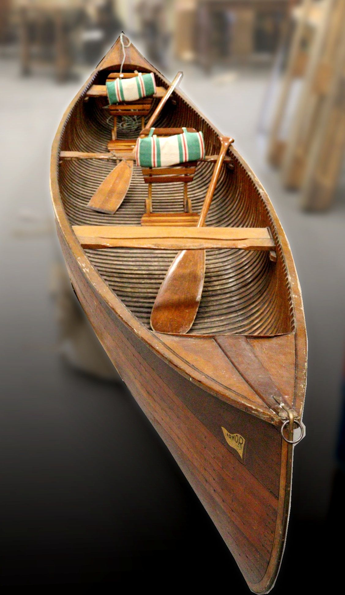 ARMOR (S.E.B.A). Wooden canoe. Equipped with six oars, two s…