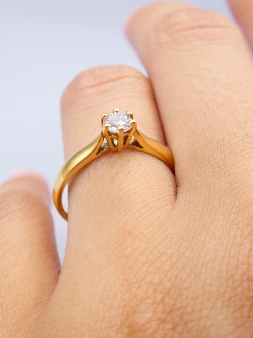 Solitaire ring in yellow gold 750°°°° set with a brilliant-c…