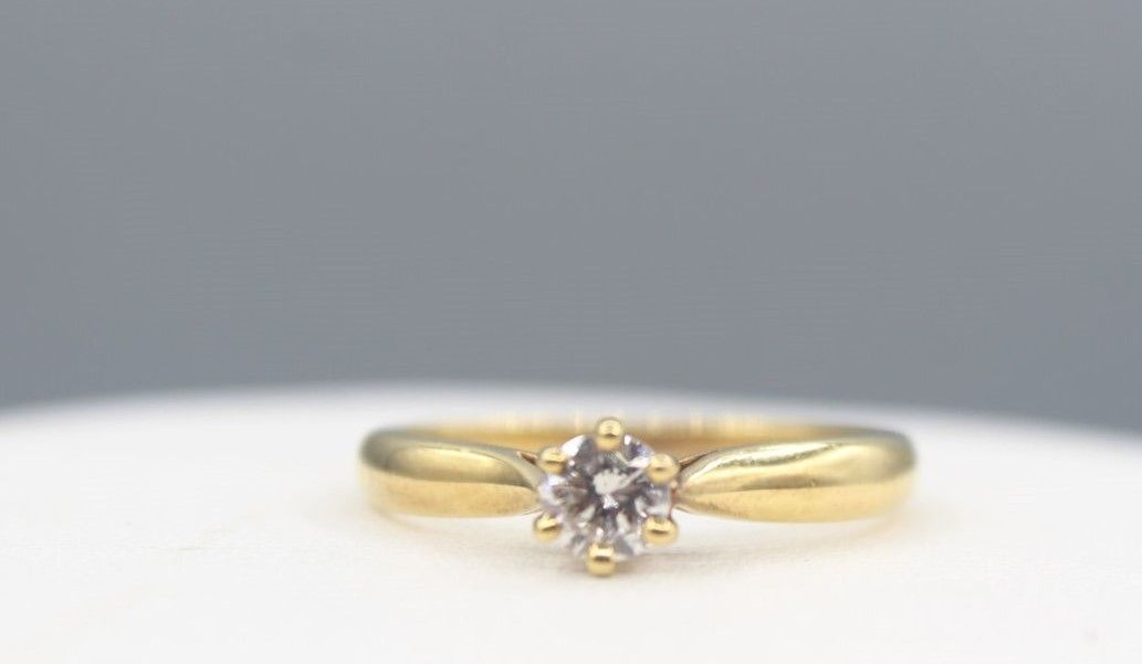 Solitaire ring in yellow gold 750°°°° set with a brilliant-cut diamond approx. 0.28 cts gross weight: 2.8g TDD 53