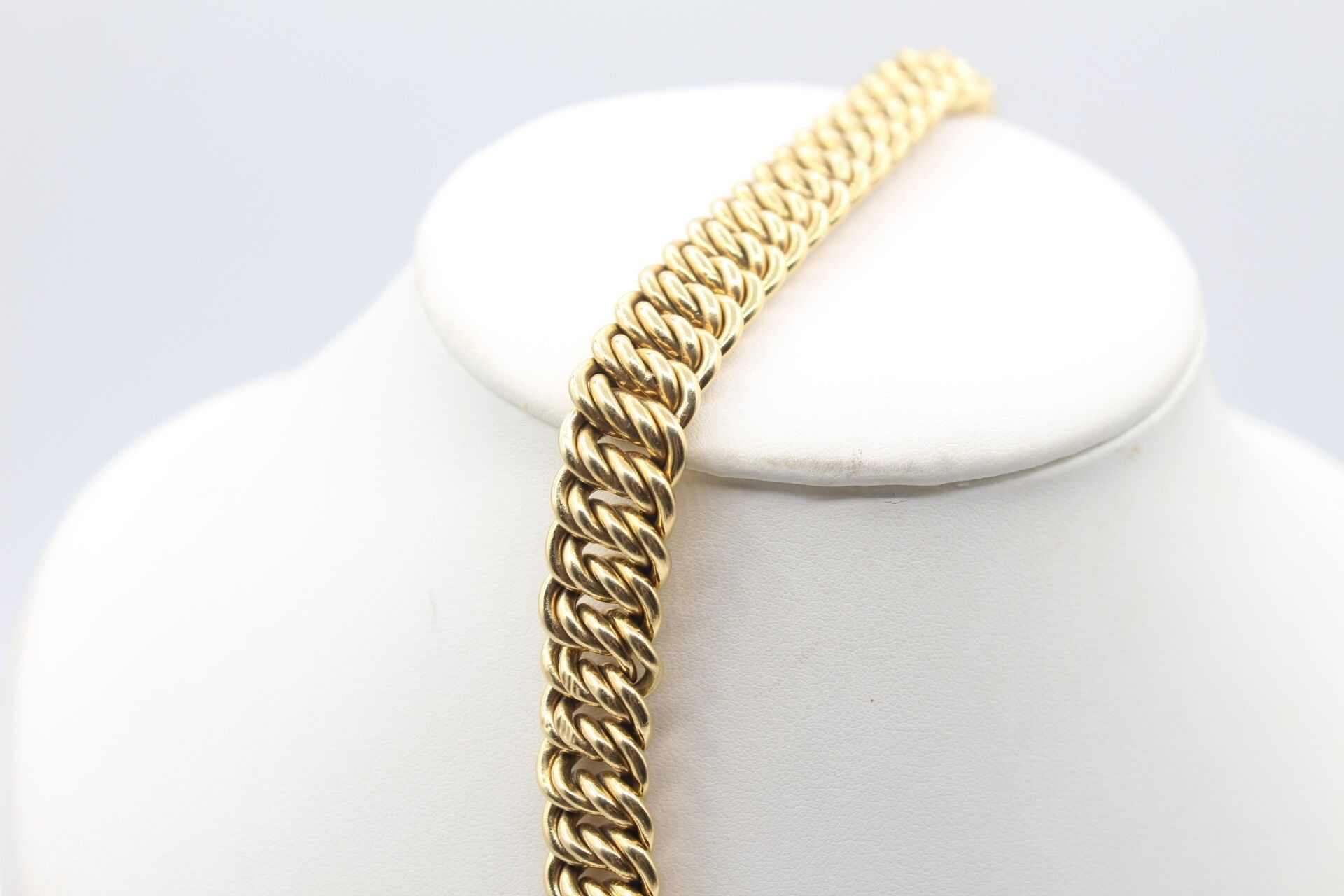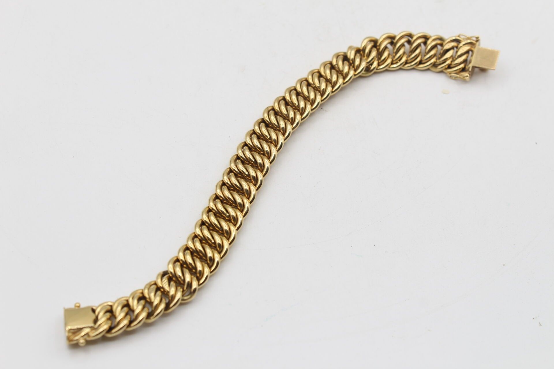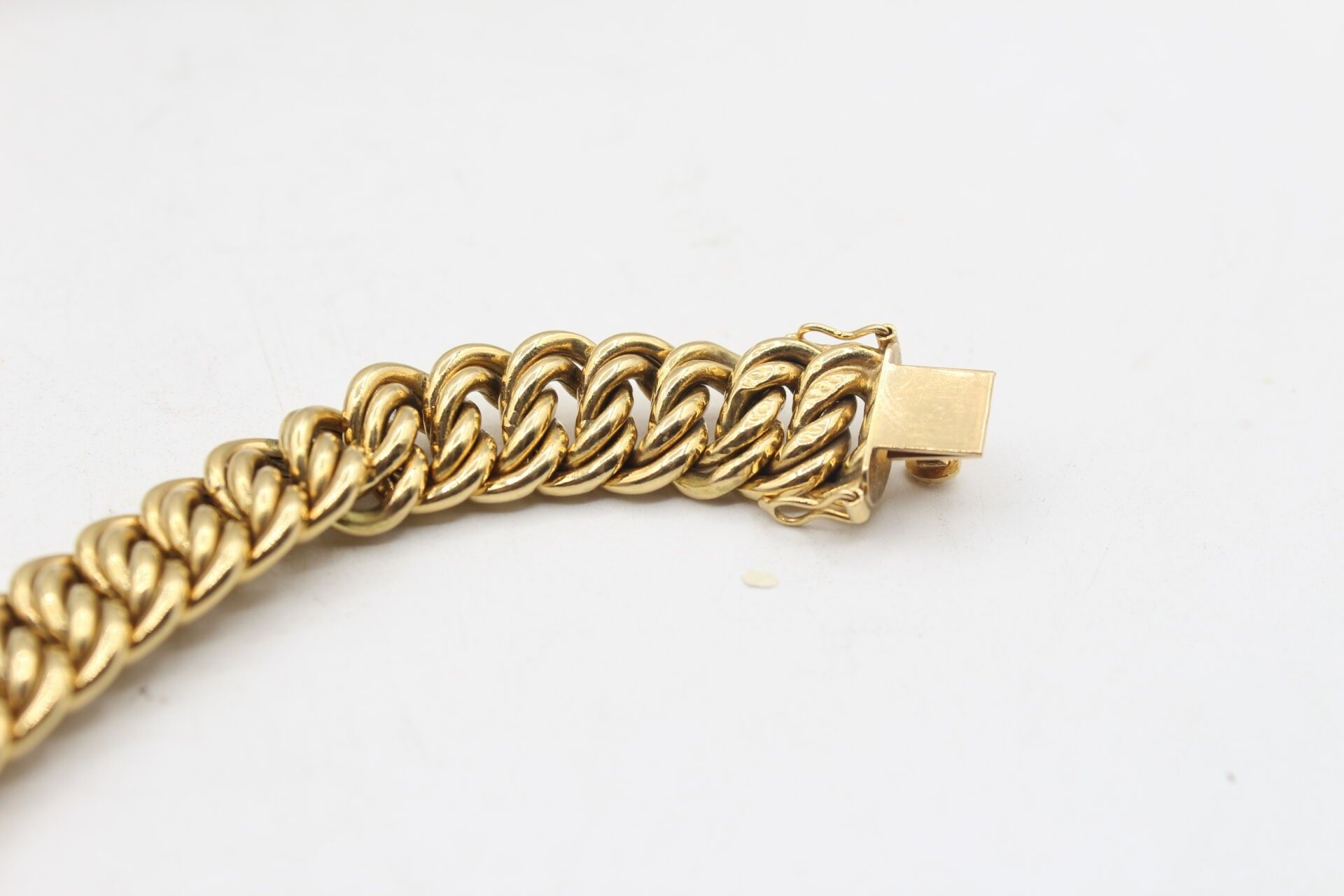 American link bracelet in 18K yellow gold with two eight safety clasps 26.9g - L 18.5 cmJEWELIES, OBJECTS AND PRECIOUS EFFECTS ARE NEVER KEPT IN STORES BUT IN BANKING CASES.