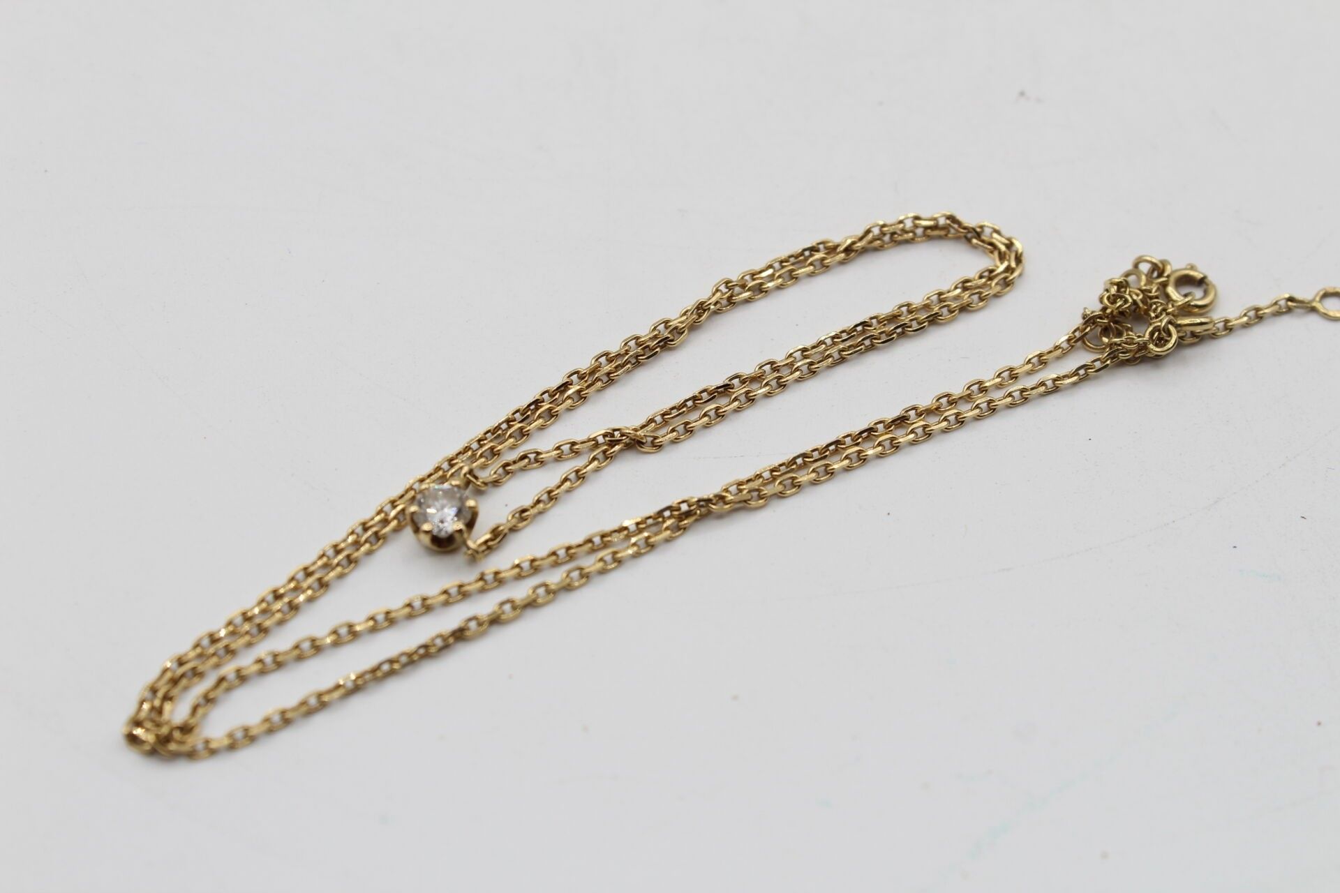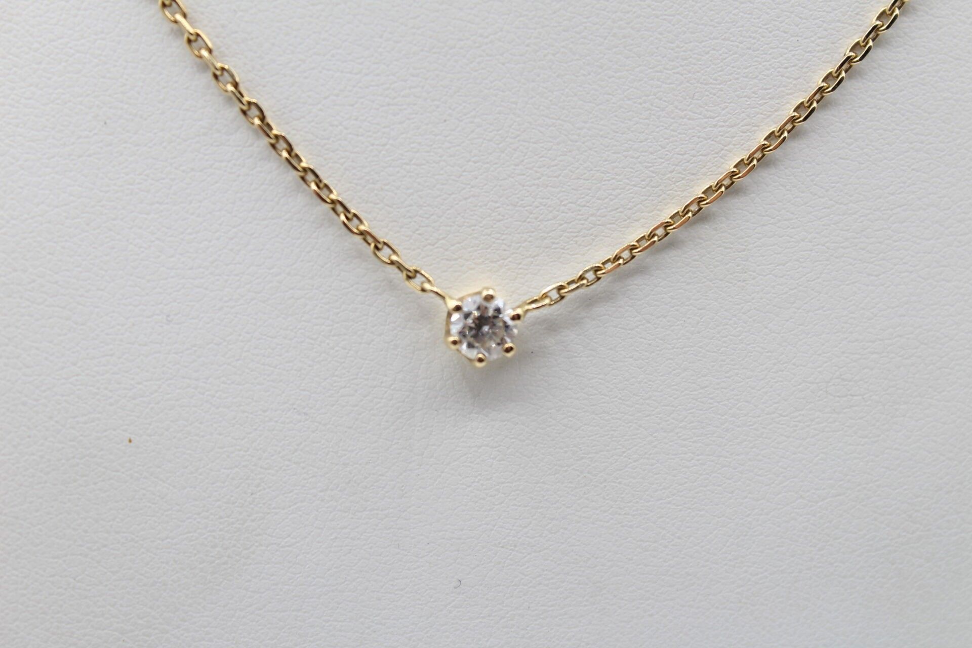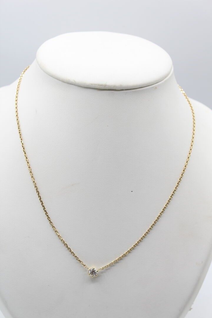 Brilliant-cut diamond pendant Ø 3.60mm - chain in yellow gold 750°°° gross weight of the set: 6.86g - chain length: 55 cm, one safety chain JEWELRY, PRECIOUS OBJECTS AND EFFECTS ARE NEVER KEPT IN STORES BUT IN BANK CASES.