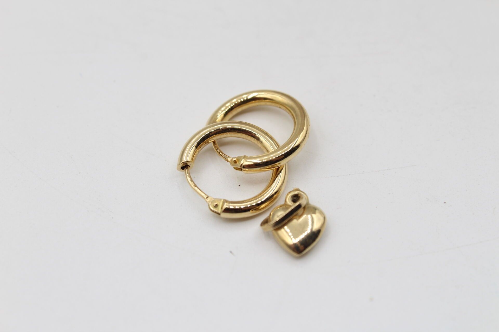 Meeting of a pair of small creoles and heart pendant in yellow gold 750°°° weight: 1.73g - JEWELRY, OBJECTS AND PRECIOUS EFFECTS ARE NEVER KEPT IN STUDIES BUT IN BANK CASES