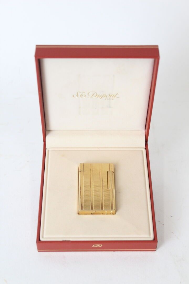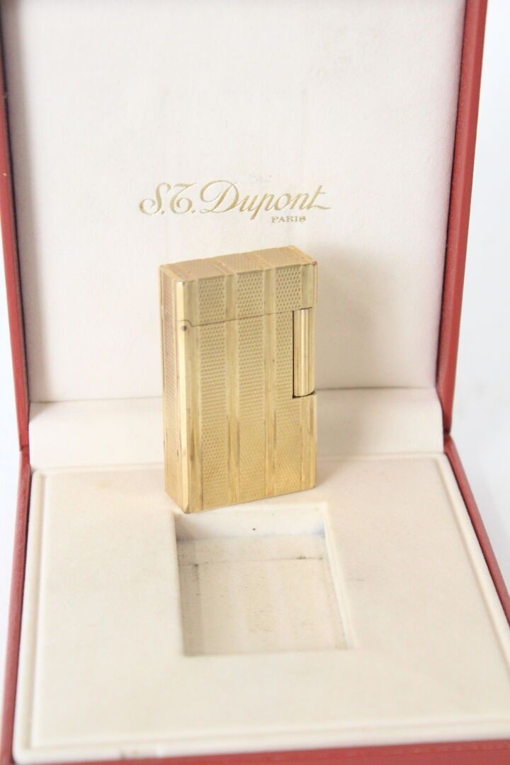 DUPONT. Lighter in gilded metal. Case and box H.5.8 cm - JEWELRY, OBJECTS AND PRECIOUS EFFECTS ARE NEVER KEPT IN STUDIES BUT IN BANK CASES.