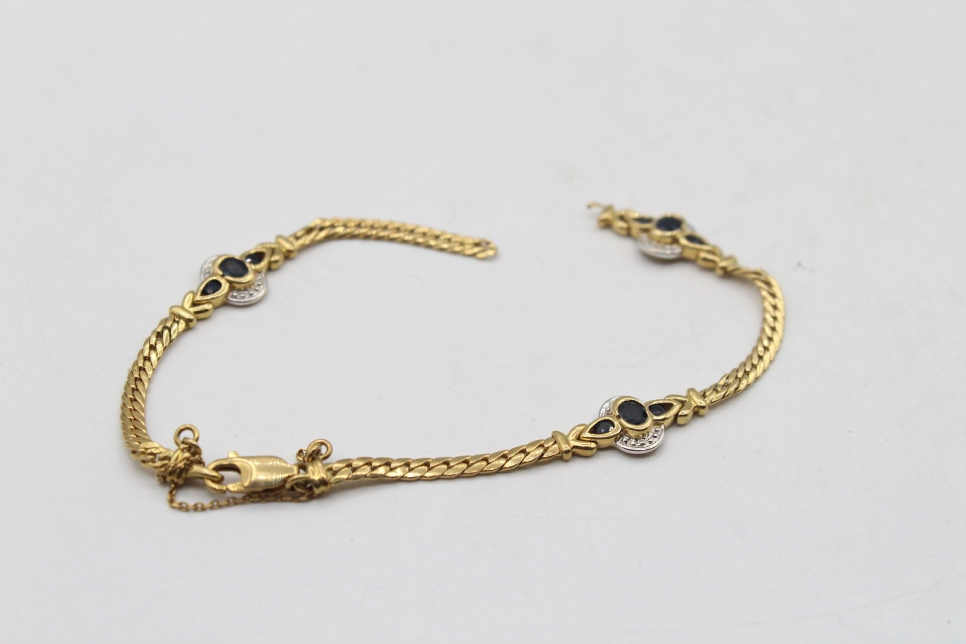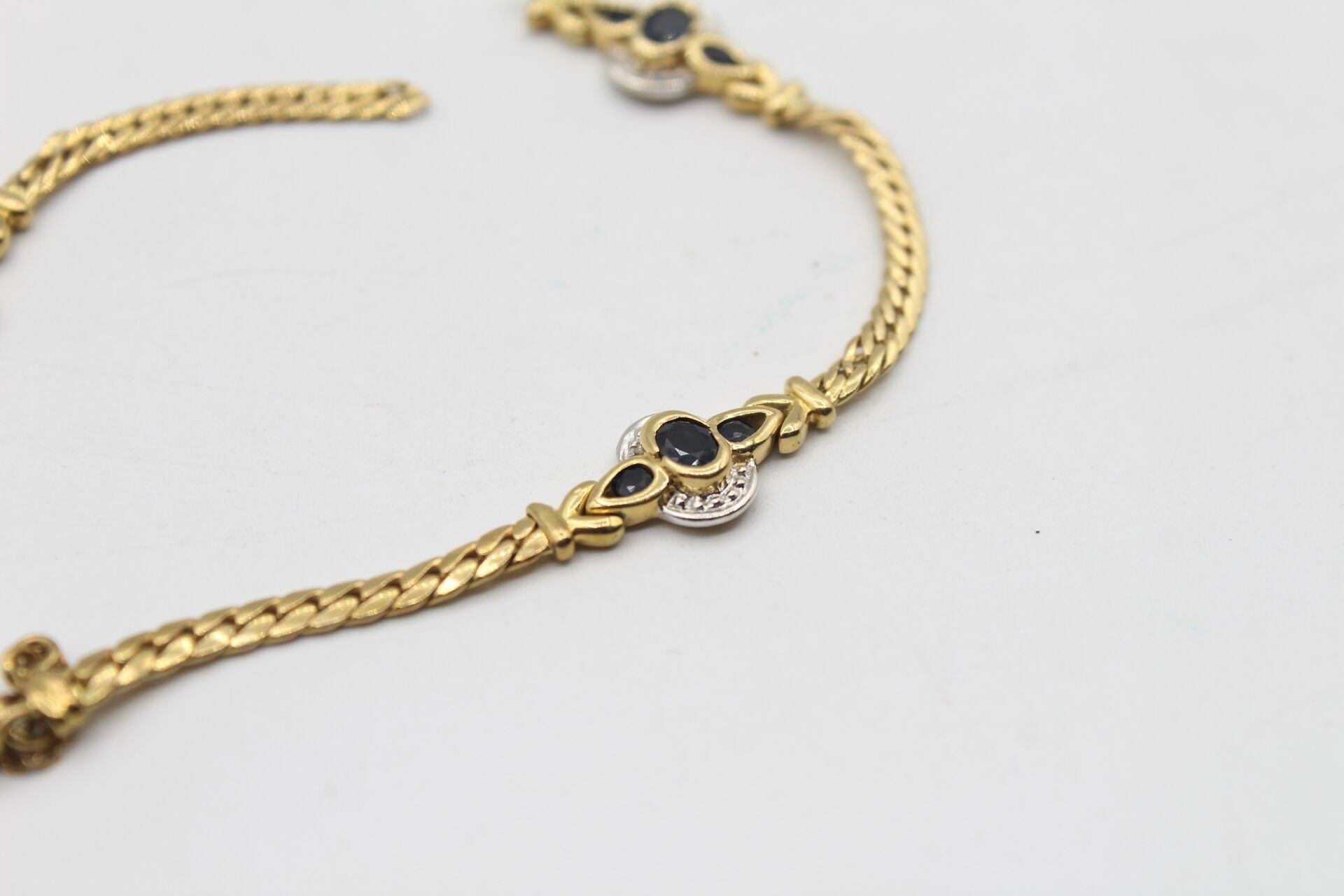 Bracelet in 750°°° yellow gold set with medallions with sapphires in a closed setting, gross weight: 7g. Broken - JEWELRY, OBJECTS AND PRECIOUS EFFECTS ARE NEVER KEPT IN STUDIES BUT IN BANK CASES.