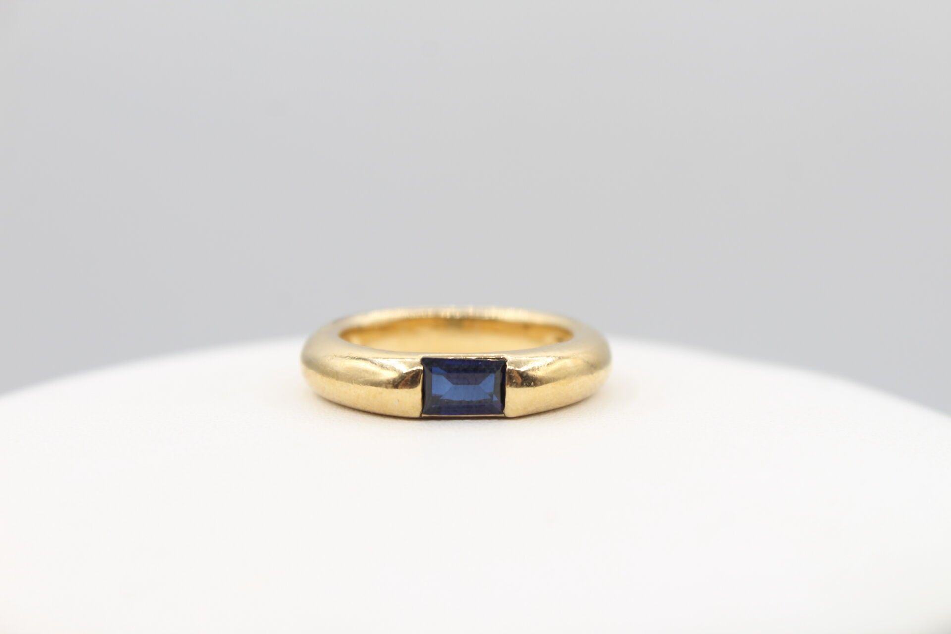 Gilt metal ring set with a rectangular blue stone Gross weig…