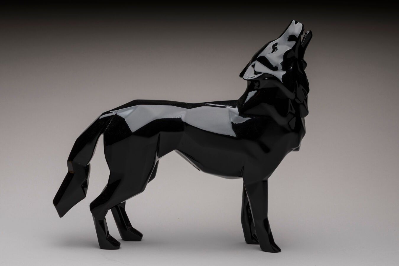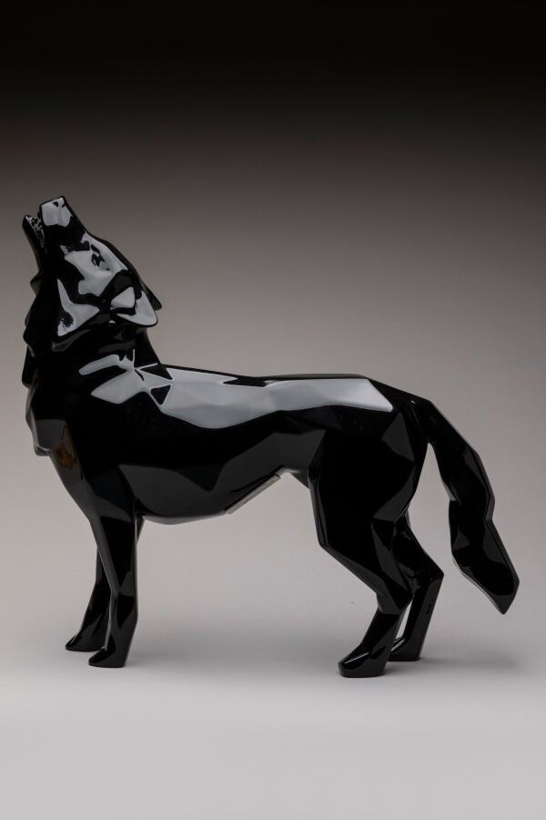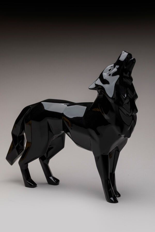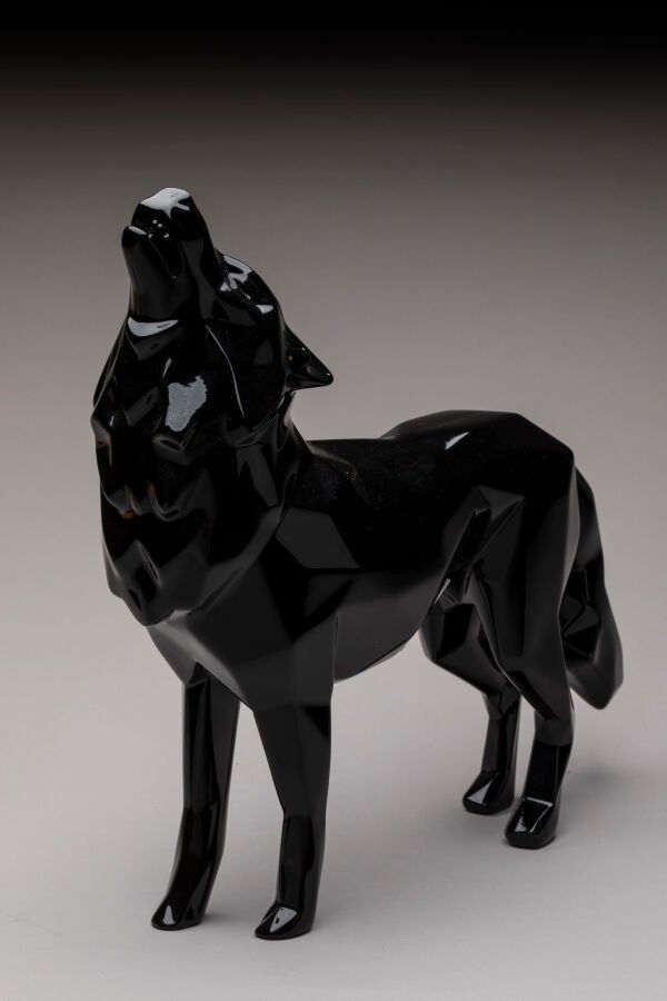 ORLINSKI Richard (born 1966) - The howling wolf in gloss black lacquered resin.