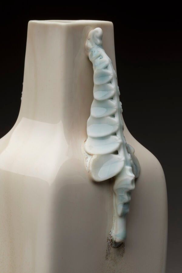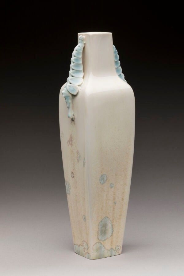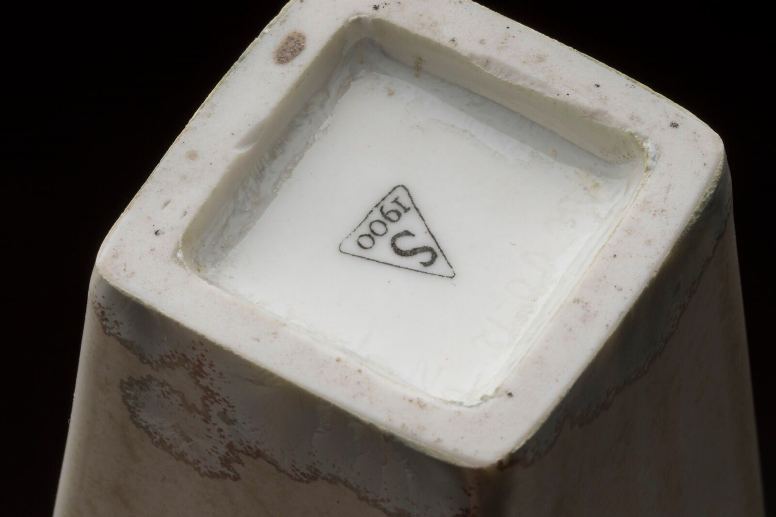 SANDIER Alexandre (1843-1916) - SEVRES Manufacture Nationale 1900. A square Art Nouveau porcelain vase with iridescent decoration and Hyppocampus handles. Mark S 1900. Height 24 cm.