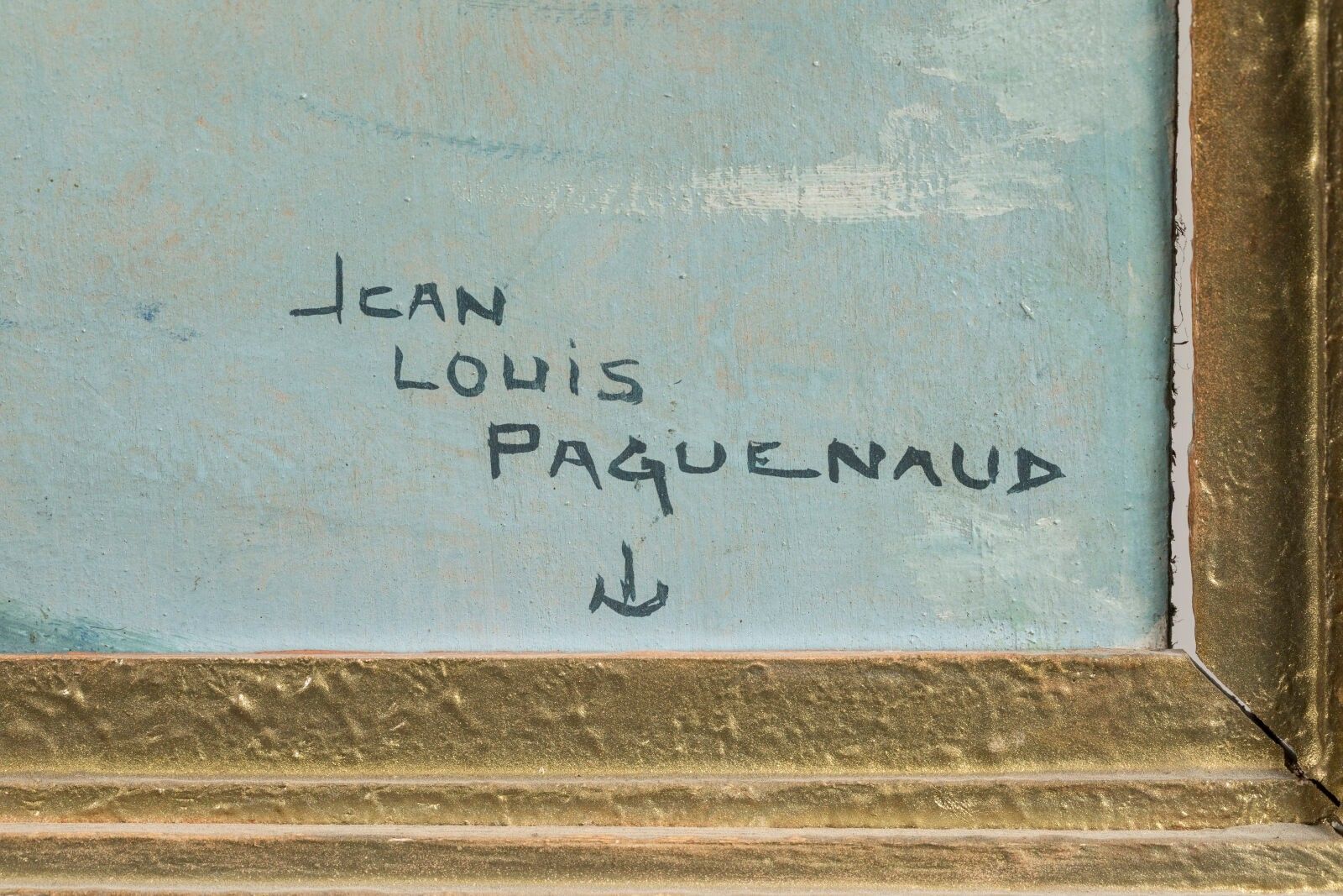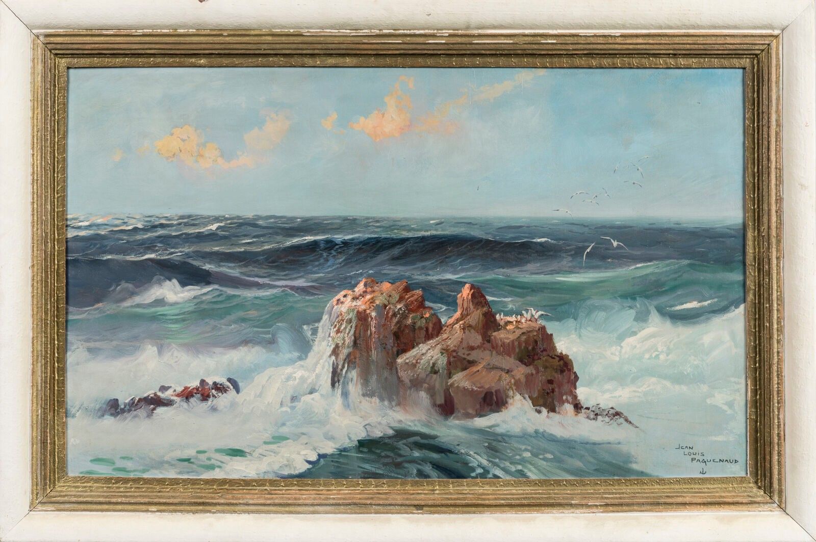PAGUENAUD Jean Louis (1876-1952) "View of a rock". Large oil on panel signed lower right. Panel warped. 59 x 99 cm. Framed.