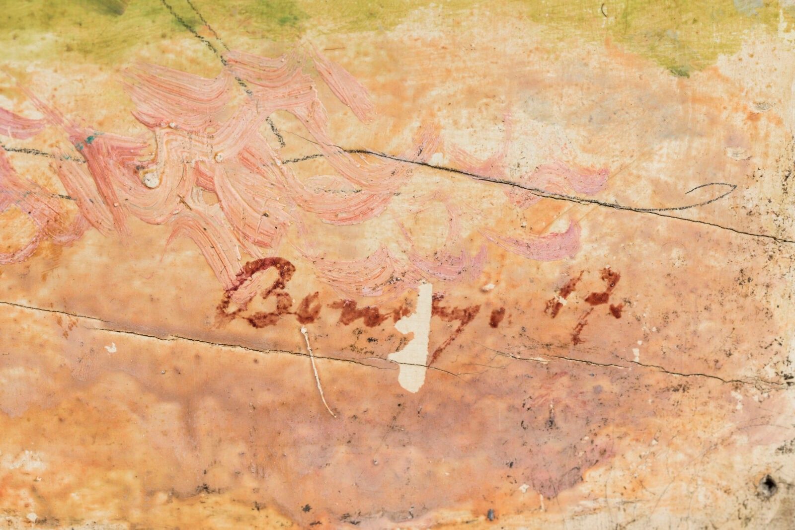 BONDY Walter (1880-1940), "La basse-cour". Oil on panel, signed and dated 1917 lower right. Unframed. 70 x 60 cm. Minor damage around the edges of the work.