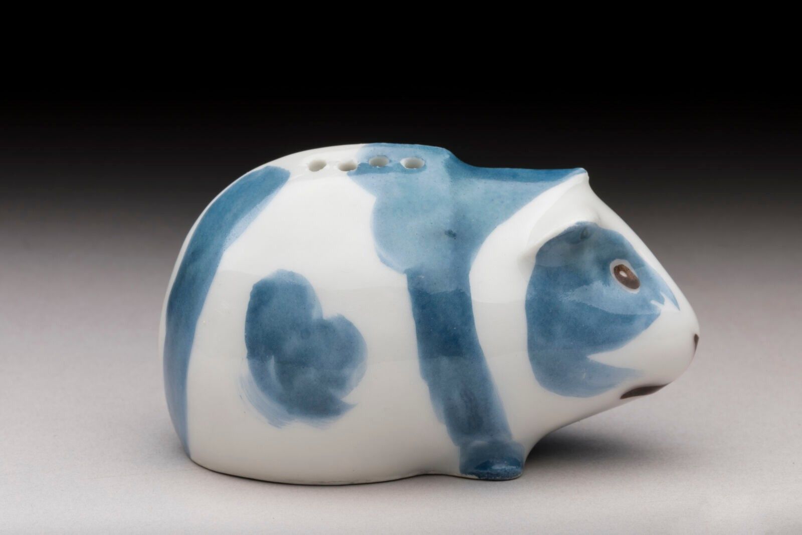 LIMOGES. SANDOZ Edouard-Marcel (1881-1971) for Théodore HAVILAND (1894-1957) -1916 - Salières-cobaye, blue and white porcelain. Manufacture Théodore Haviland, 1916. Signatures of the artist and marks of the factory. H. 4.5 x W. 7.5 cm.
