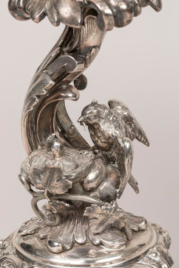 Pair of silver-plated metal centrepieces decorated with bird…