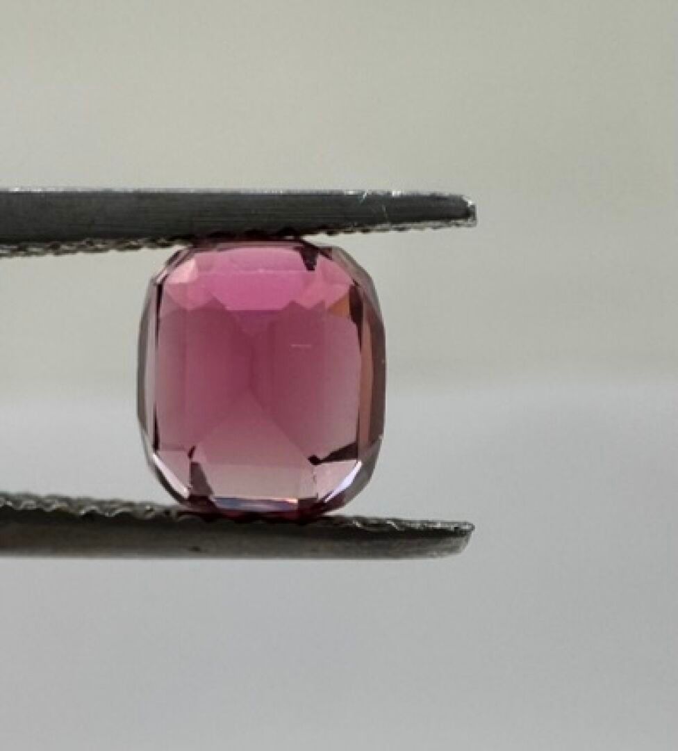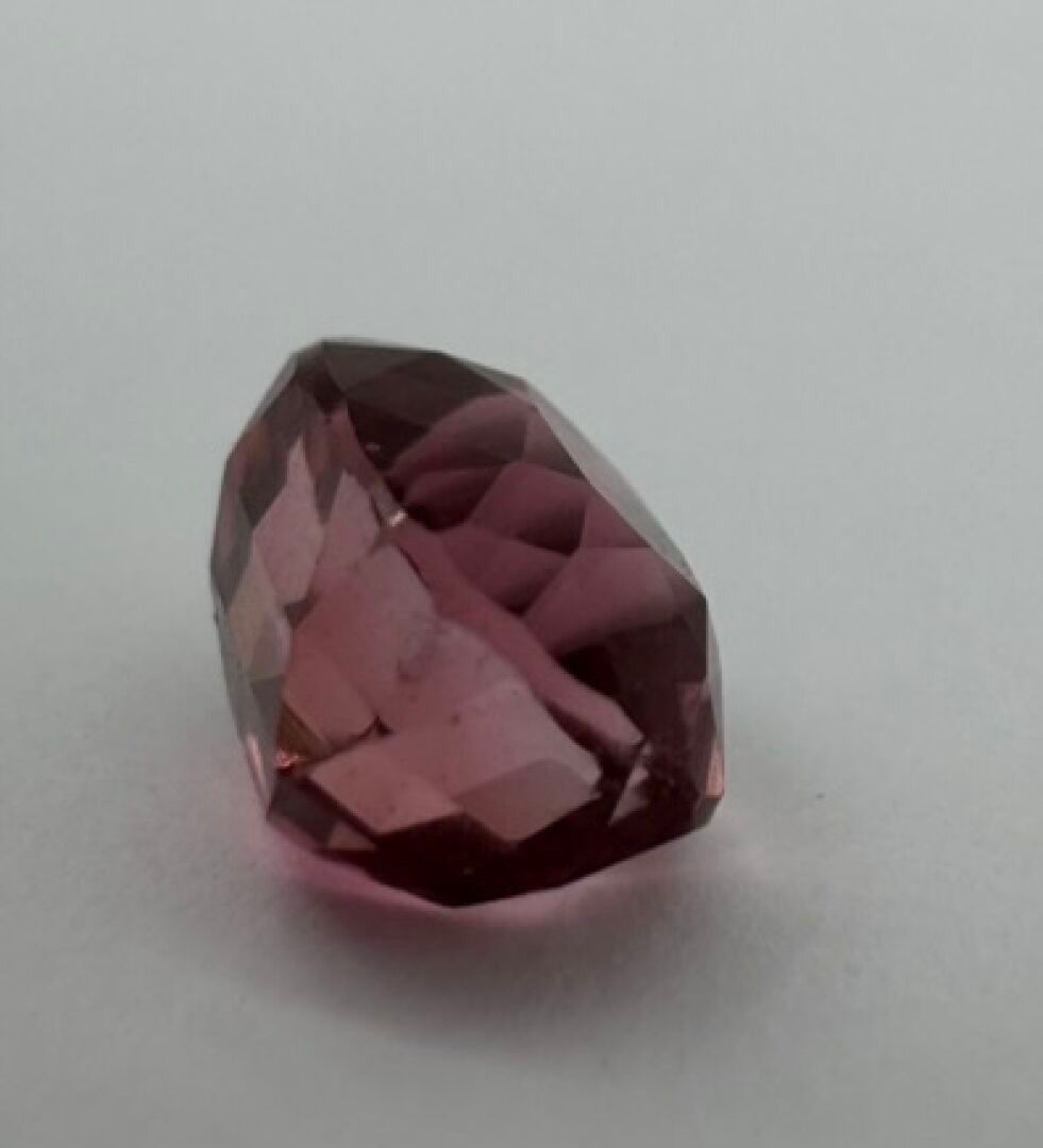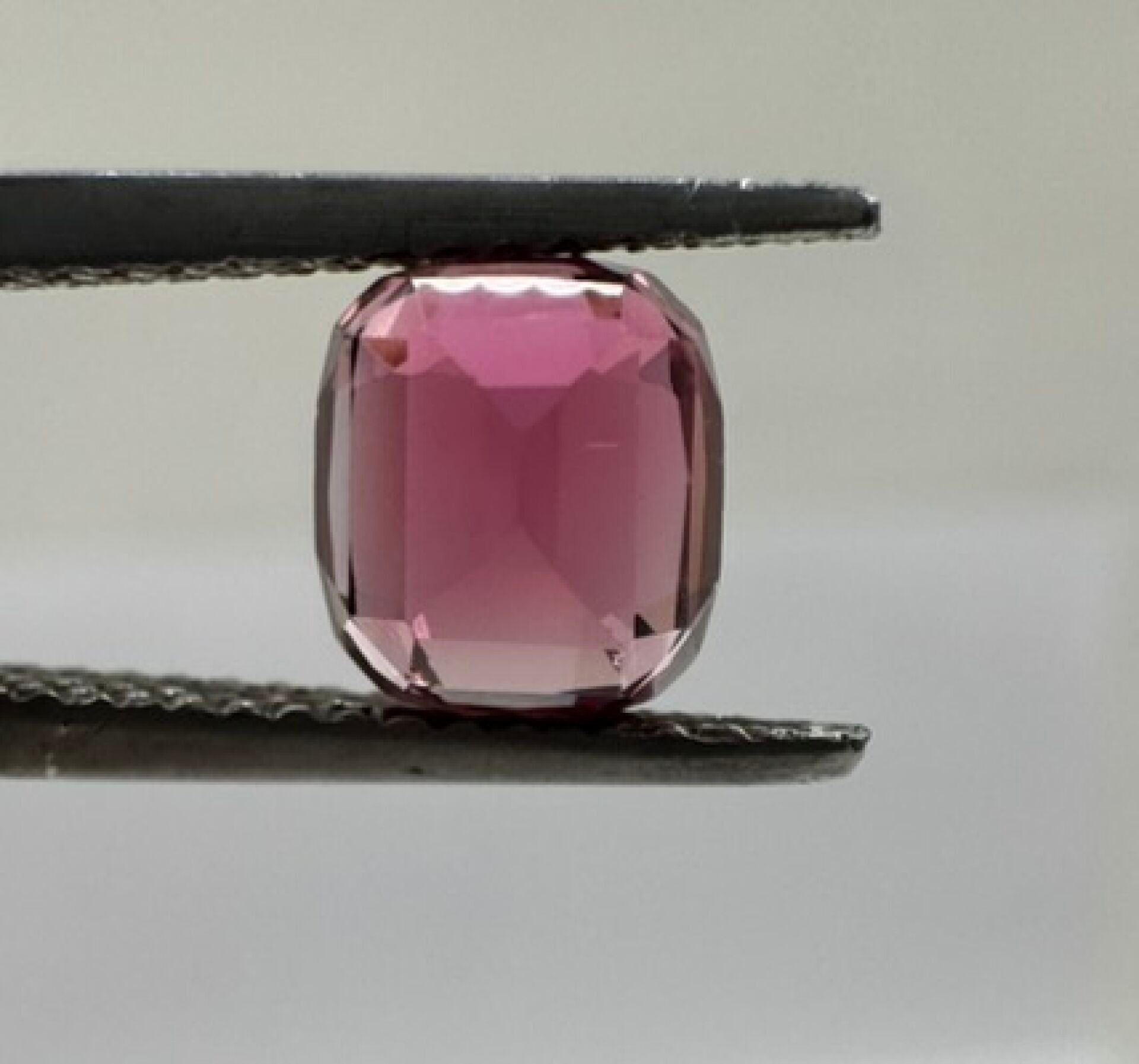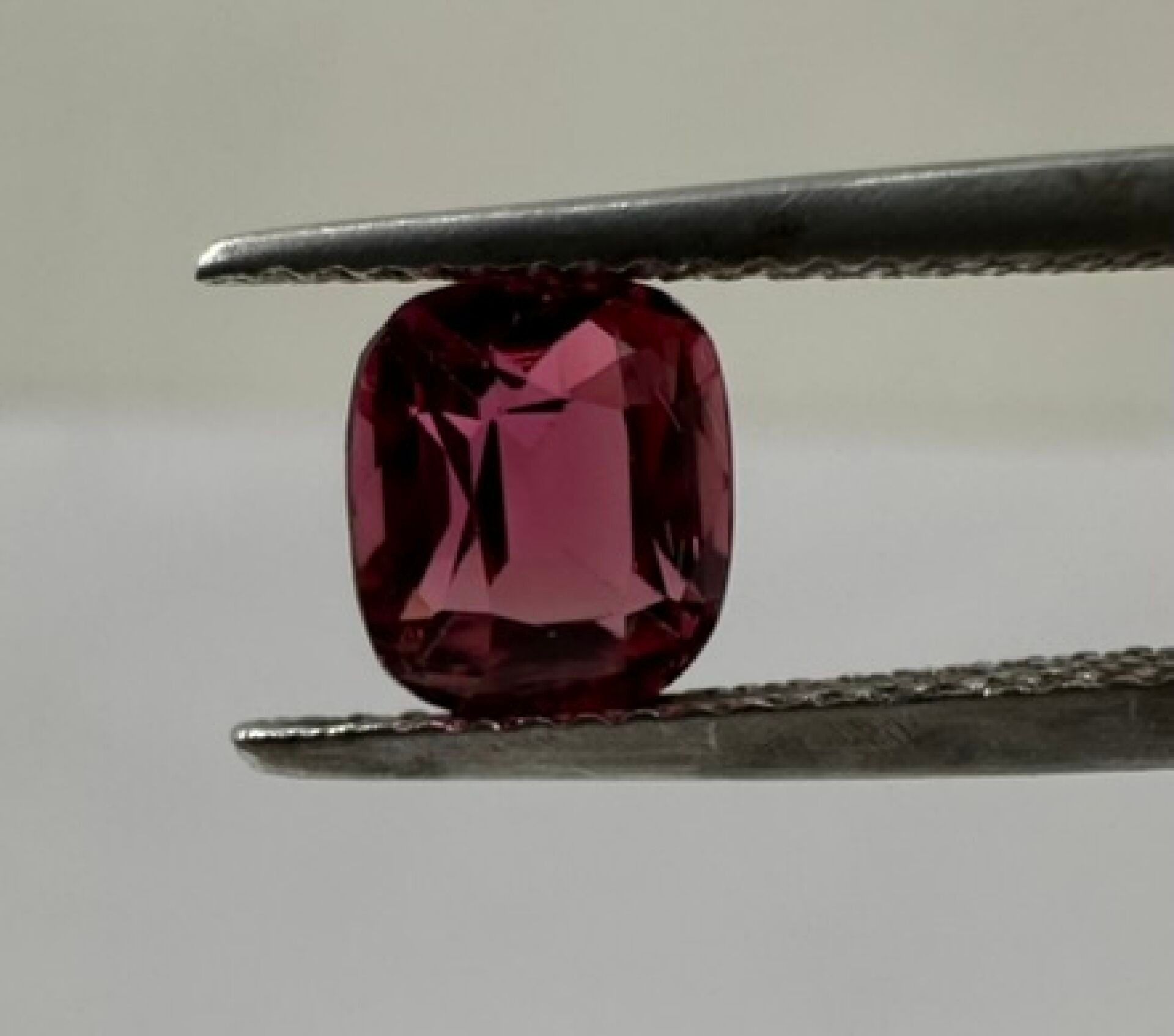 Intense pink cushion-cut tourmaline, on paper, weighing 1.