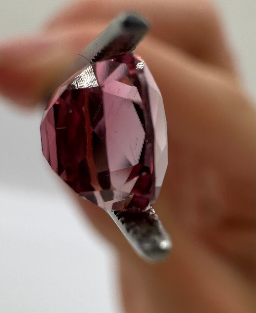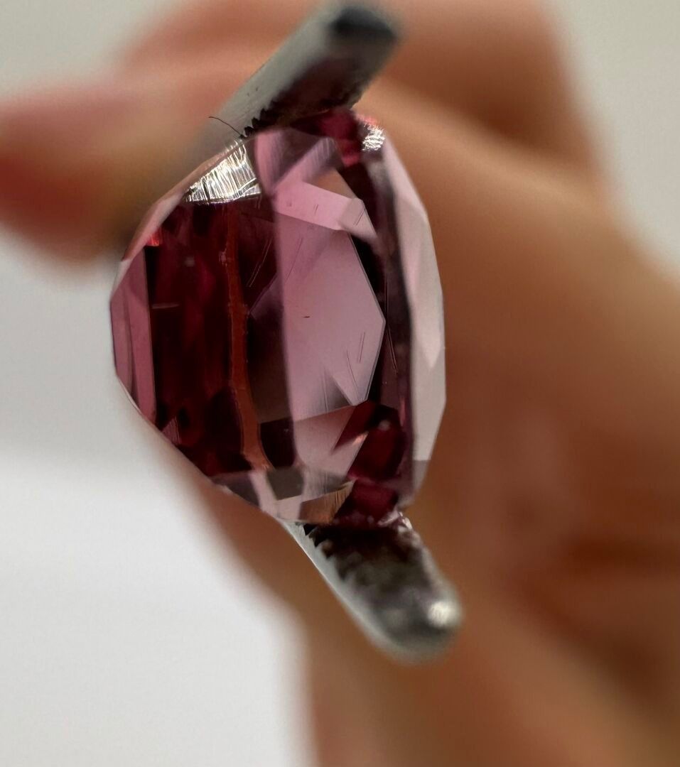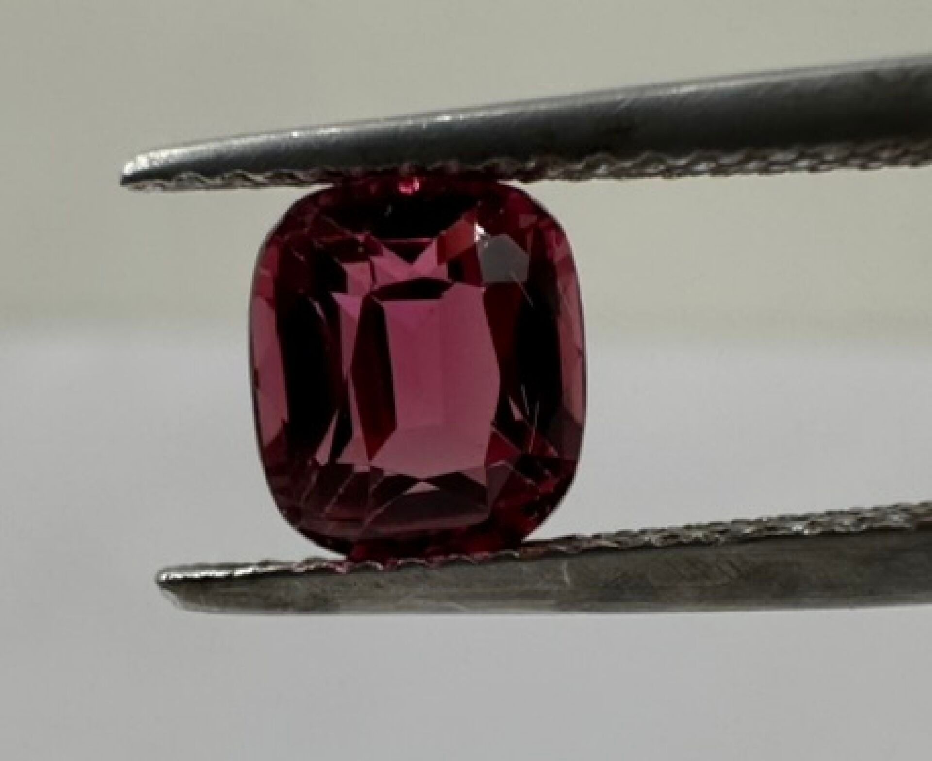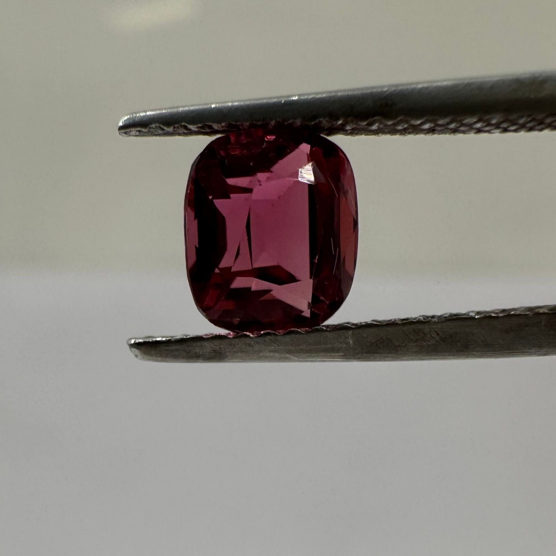 Intense pink cushion-cut tourmaline, on paper, weighing 1.