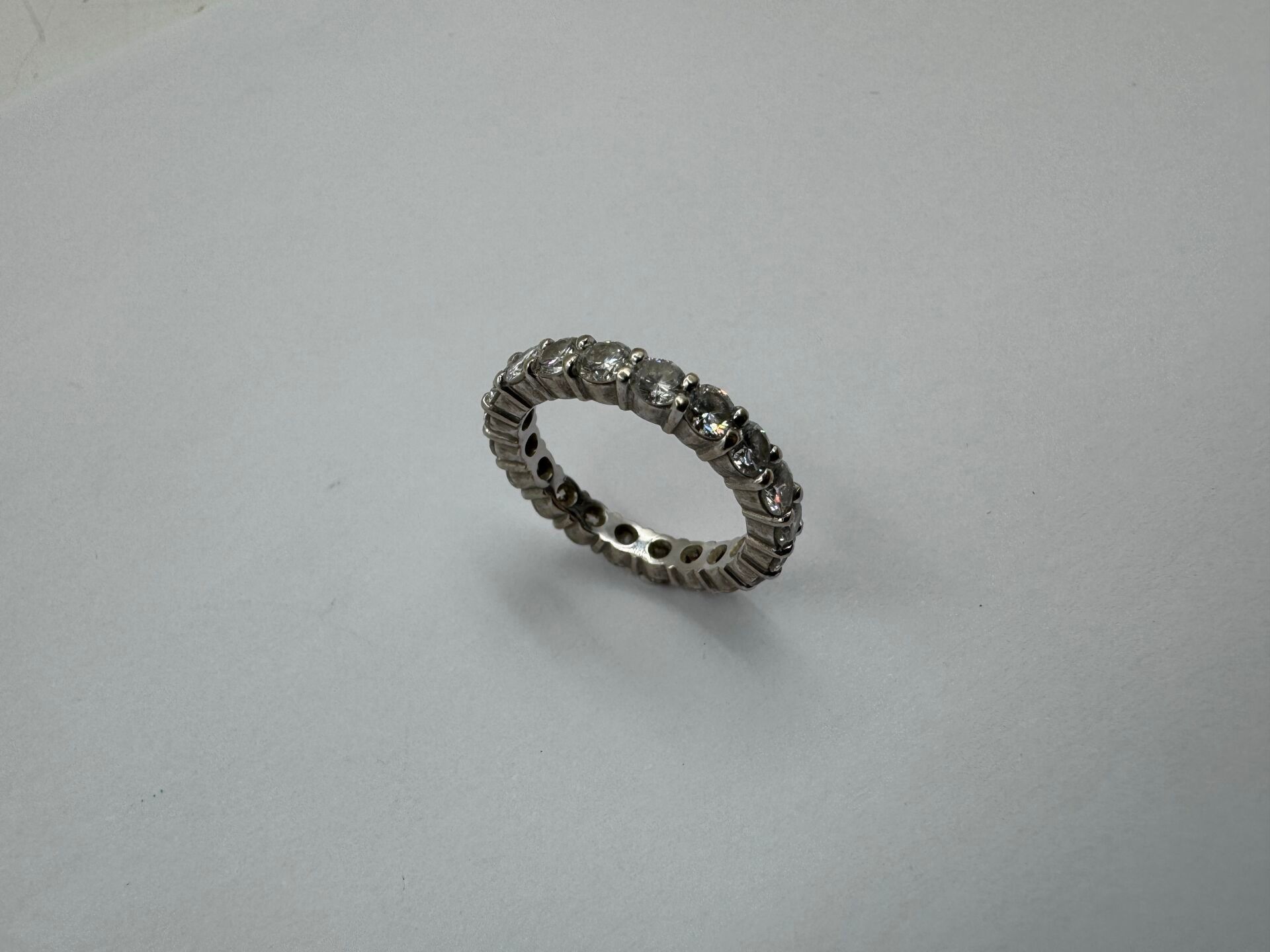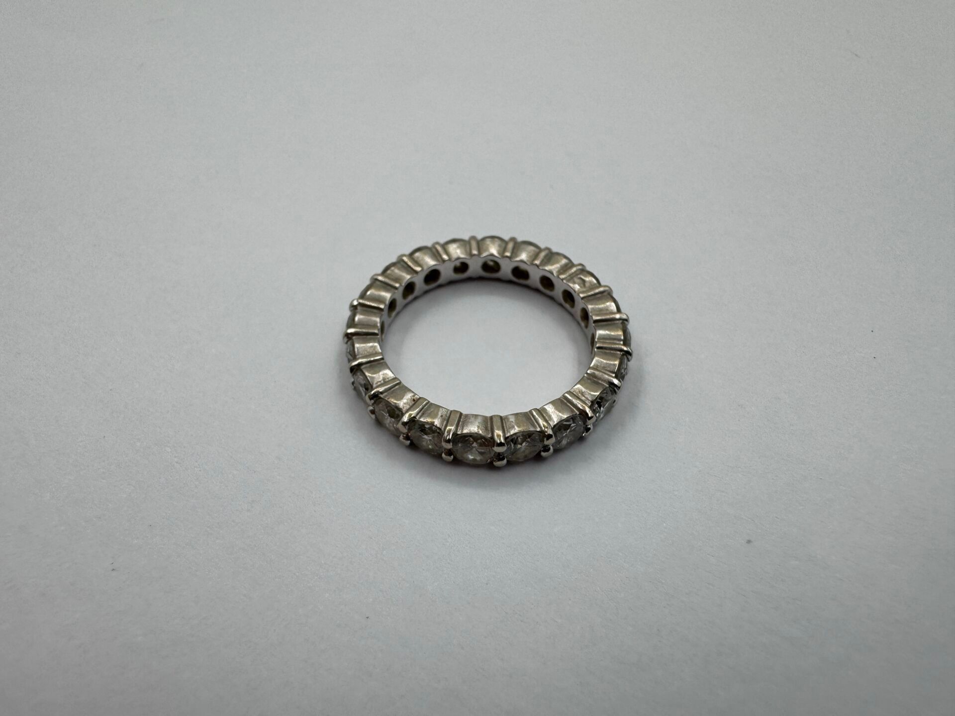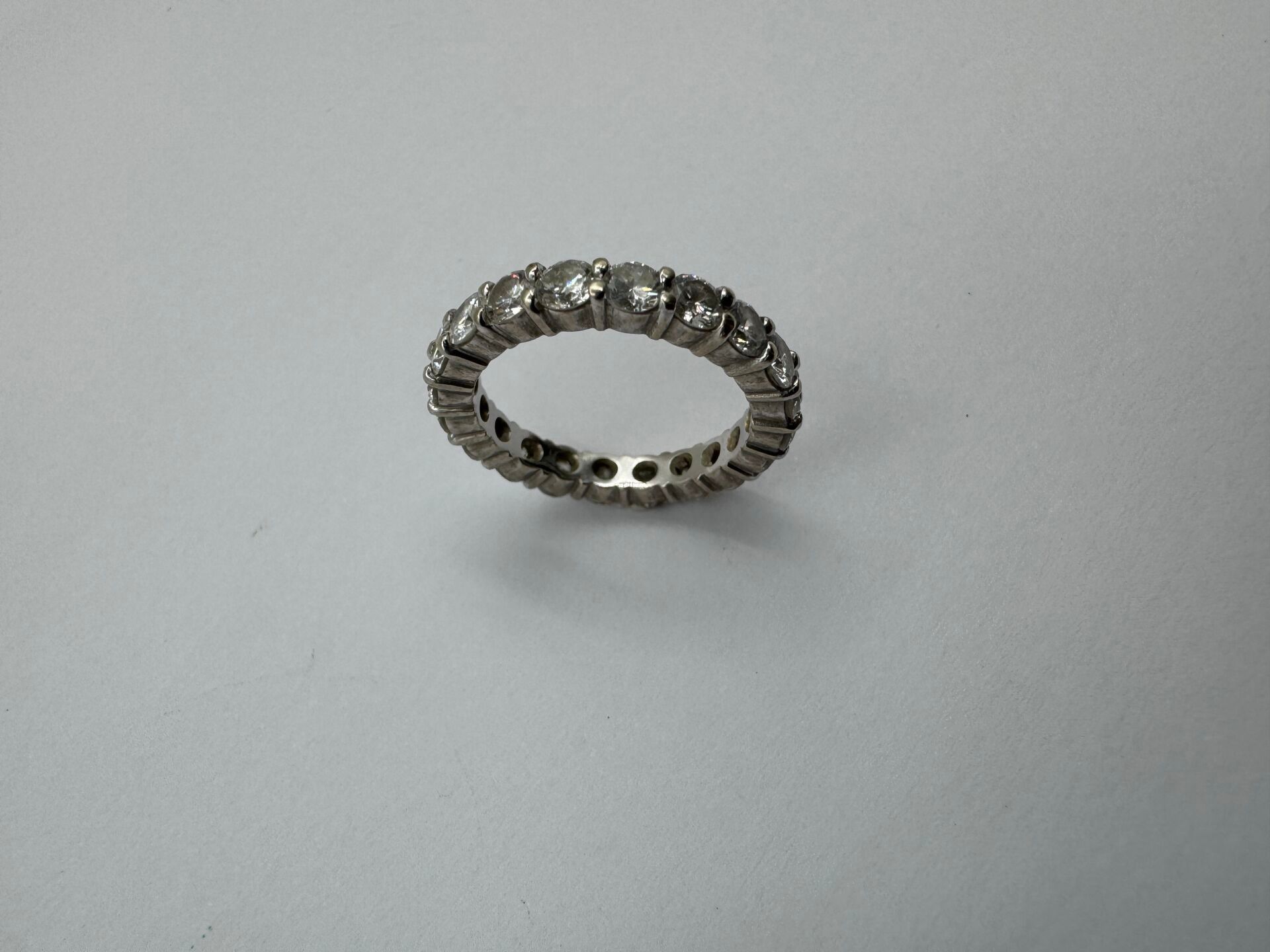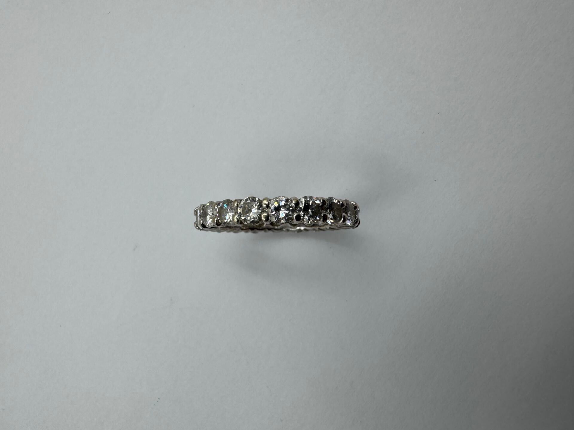 American wedding ring set with 20 modern-cut diamonds, 18 carat (750 thousandths) white gold setting,