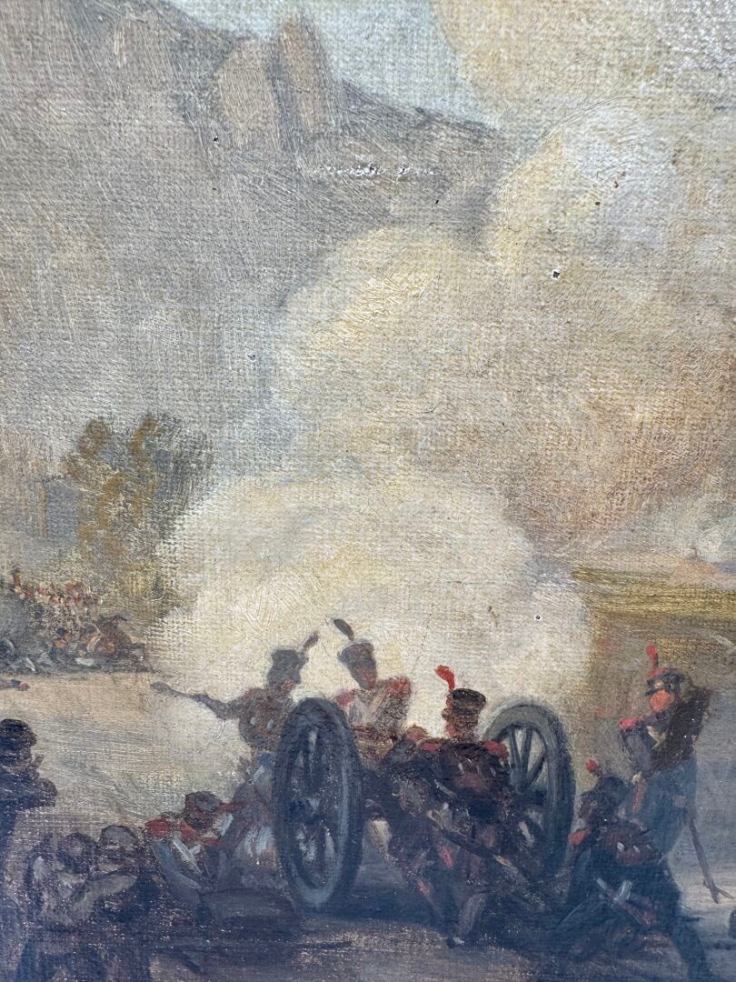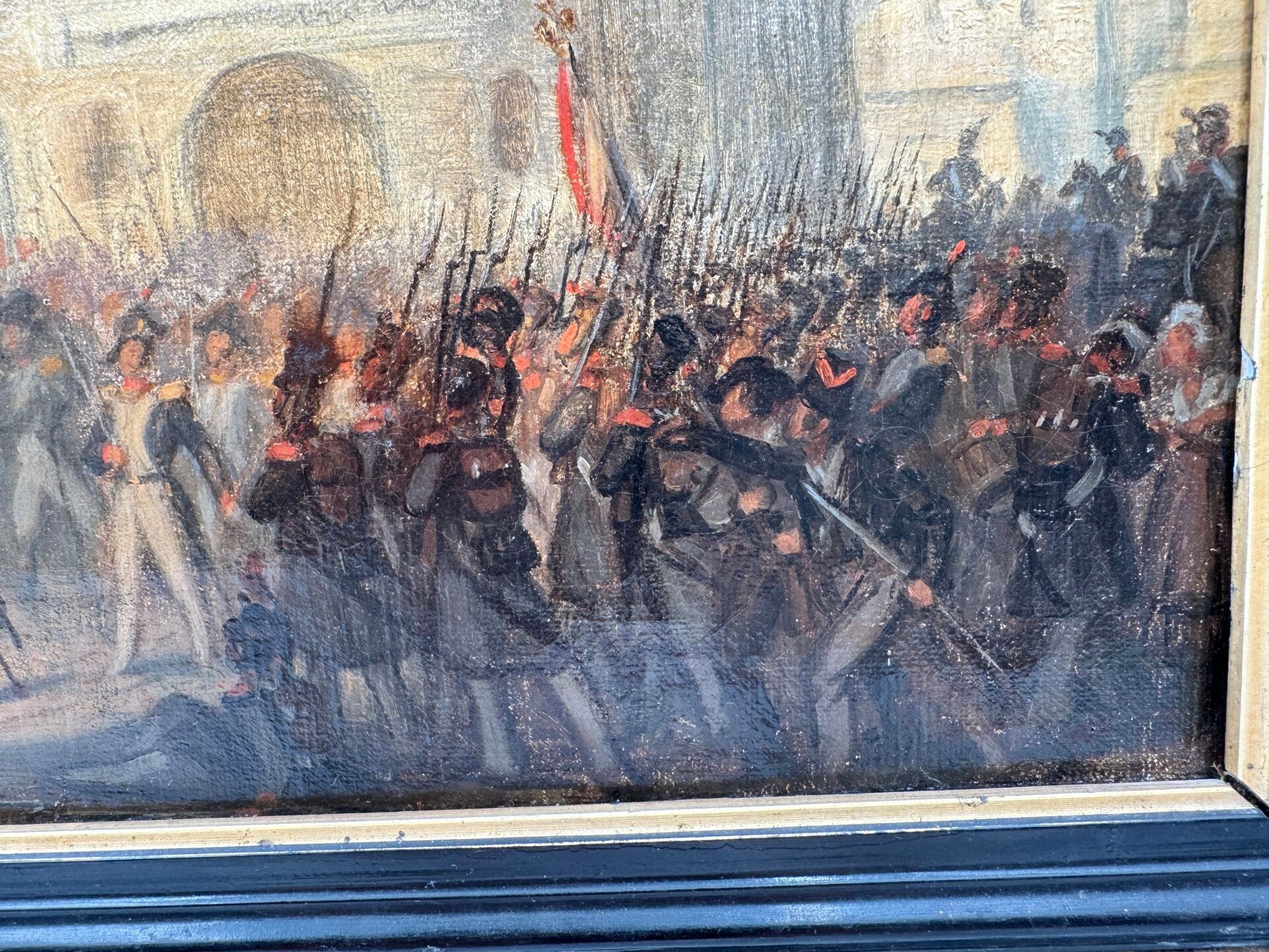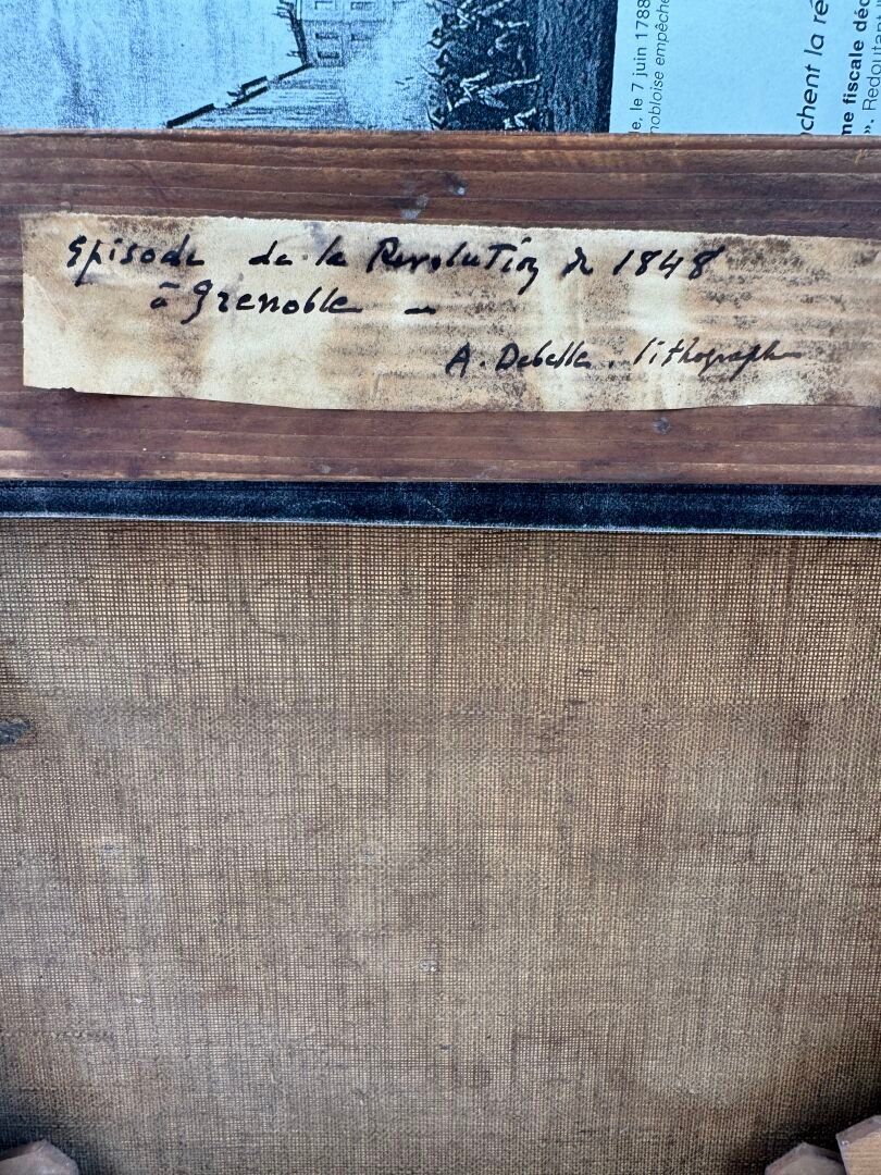 In 1860, Debelle had been curator of the Grenoble museum for 7 years, after spending ten years in Antoine Jean Gros's studio in Paris. To paint his account of the events of 1815, he drew on his memories (he was 10 years old) and those of his father and uncle. His father Joseph Guillaume Debelle (1779 - 1816) would be depicted