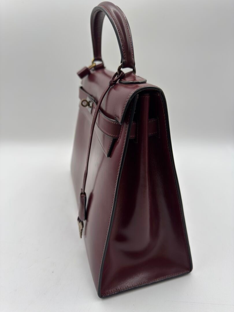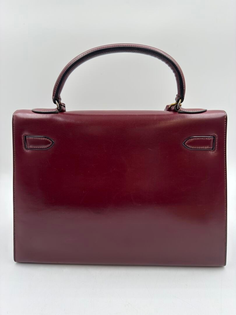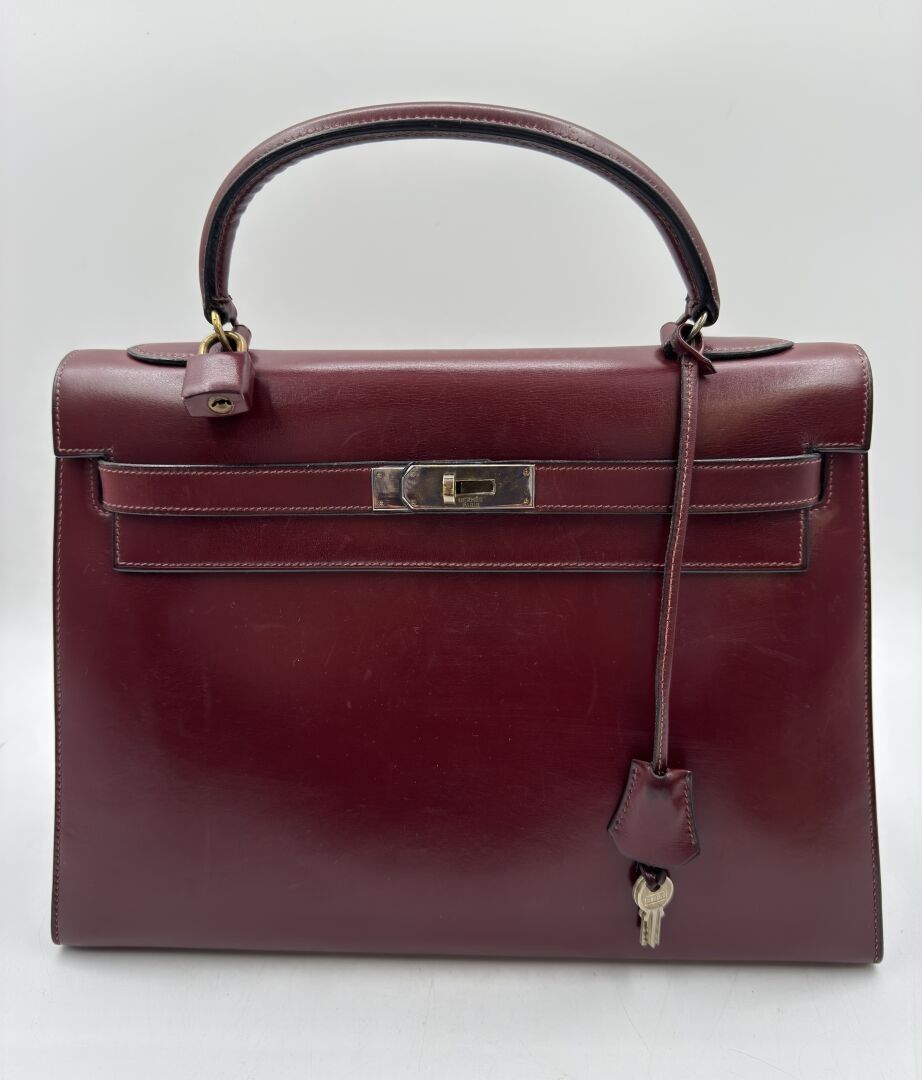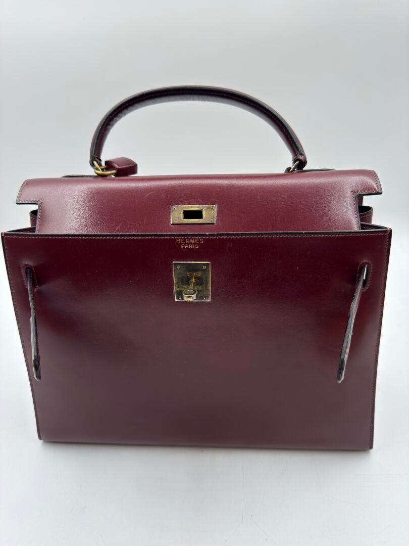 HERMÈS Paris Kelly 32 bag in burgundy box, gilded metal jewe…