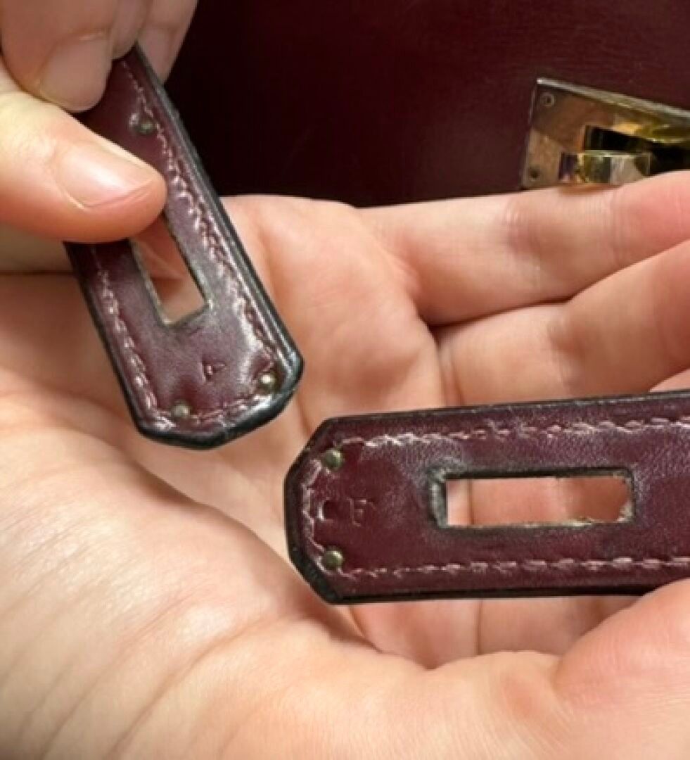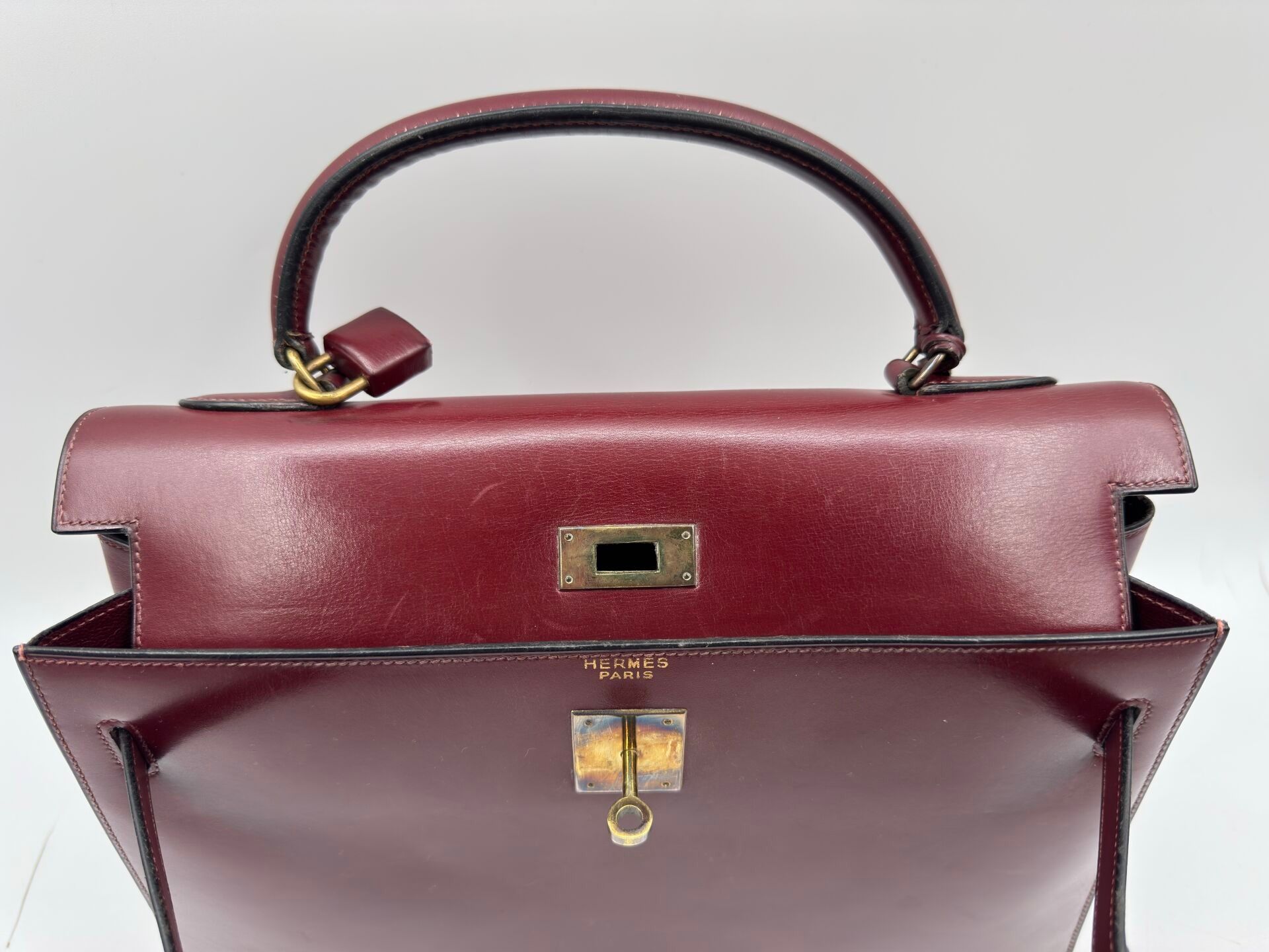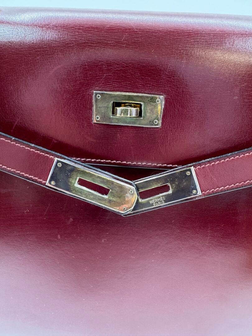 HERMÈS Paris Kelly 32 bag in burgundy box, gilded metal jewe…