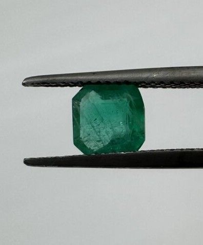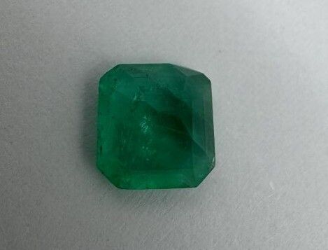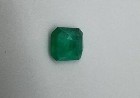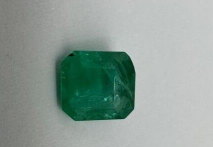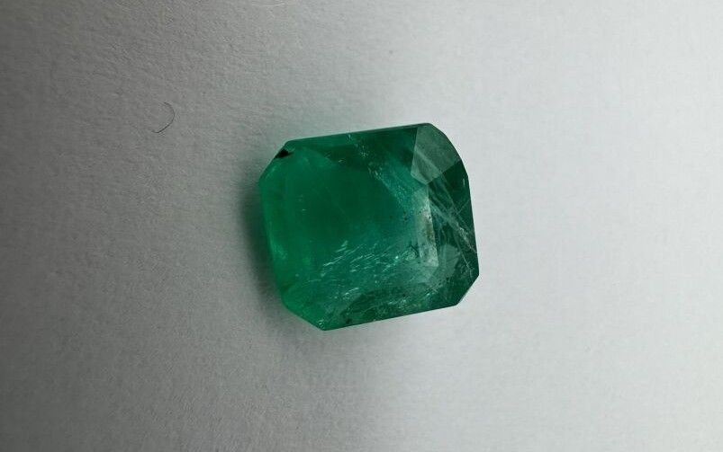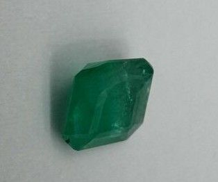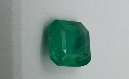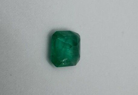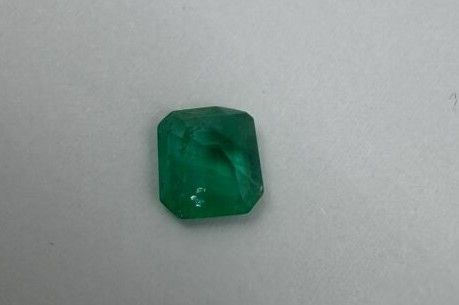 Rectangular cut emerald on paper, weighing 1.01 carats