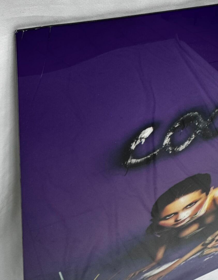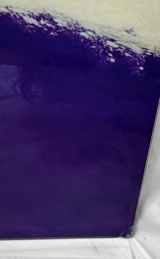 Slight damage with a scratch on one corner (top left of the visual) and an accident on a second corner (bottom right of the photograph).